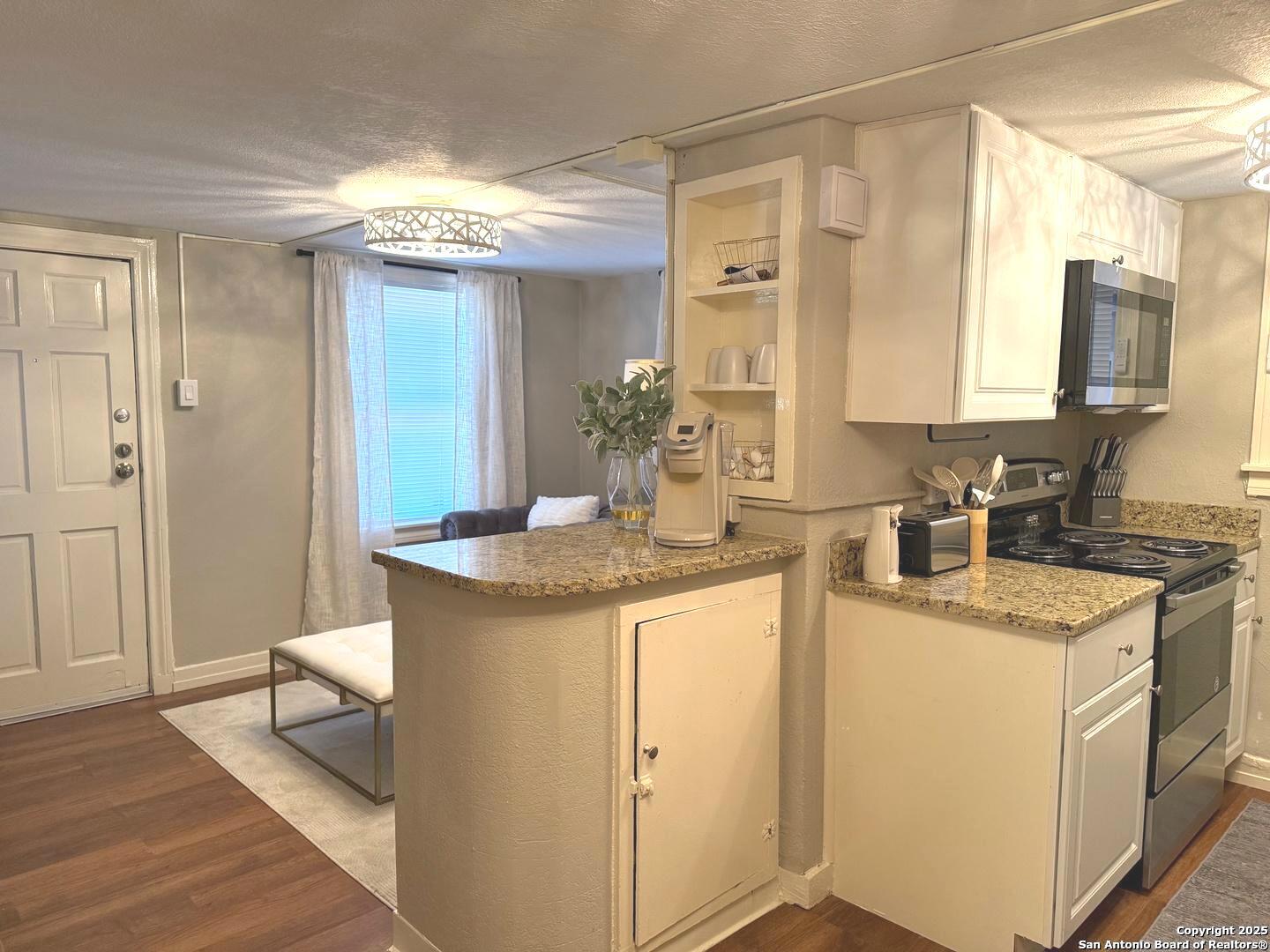 Furnished 1-Bedroom Efficiency in Historic Monte Vista Welcome to the heart of Monte Vista, one of San Antonio's most cherished historic neighborhoods! This thoughtfully furnished 1-bedroom, 1-bath walk out basement apartment offers a seamless blend of classic charm and modern comfort. The layout features stylish vinyl flooring and a cozy living area perfect for relaxing or entertaining. A sleek kitchen showcases stainless steel appliances, granite countertops, and ample cabinet space to meet all your culinary needs. The cozy bedroom includes reach-in closets with built-in shelving for optimal organization. Updated finishes throughout enhance the unit's appeal, while its prime location near Trinity University, local cafes, and cultural landmarks makes it ideal for students, professionals, or anyone seeking vibrant urban living. All utilities and furnishings included-just bring your suitcase!