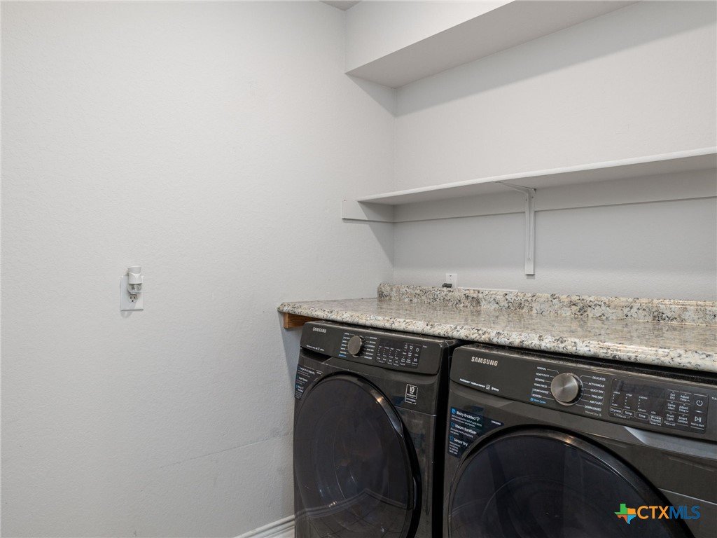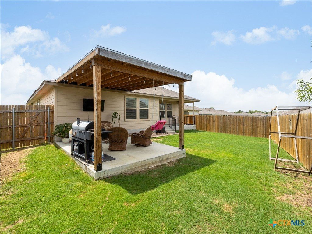 Location, location, location! This gorgeous four-bedroom, two-bath home nestled in the conveniently located Villages at Schwertner Ranch features an open kitchen outfitted with a large farmhouse sink, stylish Whirlpool appliances, and a walk-in pantry. The spacious bedrooms all offer ample closet space for storage and large windows for natural light. The two-car garage has an upgraded epoxy floor, and the custom, newly constructed, covered patio is perfect for entertaining guests or enjoying peacefully. Other upgrades include new plumbing fixtures such as toilets, kitchen sink faucet, and iron railing on the back porch for safe enjoyment. Solar panels are also available for transfer at $175 a month keeping that electric bill at nothing (can be assumed or removed). The Villages at Schwertner offer wonderful amenities such as a community pool, nature trails for walking, a park, and two fishing ponds!