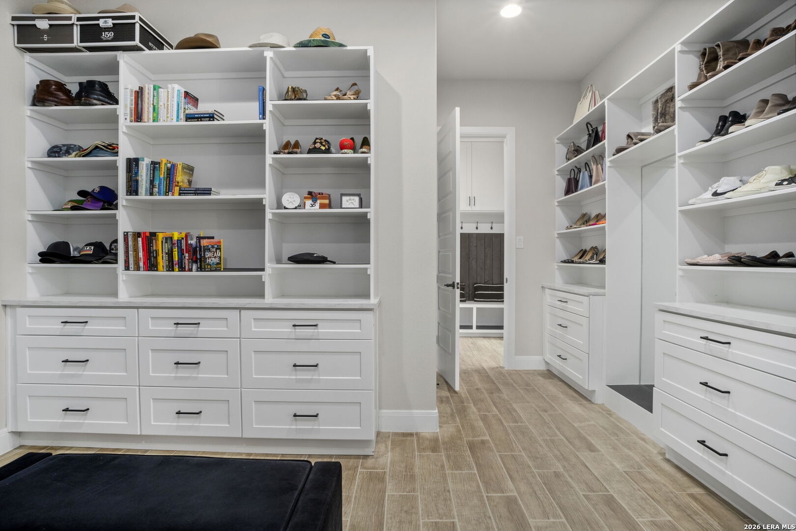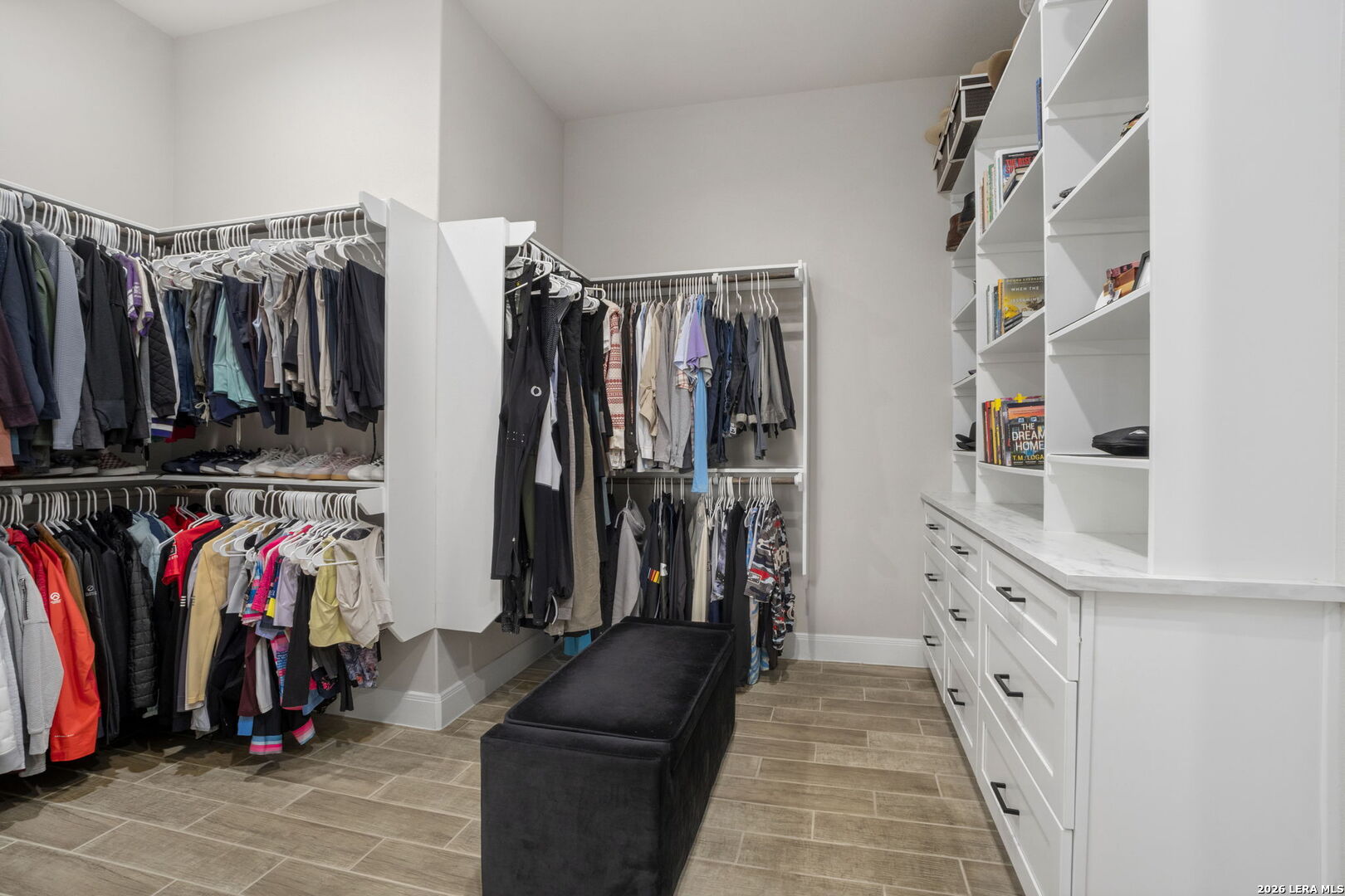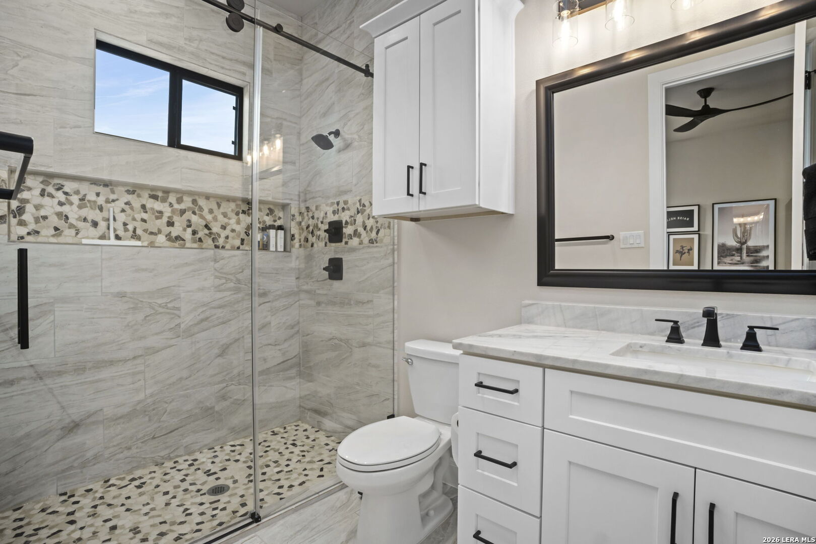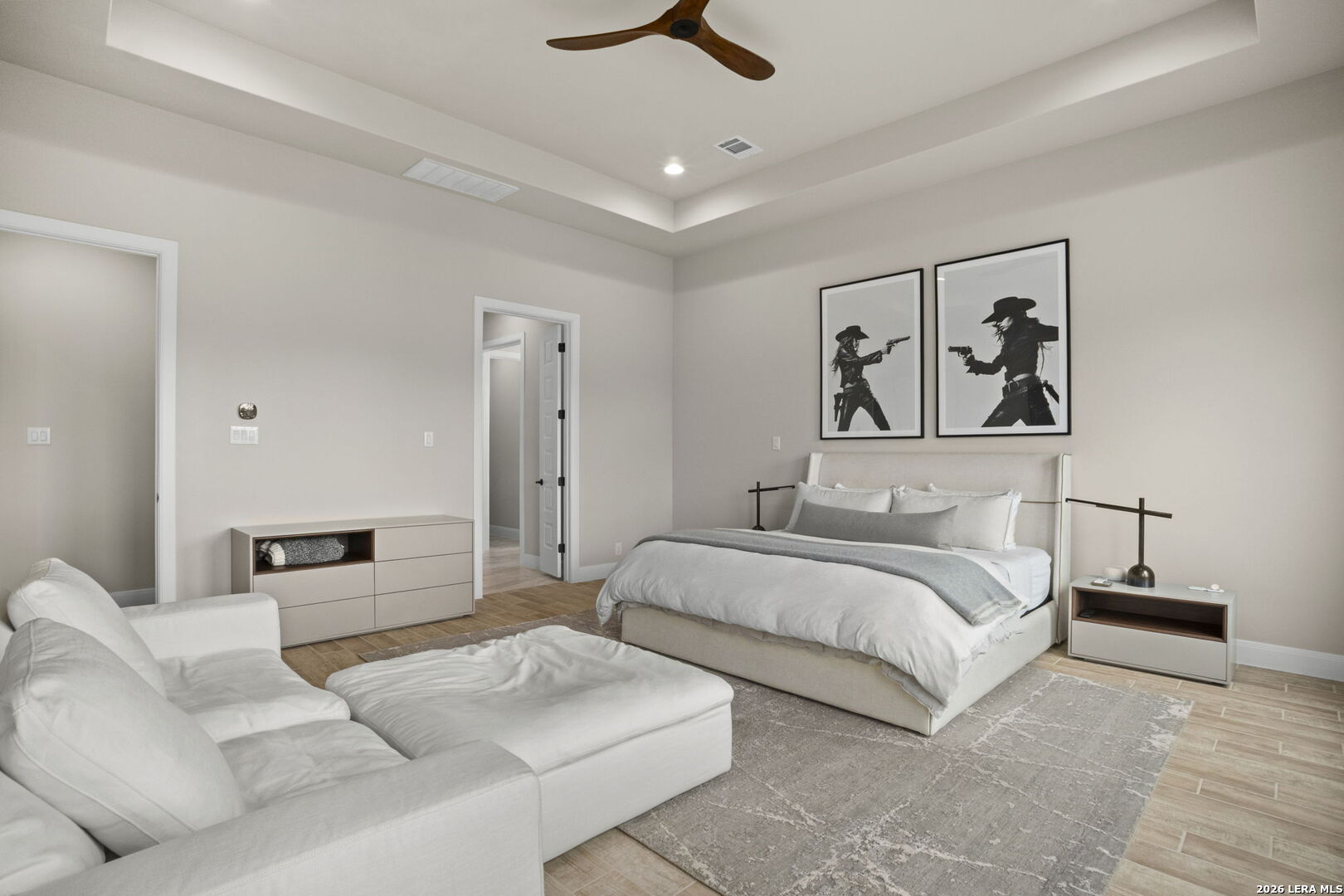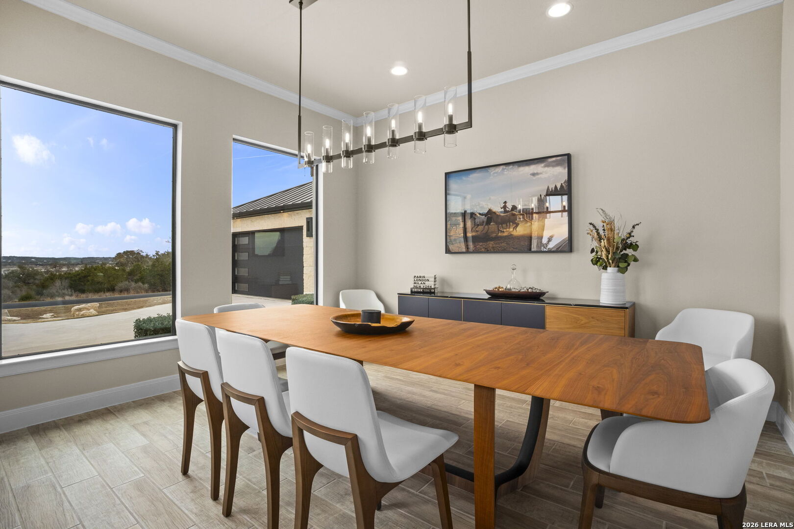This luxurious, impeccably maintained single-story home is in the highly sought-after gated community of The Peninsula at Mystic Shores, nestled along the shores of the Guadalupe River and Canyon Lake, where water sports and neighborhood amenities abound. A grand entry welcomes you into an open-concept living space seamlessly integrating the living, kitchen, dining, and outdoor living areas-an entertainer's dream. The home features elegant ceramic tile flooring throughout, recessed lighting, quartz countertops, soaring ceilings, and stained wood beams accenting the living area, anchored by a dramatic floor-to-ceiling stone fireplace. The expansive breakfast bar with stone surround serves as the centerpiece for gatherings, while the chef's kitchen is equipped with stainless steel appliances, gas cooktop, double ovens, pot filler, and a convenient window pass-through to the outdoor bar. Outdoor living is exceptional, offering stained concrete flooring, a floor-to-ceiling stone fireplace, stone-enclosed outdoor kitchen, shiplap ceiling, ceiling fan, and a surround-sound system-perfect for year-round enjoyment. The primary suite is a true sanctuary, featuring a spa-like bath and a large walk-in closet with direct access to the oversized utility room, complete with its own dog spa. A fifth bedroom, located opposite the primary suite, is currently utilized as a fully equipped fitness room and would also make an ideal private study. The opposite wing of the home includes a spacious guest suite with an ensuite bath, along with two additional bedrooms connected by a well-appointed Jack-and-Jill bath, each offering walk-in closets. This home shows like a meticulously appointed model, offering effortless living, exceptional entertaining spaces, and an incredible Hill Country location. With access to outstanding amenities and serene surroundings, this private retreat invites you to make 146 Obscure Way your private retreat.