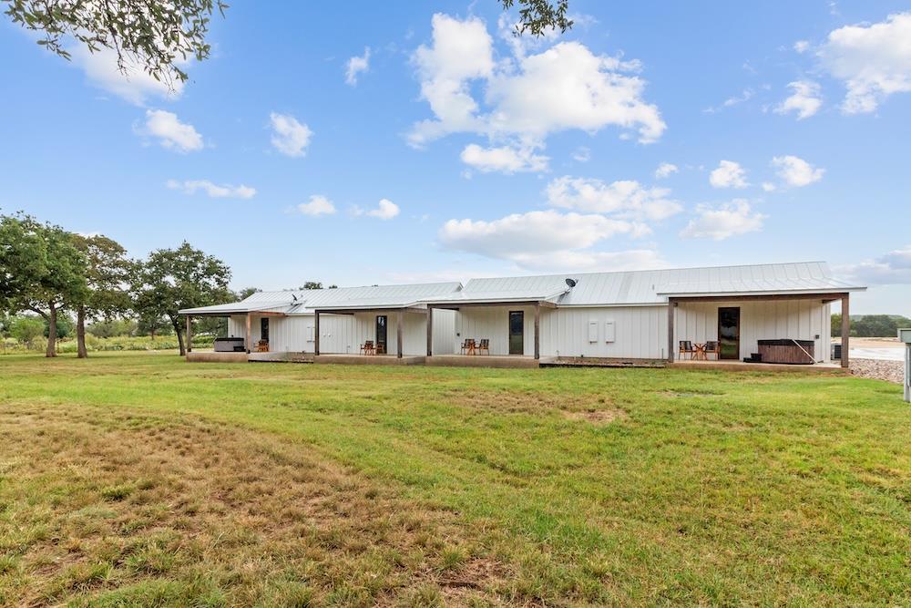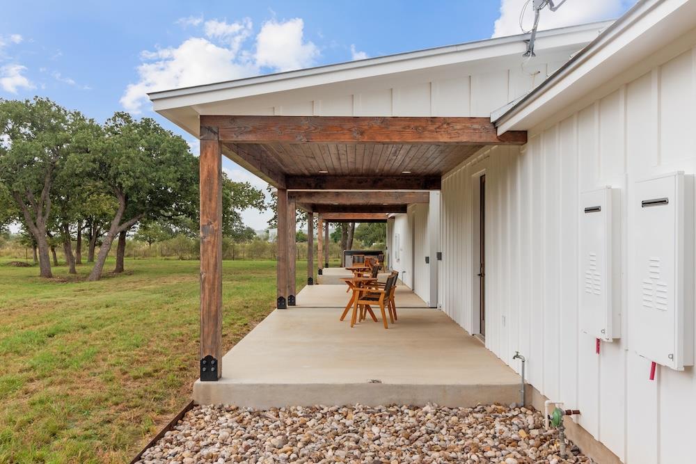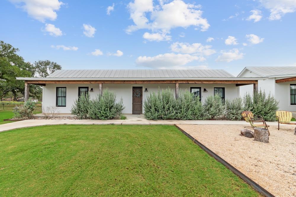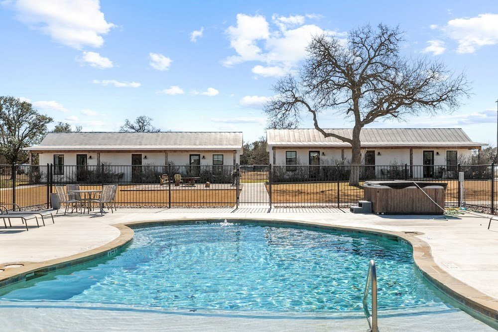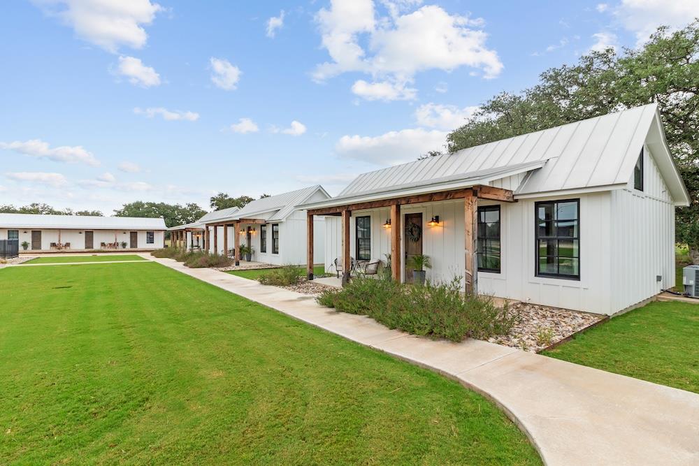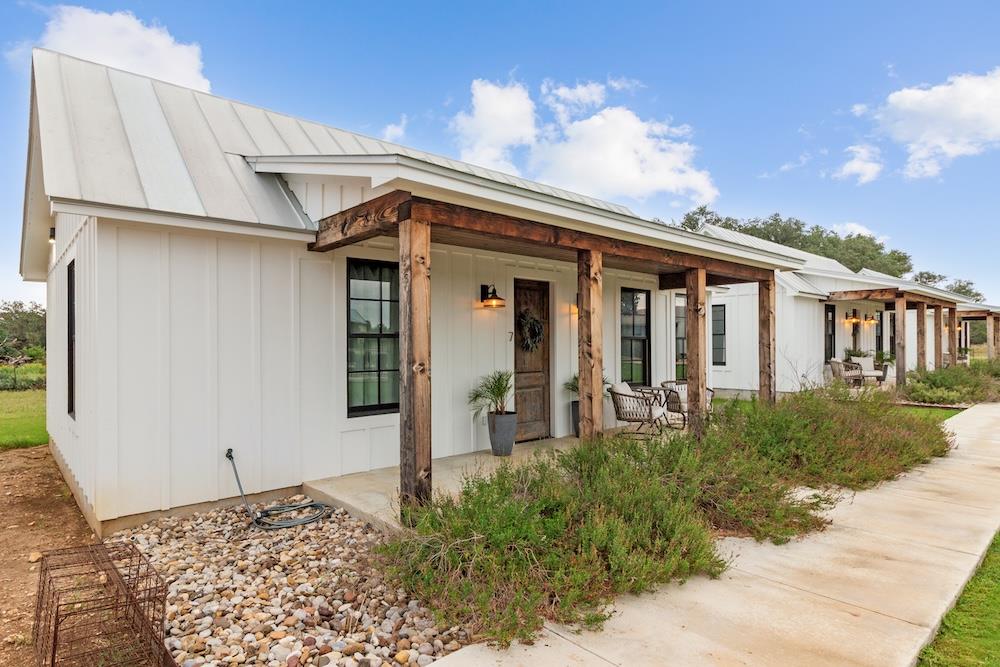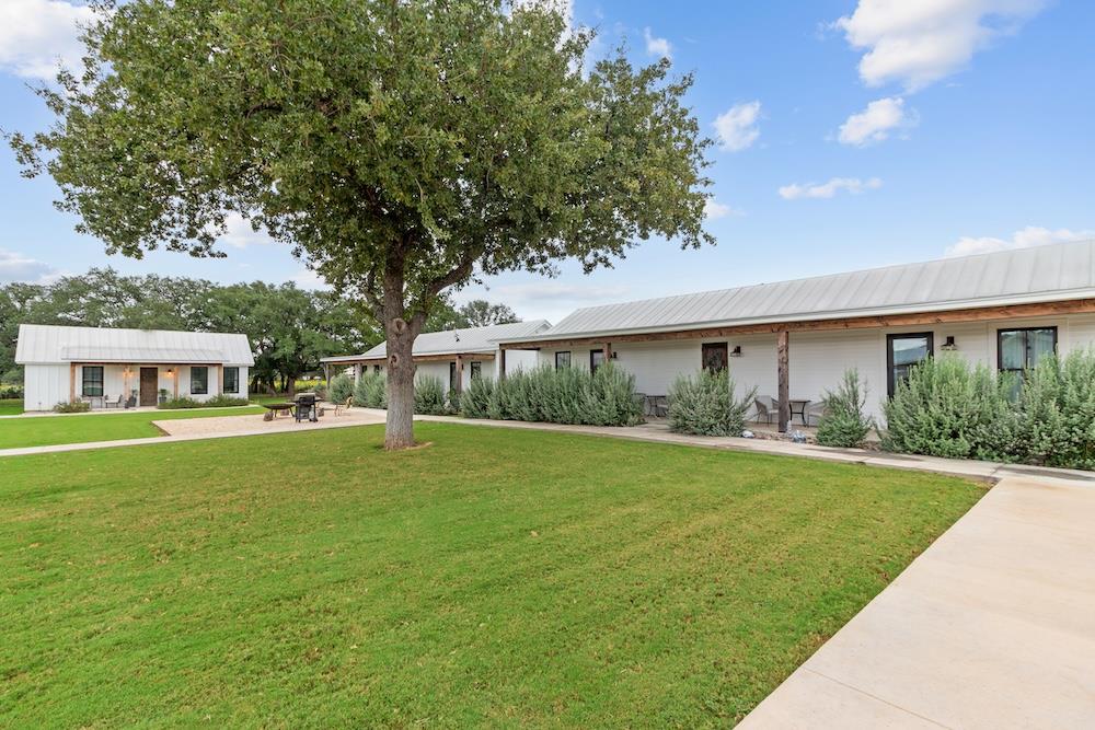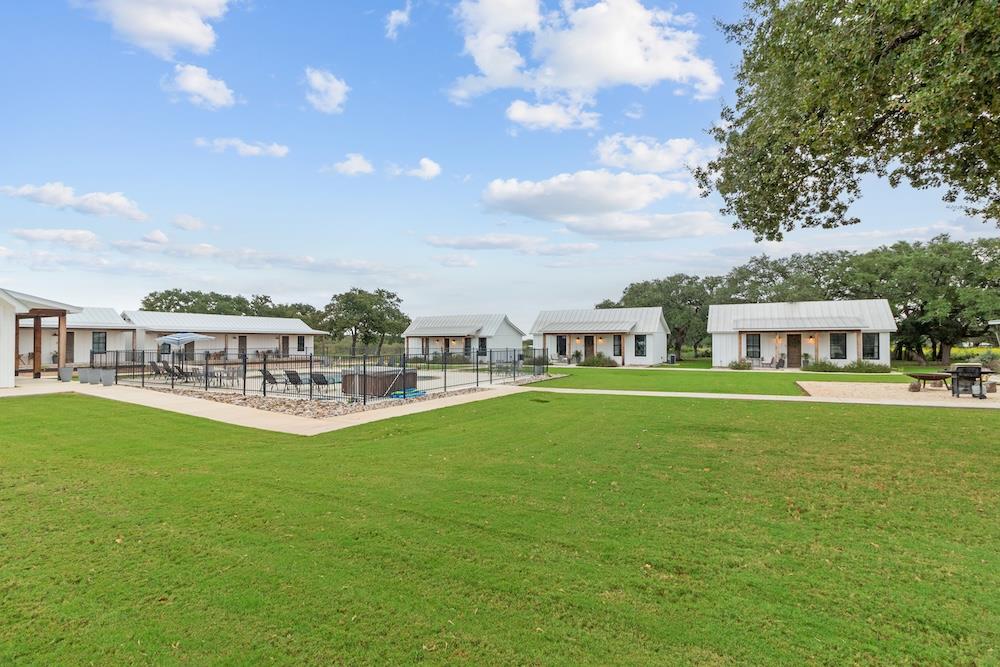 WHITE HORSE LODGE – The newly completed White Horse Lodge and Celebration Hall is the ultimate getaway in the beautiful Hill Country of Fredericksburg, Texas. Located just minutes to the famous Luckenbach, Texas, this amazing opportunity offers a fabulous brand new event center with over 6,100 sqft of conditioned space complete with a catering kitchen and walk-in cooler. The tactfully designed Celebration Hall includes towering ceilings with roll-up doors on both sides, allowing for tons of natural light and provides a natural breezeway, along with two large covered outdoor entertaining areas into the main hall. All of these features makes for the perfect venue for large weddings, small family reunions, company parties, you name it! Folks will love the outdoor bar area and fireplace, along with very nice his and her bathrooms equipped with several stalls in each. Plus, there is an unfinished space upstairs set up as the control center for the hall and is plumbed for a full bath, which would make for a great office space or even small living quarters for staff. No matter the occasion, your guests will feel like royalty in this first-class Celebration Hall. THE LODGING – White Horse Lodge currently offers 14 bedrooms with private baths, fully furnished and ready to start renting. With an additional 4 bedrooms possible with a little work. “The Suites” consist of 4 buildings each with two (2) 1 bedroom/1 bath rentals complete with a small kitchenette and luxury bath accommodations that include slipper tubs, walk in showers, polished concrete floors and high vaulted ceilings. The Suites boast a great design with one rental unit on each end of the building, as well as, a well thought out storage room/laundry area between the two rooms, making for plenty of storage and a maid service area. The storage/laundry area has the added benefit of separate common walls from the suites, making for a quiet and serene stay for your guests. “The Cottages” consists of 3 separate buildings which are ideal for guests looking to stay for more than just a night. All of the cottages boast full kitchens with a large living room that includes high vaulted ceilings, exposed beams and high quality finishes along with generously sized master bedrooms and full baths. The Cottages are full-size complete 1 bedroom/1 bath homes. Both the Suites and the Cottages surround and create a unique courtyard around a stunning pool area. The set up really is perfect for both individual guests or large groups who want to gather in one place. “The Office” shares very similar construction as the Cottages. The Office is situated on the courtyard near the pool and across from the Celebration Hall and offers outdoor restrooms for pool guests and would be a perfect location for guest check-in with the option of converting to a 4th cottage with its own private bath and living area inside. This could also be an ideal spot for staff living quarters. “The Farm House” offers 3 additional bedrooms and bathrooms, built in 1995, it has gone through thorough updates and now offers guests a wonderful rental home with wood floors, open kitchen living area complete with a masonry fireplace. The Farm House is nestled a little ways behind the event center with surrounding mature trees creating a secluded back porch and yard making for returning customers year after year. Wait, there is more! “The Back House” is a brand new, but not complete, construction located well away from the Celebration Hall. It will feature a more modern design and includes, 3 more bedrooms with 3 private baths. Interior plumbing and electric is in place, along with many of the mechanical components to complete the construction. The Back House would make a perfect spot to call home for the new owner. It is located across the creek and well away from the other structures and offers beautiful views from the back porch.The White Horse Lodge includes 35.8 acres and only about a 1/3 of which is currently be utilized.