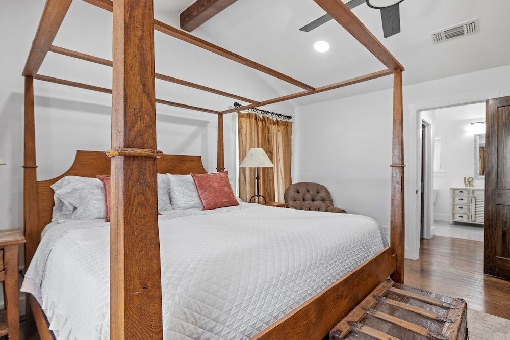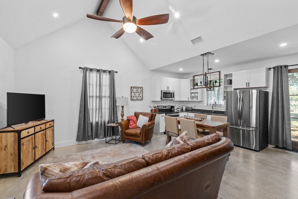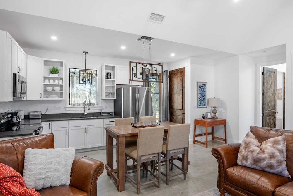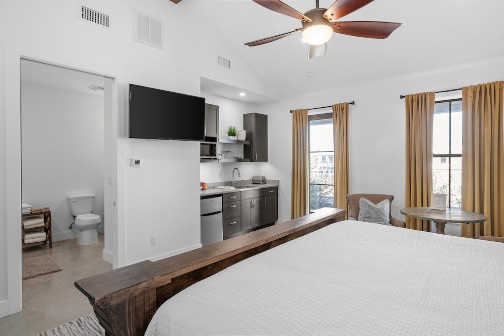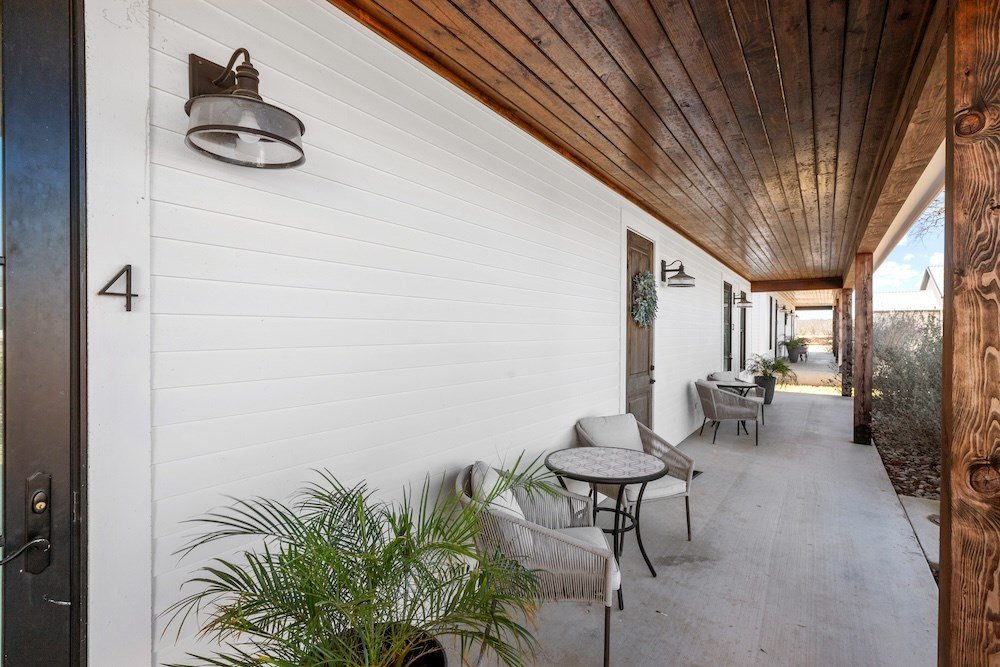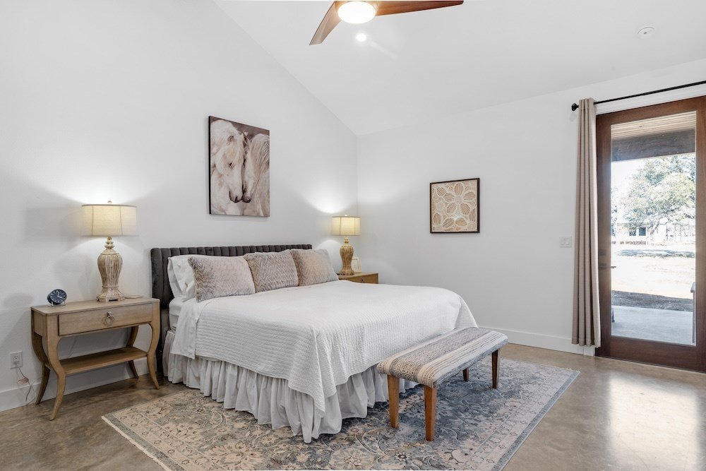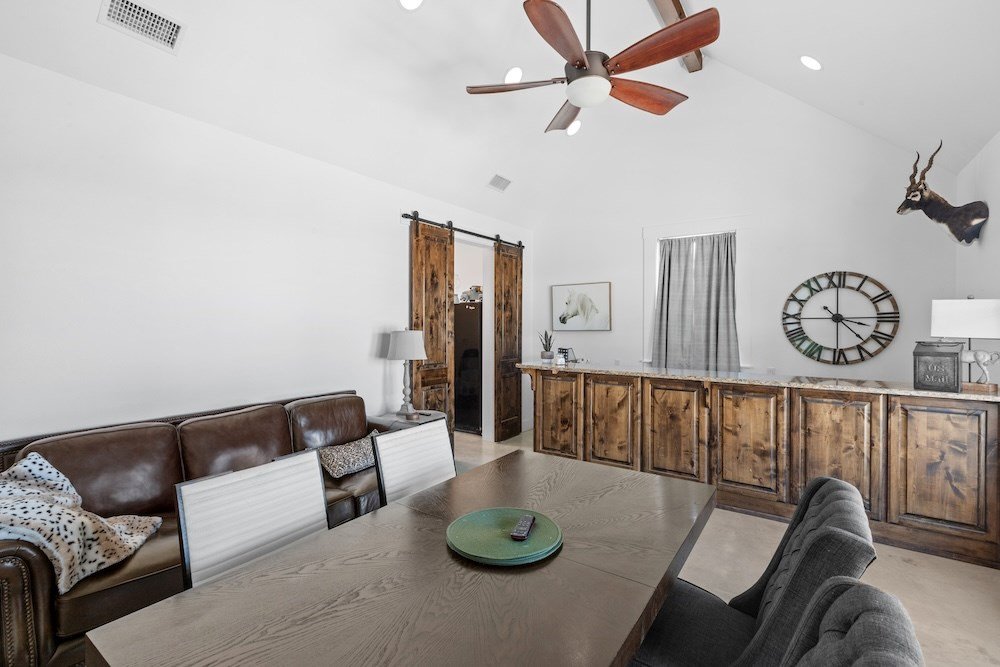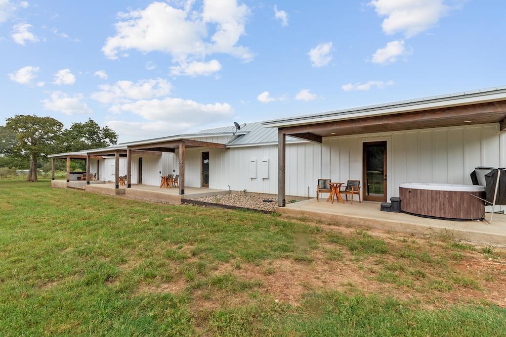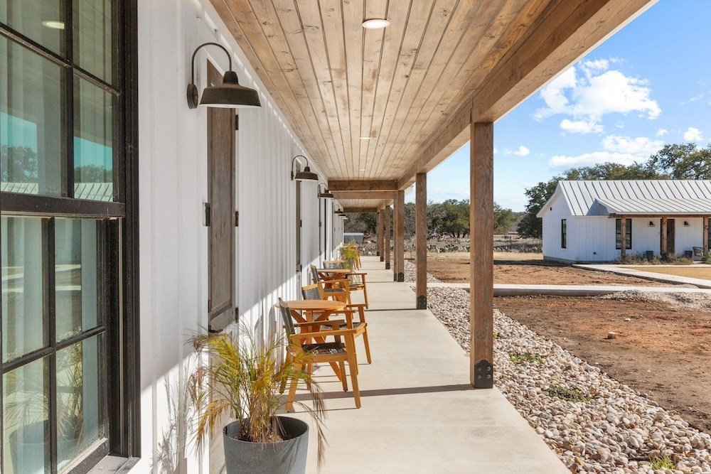 WHITE HORSE LODGE – The newly completed White Horse Lodge and Celebration Hall is the ultimate getaway in the beautiful Hill Country of Fredericksburg, Texas. Located just minutes to the famous Luckenbach, Texas, this amazing opportunity offers a fabulous brand new event center with over 6,100 sqft of conditioned space complete with a catering kitchen and walk-in cooler. The tactfully designed Celebration Hall includes towering ceilings with roll-up doors on both sides, allowing for tons of natural light and provides a natural breezeway, along with two large covered outdoor entertaining areas into the main hall. All of these features makes for the perfect venue for large weddings, small family reunions, company parties, you name it! Folks will love the outdoor bar area and fireplace, along with very nice his and her bathrooms equipped with several stalls in each. Plus, there is an unfinished space upstairs set up as the control center for the hall and is plumbed for a full bath, which would make for a great office space or even small living quarters for staff. No matter the occasion, your guests will feel like royalty in this first-class Celebration Hall. THE LODGING – White Horse Lodge currently offers 14 bedrooms with private baths, fully furnished and ready to start renting. With an additional 4 bedrooms possible with a little work. “The Suites” consist of 4 buildings each with two (2) 1 bedroom/1 bath rentals complete with a small kitchenette and luxury bath accommodations that include slipper tubs, walk in showers, polished concrete floors and high vaulted ceilings. The Suites boast a great design with one rental unit on each end of the building, as well as, a well thought out storage room/laundry area between the two rooms, making for plenty of storage and a maid service area. The storage/laundry area has the added benefit of separate common walls from the suites, making for a quiet and serene stay for your guests. “The Cottages” consists of 3 separate buildings which are ideal for guests looking to stay for more than just a night. All of the cottages boast full kitchens with a large living room that includes high vaulted ceilings, exposed beams and high quality finishes along with generously sized master bedrooms and full baths. The Cottages are full-size complete 1 bedroom/1 bath homes. Both the Suites and the Cottages surround and create a unique courtyard around a stunning pool area. The set up really is perfect for both individual guests or large groups who want to gather in one place. “The Office” shares very similar construction as the Cottages. The Office is situated on the courtyard near the pool and across from the Celebration Hall and offers outdoor restrooms for pool guests and would be a perfect location for guest check-in with the option of converting to a 4th cottage with its own private bath and living area inside. This could also be an ideal spot for staff living quarters. “The Farm House” offers 3 additional bedrooms and bathrooms, built in 1995, it has gone through thorough updates and now offers guests a wonderful rental home with wood floors, open kitchen living area complete with a masonry fireplace. The Farm House is nestled a little ways behind the event center with surrounding mature trees creating a secluded back porch and yard making for returning customers year after year. Wait, there is more! “The Back House” is a brand new, but not complete, construction located well away from the Celebration Hall. It will feature a more modern design and includes, 3 more bedrooms with 3 private baths. Interior plumbing and electric is in place, along with many of the mechanical components to complete the construction. The Back House would make a perfect spot to call home for the new owner. It is located across the creek and well away from the other structures and offers beautiful views from the back porch.The White Horse Lodge includes 35.8 acres and only about a 1/3 of which is currently be utilized.