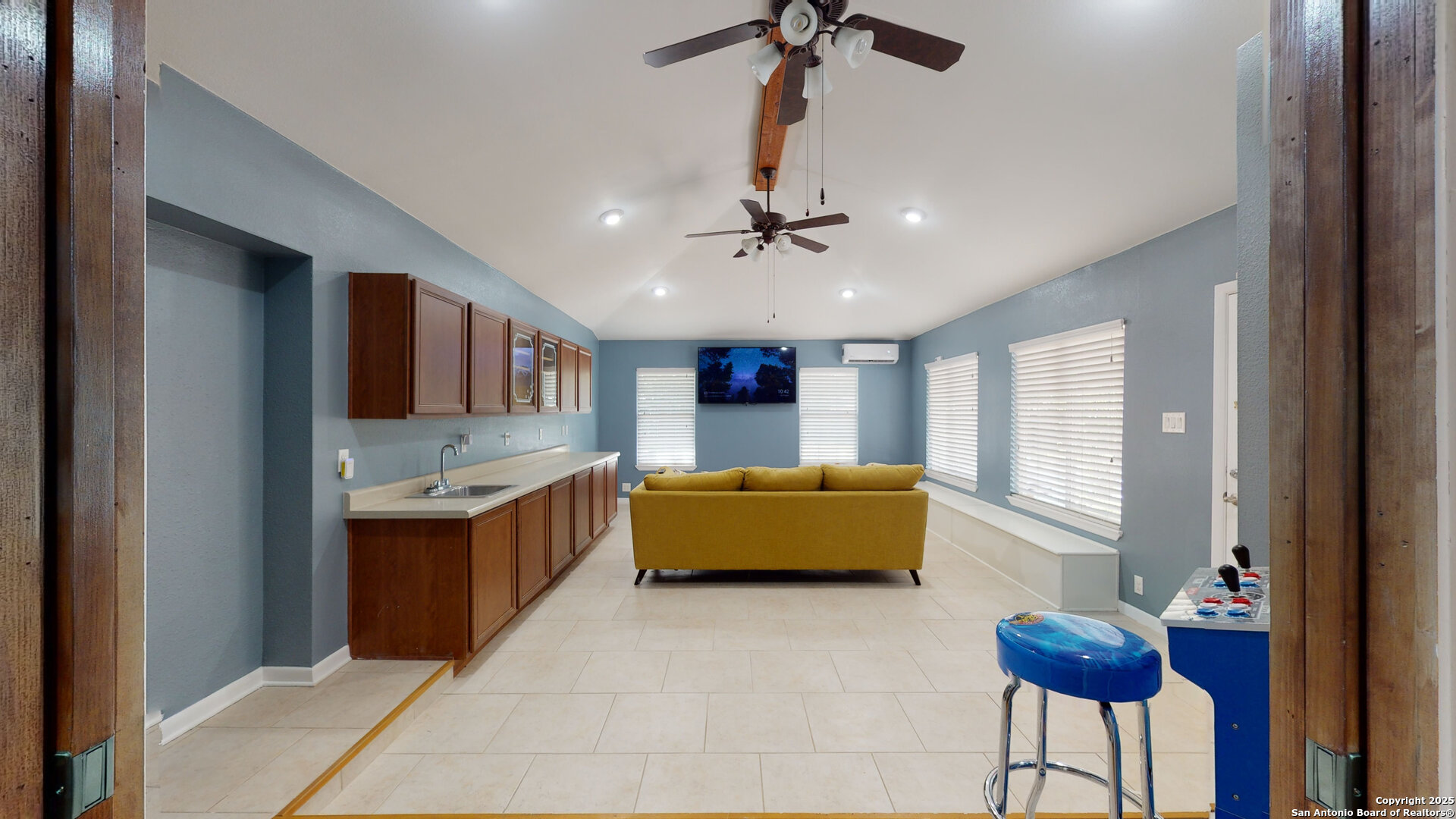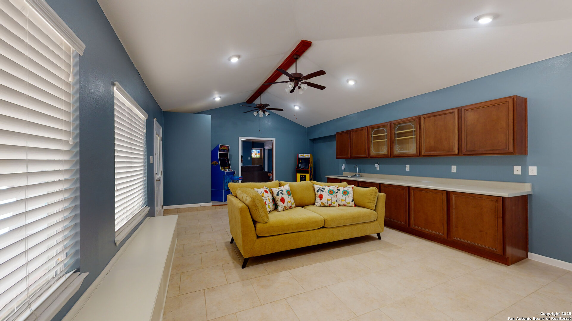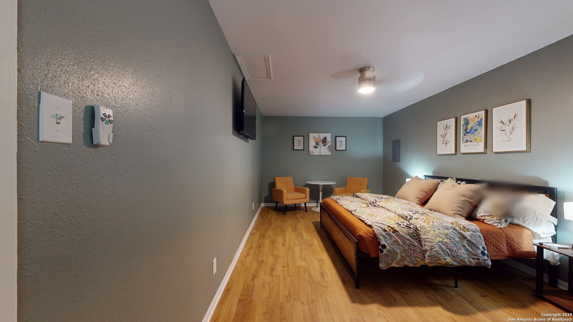 This fully furnished 4-bedroom, 1.5-bathrooms corner home sits perfectly between The Quarry and North Star Mall, with fast access to nearby business hubs, major freeways, and San Antonio's top shopping and nightlife. Inside, you'll find a spacious, fully equipped kitchen with modern appliances, a large separate living room for relaxing or entertaining, a dedicated dining area for gatherings, and a generous game room complete with arcade machines for added fun. The master suite is thoughtfully positioned away from the other bedrooms for extra privacy. Outside, enjoy a covered front patio ideal for morning coffee or evening unwinding, plus a shaded driveway for convenient parking. With comfort, style, and unbeatable location, this home is a standout choice for professionals, families, or anyone seeking a Mid-term or long-term home as well as for those just needing temporary housing.