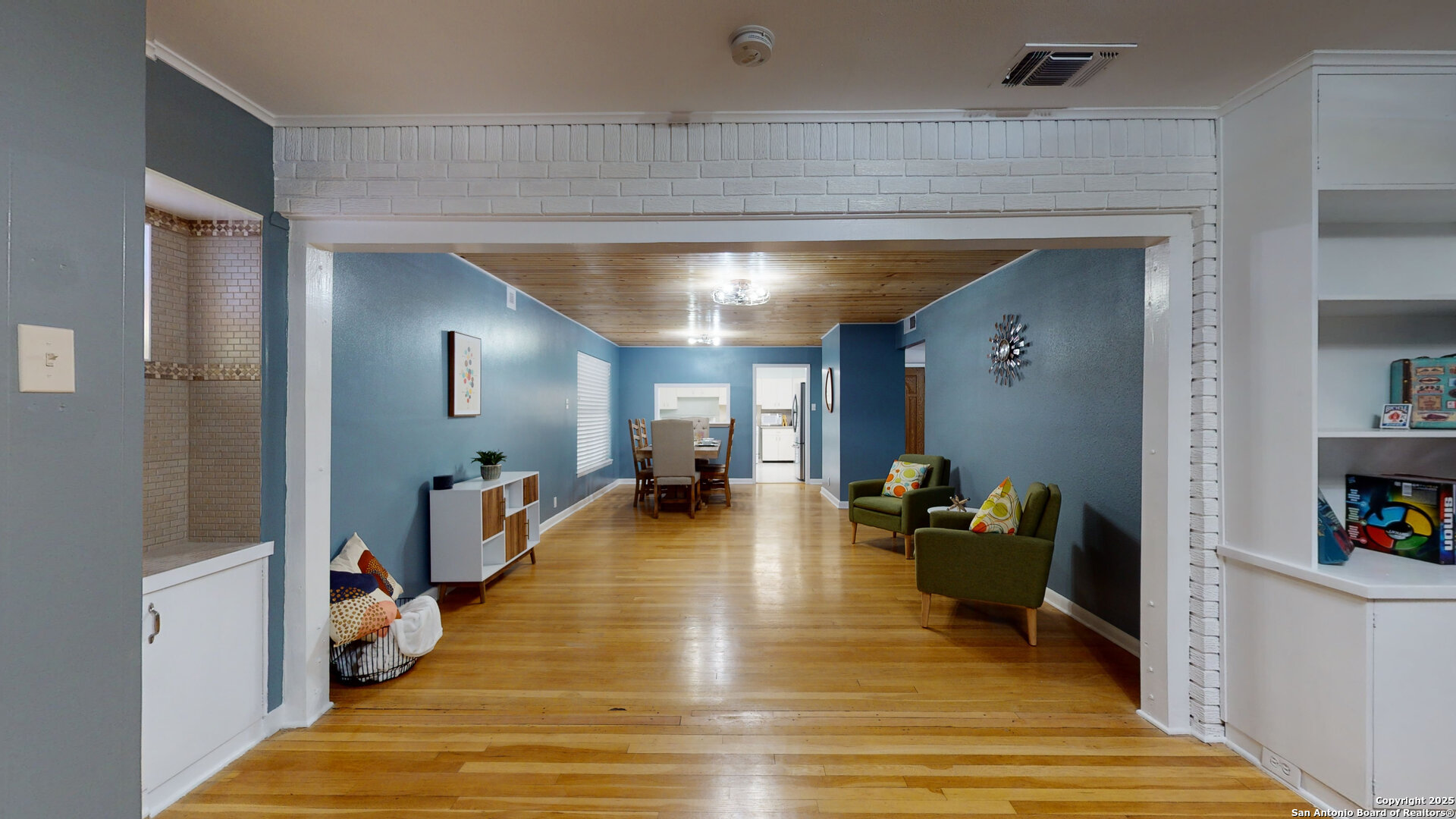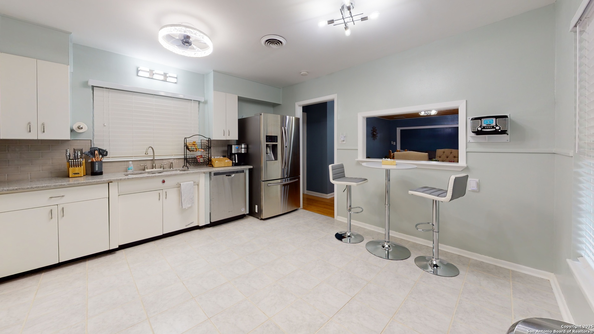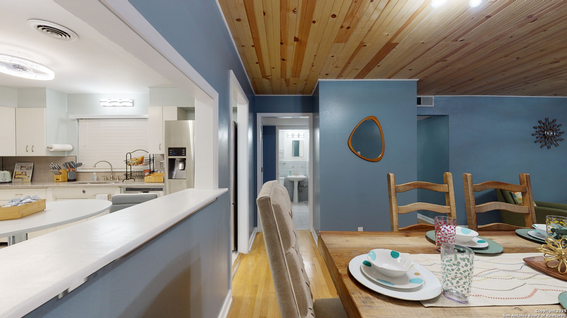 This fully furnished 4-bedroom, 1.5-bathrooms corner home sits perfectly between The Quarry and North Star Mall, with fast access to nearby business hubs, major freeways, and San Antonio's top shopping and nightlife. Inside, you'll find a spacious, fully equipped kitchen with modern appliances, a large separate living room for relaxing or entertaining, a dedicated dining area for gatherings, and a generous game room complete with arcade machines for added fun. The master suite is thoughtfully positioned away from the other bedrooms for extra privacy. Outside, enjoy a covered front patio ideal for morning coffee or evening unwinding, plus a shaded driveway for convenient parking. With comfort, style, and unbeatable location, this home is a standout choice for professionals, families, or anyone seeking a Mid-term or long-term home as well as for those just needing temporary housing.