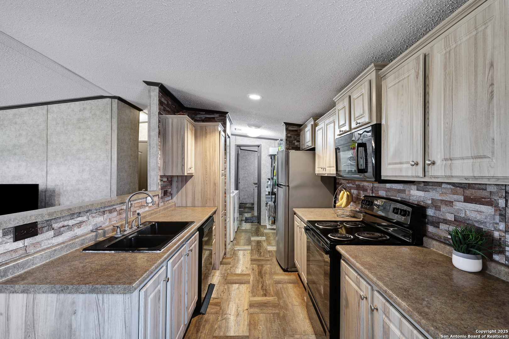Enjoy peaceful country living just minutes from town! This well-maintained, one-owner home was purchased new and has been lovingly cared for ever since. Featuring 4 bedrooms and 2 baths, this spacious double-wide manufactured home sits on a large 0.51-acre lot in Geronimos Haven within Navarro ISD. The open floor plan includes a comfortable living area, a separate dining room, and a kitchen with granite surfaces, ample cabinetry, a dishwasher, and a disposal. New vinyl flooring runs throughout with carpet in the bedrooms for added comfort. The primary suite offers a relaxing retreat with a garden tub, separate shower, and generous closet space. Outside, the expansive lot provides endless possibilities for outdoor entertaining, gardening, or future improvements. Conveniently located near schools, shopping, and dining, with easy access to IH-35 for commutes to Seguin, San Marcos, or New Braunfels-this move-in ready home offers the perfect blend of tranquility and convenience at an affordable price.