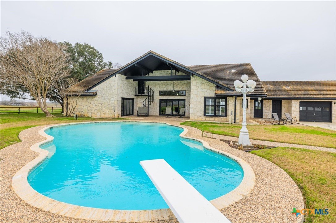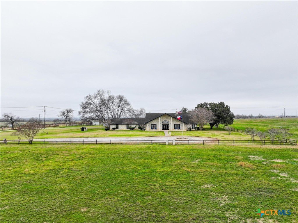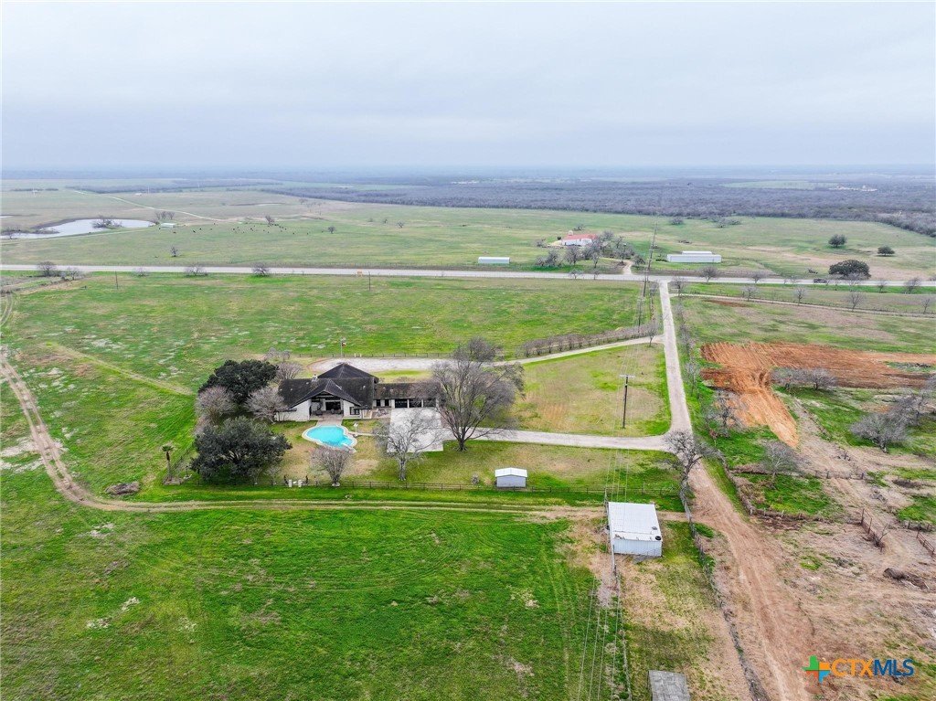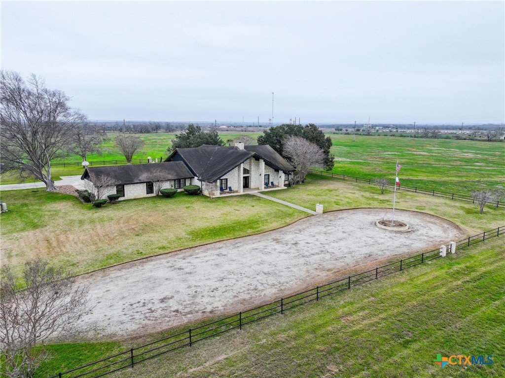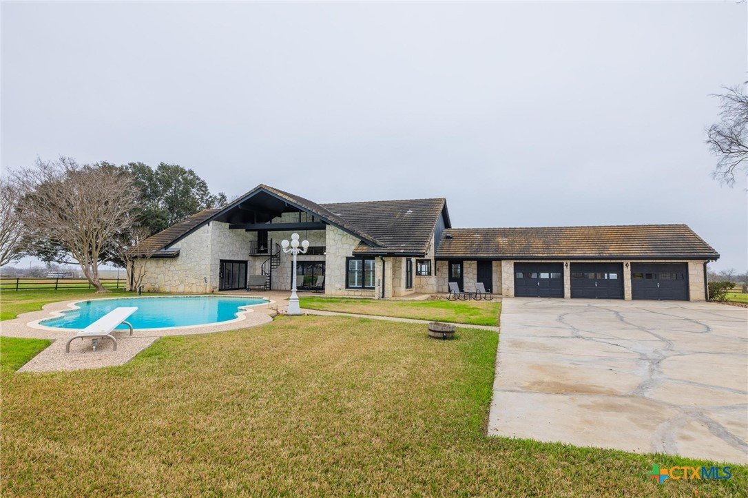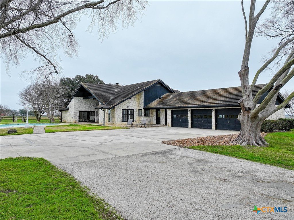 Nestled on 11.95 scenic acres in Southern Gonzales County, TX, this stunning 3,300 sq. ft. hilltop home offers the perfect balance of space, comfort, and convenience. Designed for effortless living, the home features expansive living areas, an open-concept kitchen, large windows that frame breathtaking views, and a covered porch overlooking a pool—ideal for soaking in the South Texas sunsets. Located off Highway 87, this property is just 30 minutes from Seguin, an hour from San Antonio, and within easy reach of Austin and the Gulf Coast. Enjoy the serenity of rural living without the hassle of extensive land maintenance. A must-see retreat!
