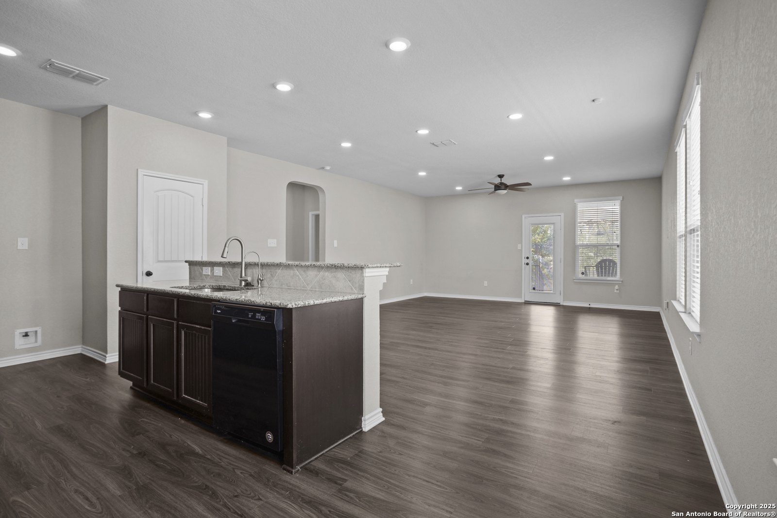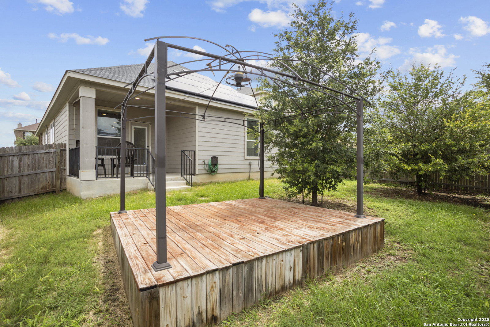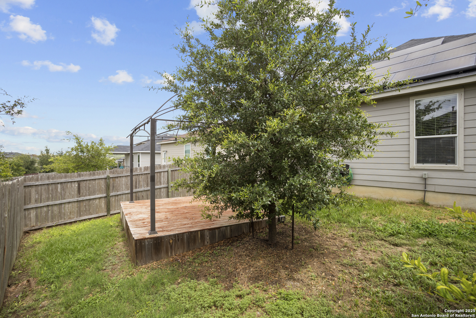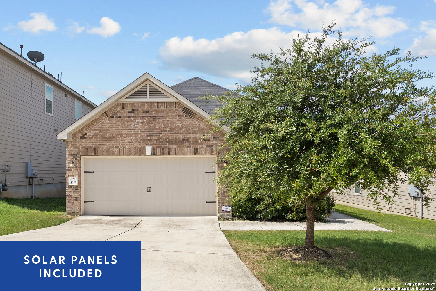 Seller wll pay $5k concession with a full price offer!!! Built in 2019, this single-story home offers 1,886 sq ft of functional living space with 4 bedrooms and 2 full bathrooms. Luxury vinyl plank flooring flows throughout the open-concept layout, connecting the living, dining, and kitchen areas seamlessly. The kitchen is equipped with granite countertops, ample cabinetry, and a central island that opens directly to the main living space-ideal for daily routines or entertaining. The primary suite includes a walk-in closet and a private bath with a double vanity and a tub-shower combination. Three additional bedrooms provide flexibility for guest rooms, work-from-home setups, or storage needs. Step outside to a covered patio that leads to an extended wooden deck, offering a practical space for outdoor dining, grilling, or relaxing. The home also includes fully paid off solar panels, delivering energy savings and eco friendly value, as well as pre plumbing for a water softener system. The two-car garage and manageable yard complete the exterior. Situated in a quiet neighborhood with convenient access to local schools, shopping, and major highways. Public school parks nearby offer open playgrounds and walking paths