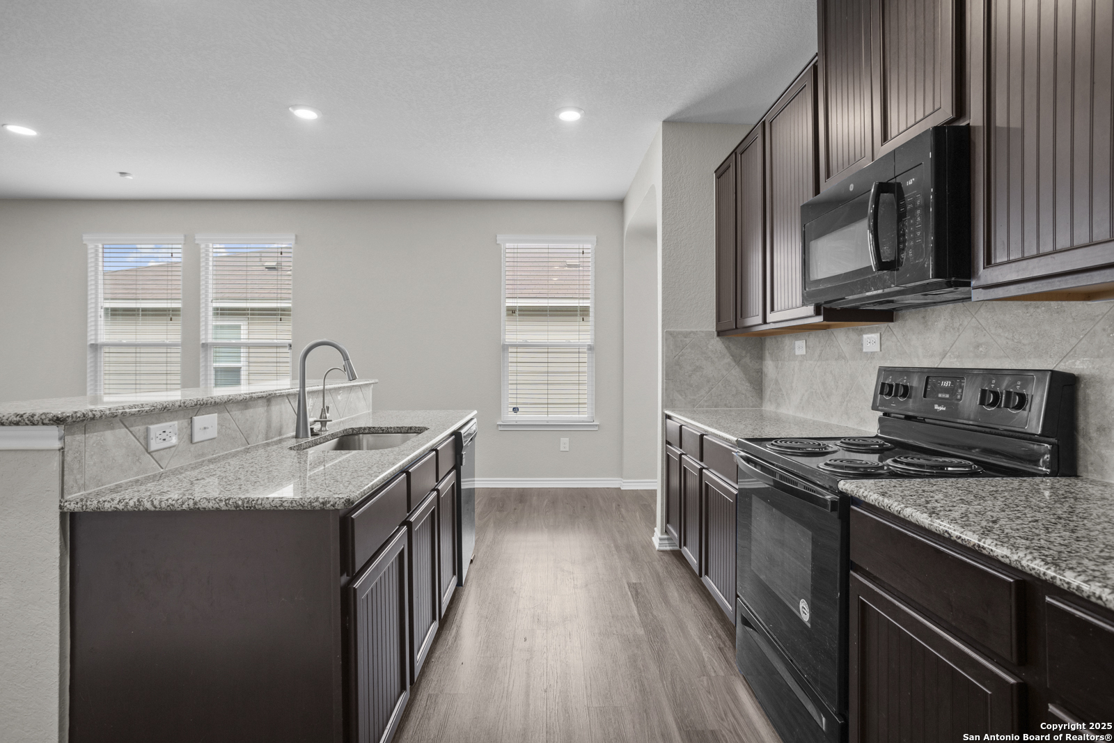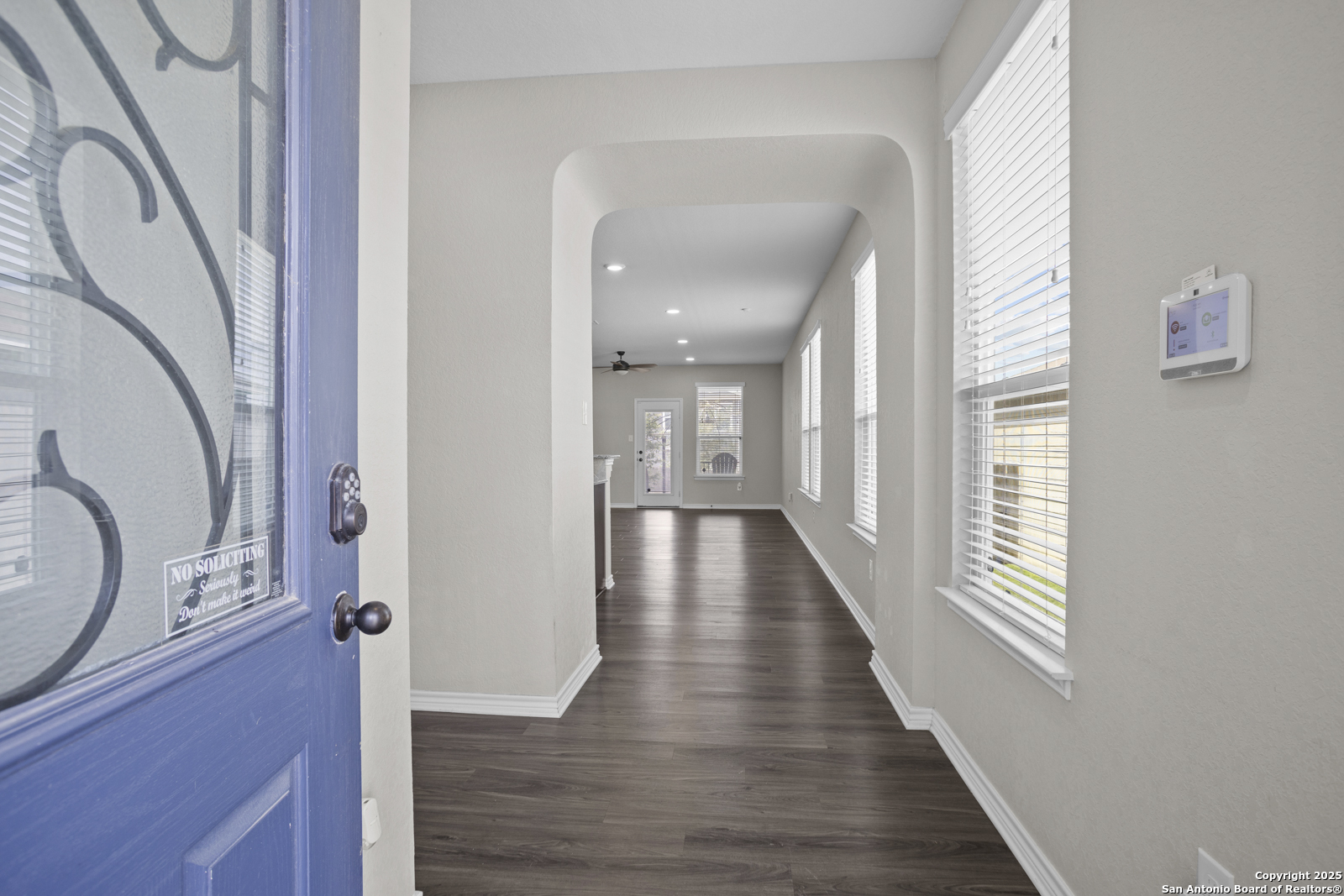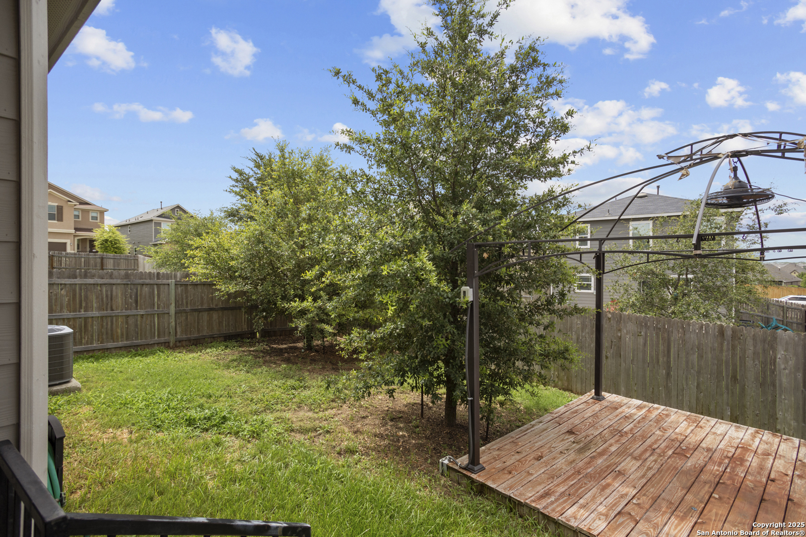 Seller wll pay $5k concession with a full price offer!!! Built in 2019, this single-story home offers 1,886 sq ft of functional living space with 4 bedrooms and 2 full bathrooms. Luxury vinyl plank flooring flows throughout the open-concept layout, connecting the living, dining, and kitchen areas seamlessly. The kitchen is equipped with granite countertops, ample cabinetry, and a central island that opens directly to the main living space-ideal for daily routines or entertaining. The primary suite includes a walk-in closet and a private bath with a double vanity and a tub-shower combination. Three additional bedrooms provide flexibility for guest rooms, work-from-home setups, or storage needs. Step outside to a covered patio that leads to an extended wooden deck, offering a practical space for outdoor dining, grilling, or relaxing. The home also includes fully paid off solar panels, delivering energy savings and eco friendly value, as well as pre plumbing for a water softener system. The two-car garage and manageable yard complete the exterior. Situated in a quiet neighborhood with convenient access to local schools, shopping, and major highways. Public school parks nearby offer open playgrounds and walking paths