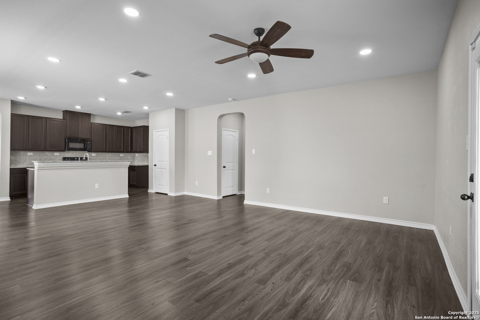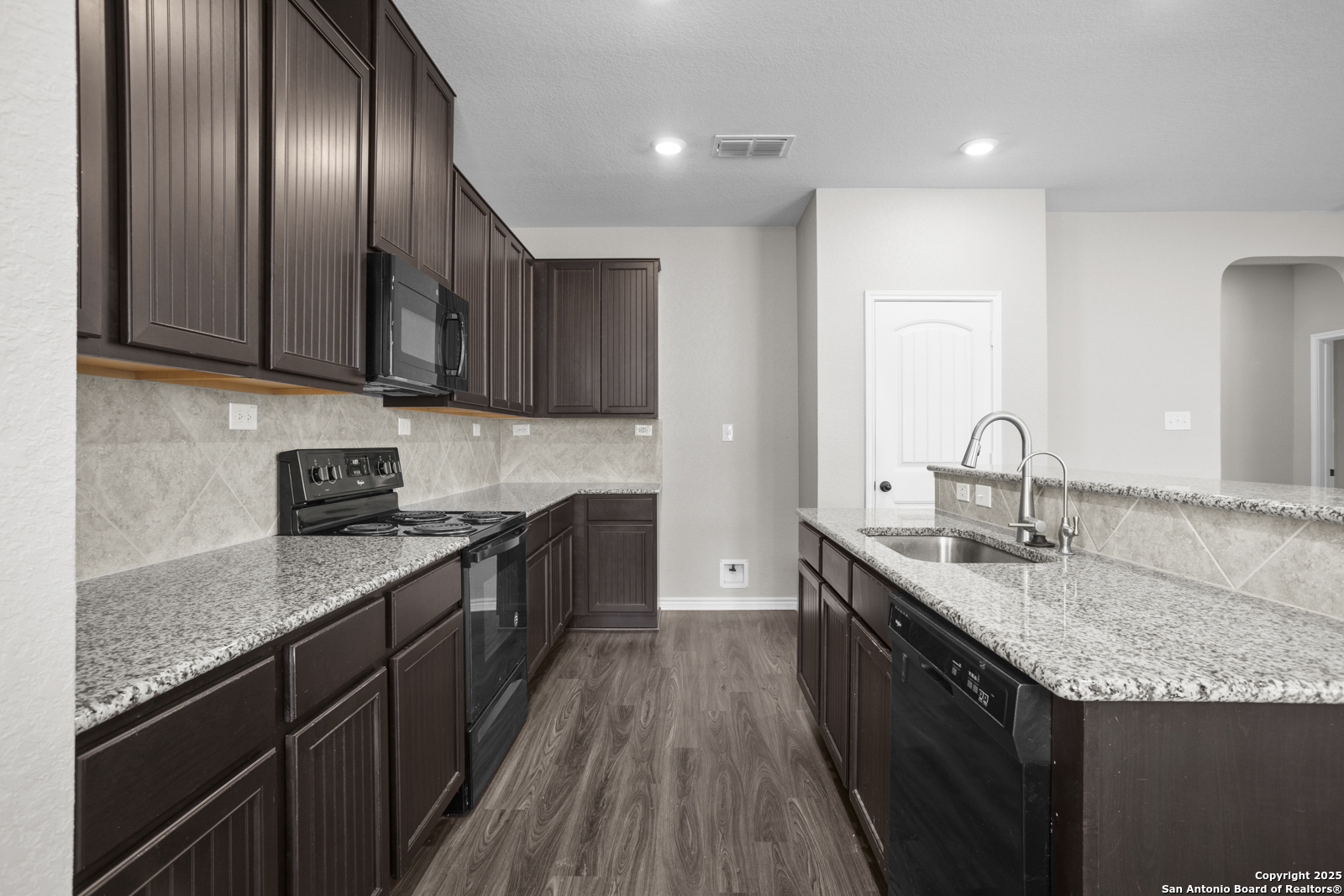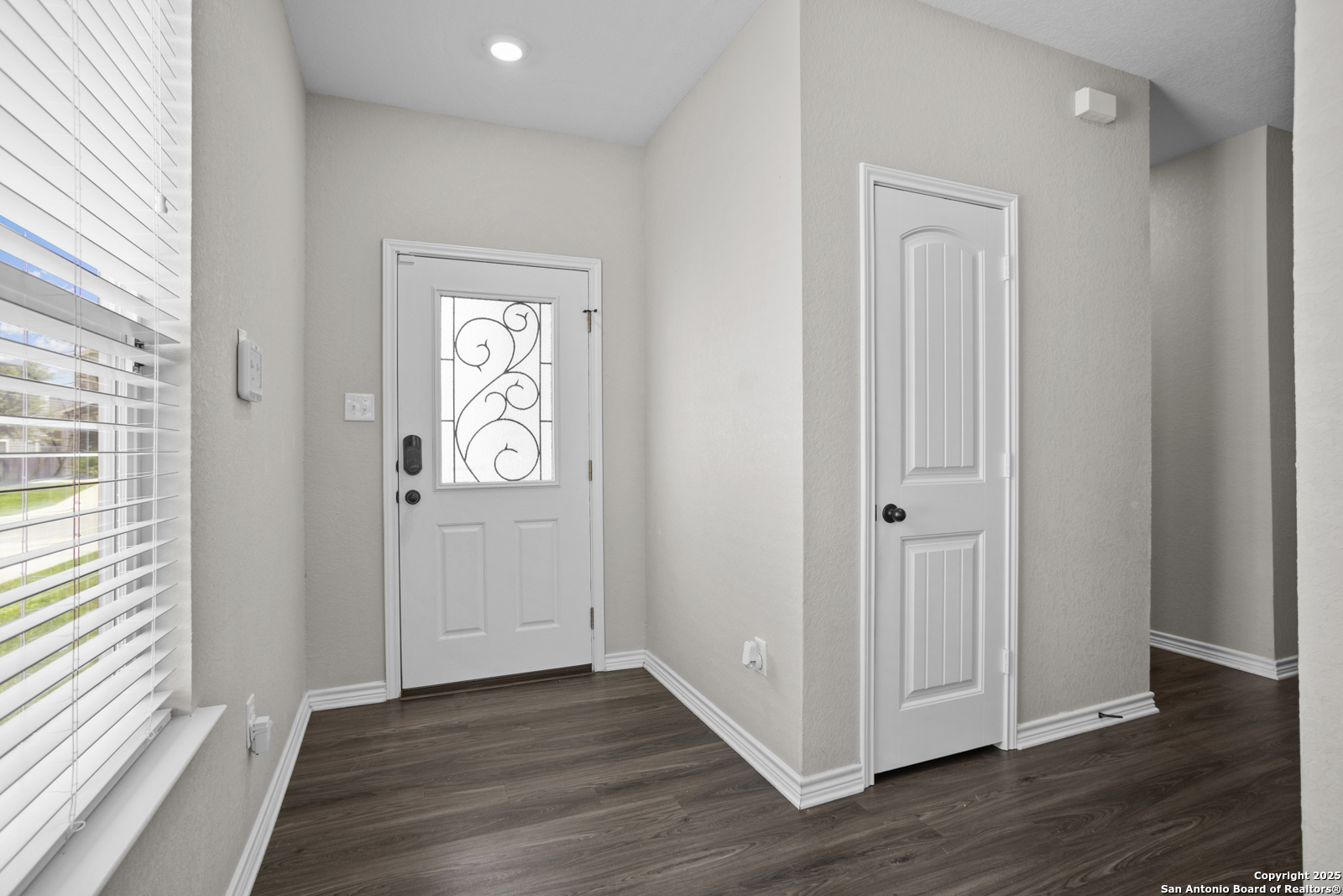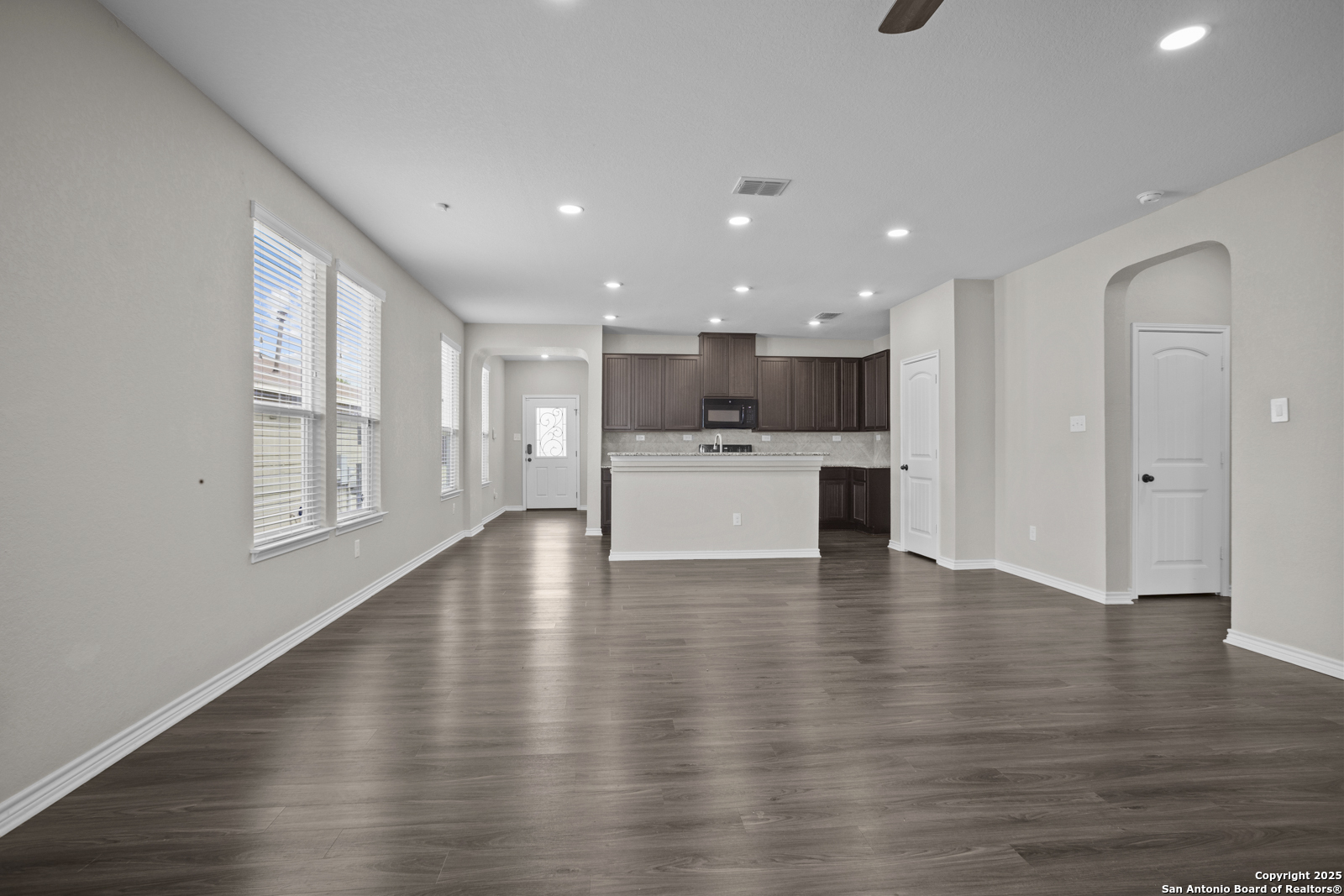 Seller wll pay $5k concession with a full price offer!!! Built in 2019, this single-story home offers 1,886 sq ft of functional living space with 4 bedrooms and 2 full bathrooms. Luxury vinyl plank flooring flows throughout the open-concept layout, connecting the living, dining, and kitchen areas seamlessly. The kitchen is equipped with granite countertops, ample cabinetry, and a central island that opens directly to the main living space-ideal for daily routines or entertaining. The primary suite includes a walk-in closet and a private bath with a double vanity and a tub-shower combination. Three additional bedrooms provide flexibility for guest rooms, work-from-home setups, or storage needs. Step outside to a covered patio that leads to an extended wooden deck, offering a practical space for outdoor dining, grilling, or relaxing. The home also includes fully paid off solar panels, delivering energy savings and eco friendly value, as well as pre plumbing for a water softener system. The two-car garage and manageable yard complete the exterior. Situated in a quiet neighborhood with convenient access to local schools, shopping, and major highways. Public school parks nearby offer open playgrounds and walking paths