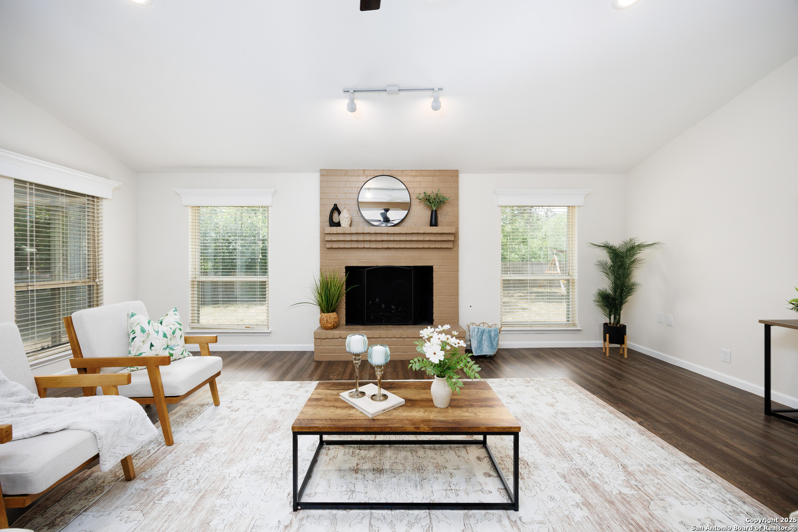 SOME KITCHEN DOORS TO BE REPLACED STILL. BEAUTIFUL ONE STORY HOME IN A DESIRED NEIGHBORHOOD ON A CUL-DE-SAC. LARGE FAMILY ROOM WITH NICE LARGE GAS FIREPLACE AS THE FOCAL POINT, EAT IN KITCHEN THAT HAS ALSO BEEN UPDATED, UPDATED BATHROOMS, HARD WOOD FLOORS. NEW ROOF, NEW WINDOWS AND A SPRINKLER SYSTEM ADDED APPROX 5.5 YEARS AGO. FRONT LANDSCAPING REFRESHED. FRESH INTERIOR PAINTING AND EXTERIOR PAINTING COMPLETED LAST WEEK. NEW PLUMBING AND ENCLOSED IN BACK PORCH. NEW HVAC SYSTEM ADDED 4.5 YEAR AGO. THIS HOME HAS BEEN WELL MAINTAINED FOR AND IS READY FOR YOUR BUYER.