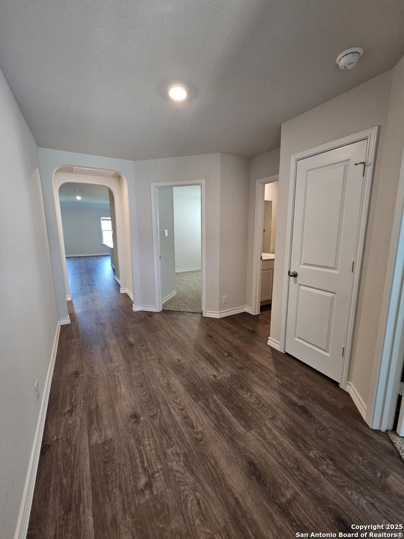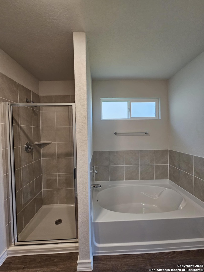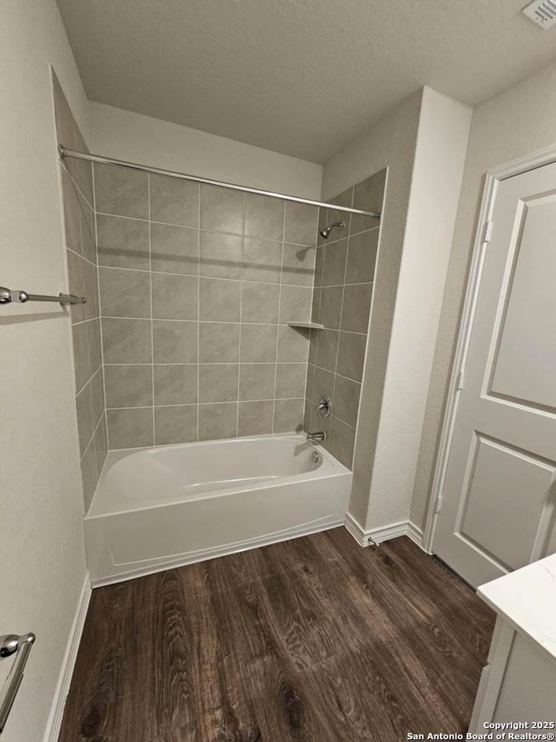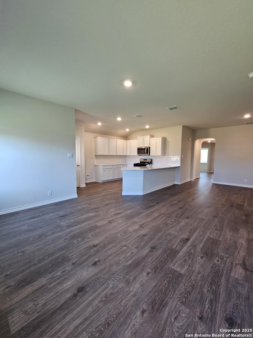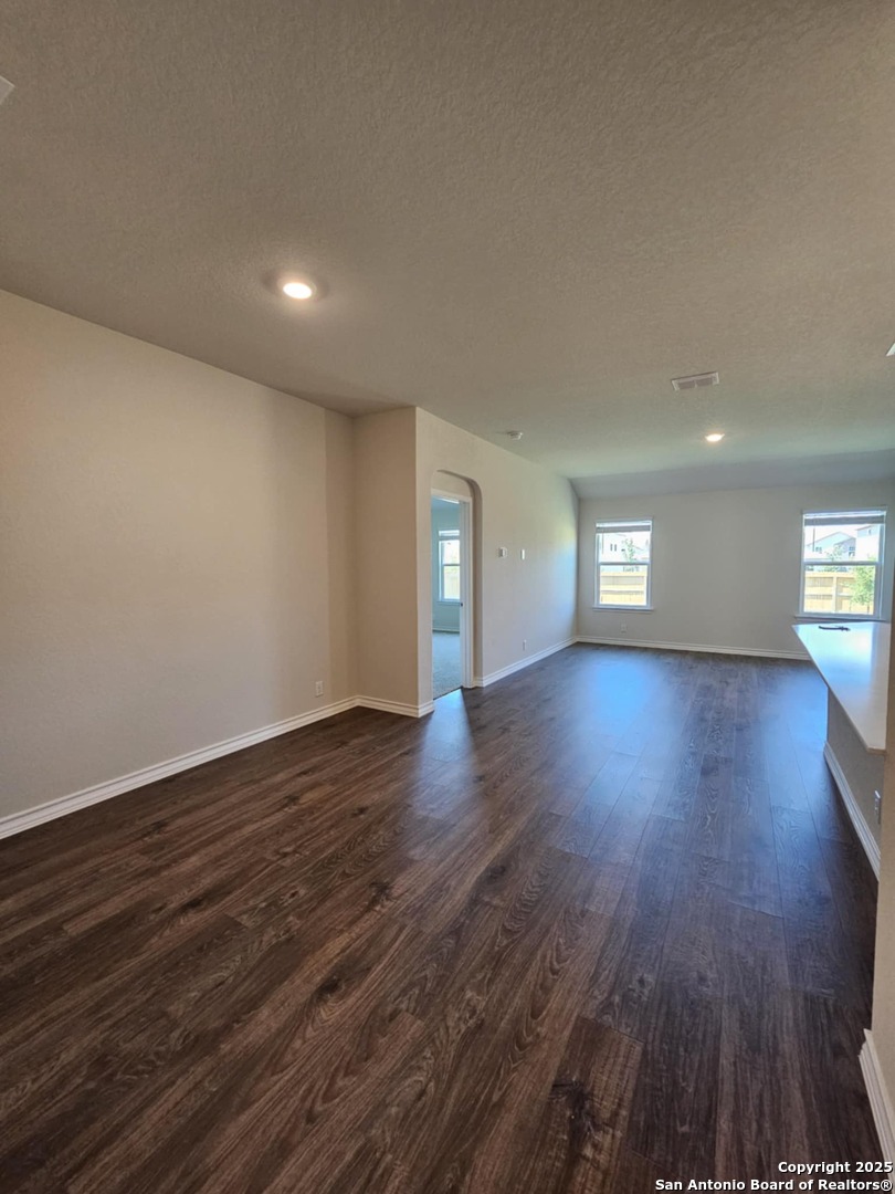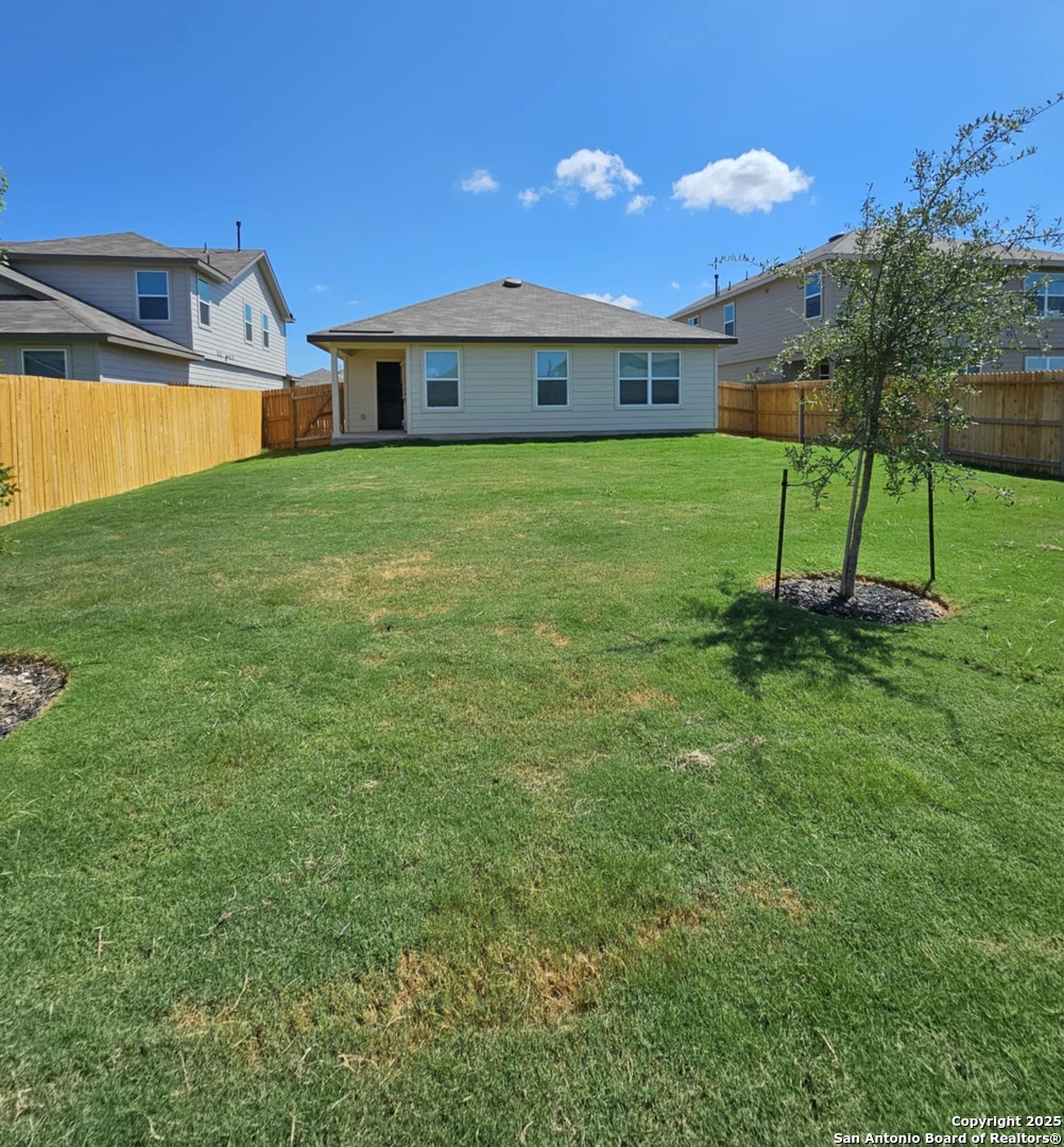 This single-story, 3-bedroom, 2 bathroom home features 1442 square feet of living space and a two-car garage. The inviting entry opens to a large dining area and an open kitchen with spacious quartz countertops, stainless steel appliances, electric cooking range, stylish subway tile backsplash, and abundant cabinet storage space. The kitchen opens into the living room with plenty of natural light. The private main bedroom includes a nice ensuite with a double vanity sink, separate tub and walk-in shower, water closet, and a spacious walk-in closet. Secondary bedrooms, a second full bathroom, and a utility room are located off the entry. Additional features include tall 9-foot ceilings, 2-inch faux wood blinds throughout the home, luxury vinyl plank flooring at entry, family room, kitchen, and dining area, ceramic tile in the bathrooms and utility room, and pre-plumb for water softener loop. You'll enjoy added security in your new home with our Home is Connected feature. Using one central hub that talks to all the devices in your home, you can control the lights, thermostat and locks, all from your cellular device. Relax outside on the covered patio (per plan) and enjoy full yard landscaping and full yard irrigation.