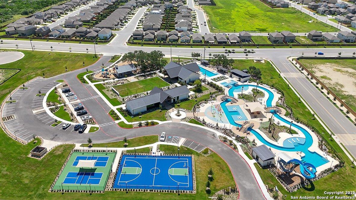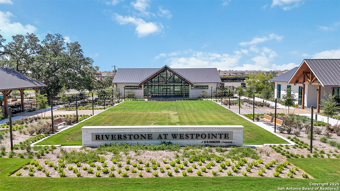Step inside The Salerno floor plan, a two-story home featured at Riverstone at Westpointe in San Antonio, TX. Featuring 2 classic front exteriors, 5 bedrooms, 3.5 bathrooms and a 2-car garage, this floor plan is sure to turn heads! The Salerno offers 2861 square feet of comfortable living and includes a dining area that is open to the floor above located right off the foyer. Continue down the entry hallway to find an open concept plan with the kitchen flowing into a breakfast nook and spacious living room. The kitchen includes gorgeous quartz countertops, a natural gas cooking range, stainless steel appliances, shaker style cabientry and a spacious corner pantry with plenty of shelving. A large kitchen island with a deep, single basin sink overlooks the living room. Your private main bedroom is located at the back of the house and features quality carpet flooring, a ceiling fan and an attractive attached bathroom with dual vanity sinks, a private water closet for the toilet, a relaxing walk-in shower and a spacious walk-in closet, perfect for getting ready in the morning. A wide, inviting staircase leads to your spacious game room and all of your secondary bedrooms which are conveniently separated by jack-and-jill bathrooms. Whether these rooms are used as bedrooms, offices, or other bonus spaces, you will find comfort with quality carpets, large windows, and walk-in closets. Head back downstairs and out the back door to find a spacious covered patio (per plan) overlooking a professionally landscaped and irrigated yard complete with Bermuda sod. Additional features include tall 9-foot ceilings, 2-inch faux wood blinds throughout the home, pre-plumb for water softener loop, hard surface flooring at the entry, downstairs, halls, living room, kitchen, and dining/breakfast area, and tile in all bathrooms and utility room. You'll enjoy added security in your new DR Horton home with our Home is Connected features. Using one central hub that talks to all the devices in your home, you can control the lights, thermostat and locks, all from your cellular device.