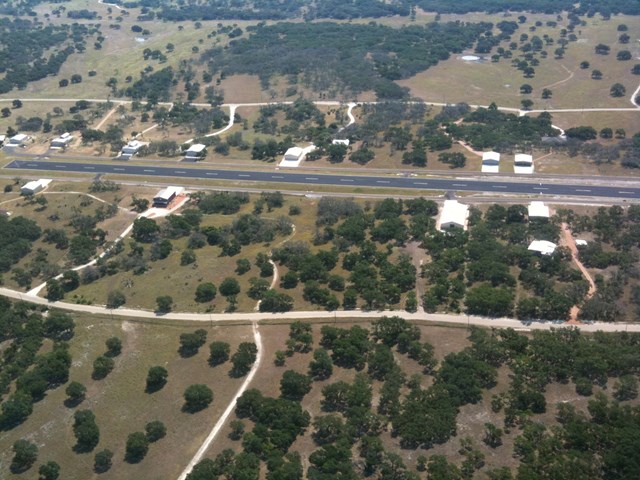 SILVER WINGS FLY-IN RANCH. Nice 40 acre pasture land heavy grass & tree cover. Mostly Live Oaks & Post Oaks. Level-to-gently rolling Hill Country land. Gated community-aviation air-park. 1600 square foot minimum restriction for homes. This is an upscale gated rural aviation community of like-minded pilots. High plateau setting in the Pedernales River valley. Neat Fly-in/out country air-park. Central water system. Property perimeter fenced - north line is 4' ranch fencing - west, south, east lines high game fenced. There are approximately a dozen existing homes on the airport. 3800' x 80' lighted paved runway / parallel taxiways. This tract does not have runway access - a dedicated taxiway lot is included. This is a well thought-out and well developed aviation ranchette. All roads paved.