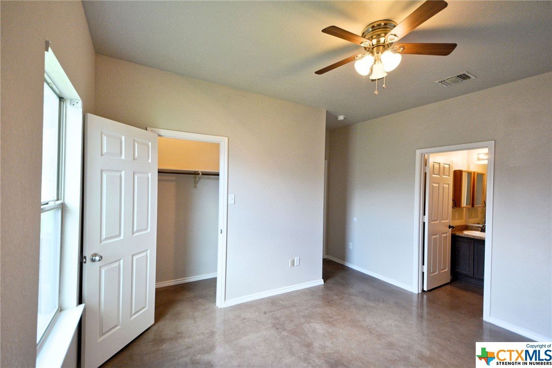 1/2 Off One Month's Rent!! Available ASAP!! Charming 3 bedroom, 2 bathroom duplex. This home features an open floor plan with stained concrete flooring throughout (NO CARPET!!) The kitchen was recently updated with stylish shaker cabinets and stainless steel appliances. The primary suite has a walkin closet, ceiling fan, private bathroom with a tall shower and built-in shelving. This home also has a split bedroom concept so the guest bedrooms are separate from the primary suite and equipped with ceiling fans too! Step outside to a spacious backyard with a back privacy fence and a storage shed. The home is a stone's throw away from the brand new library and conveniently located near IH 35, making for an easy commute to both San Antonio and Austin. Don’t miss this opportunity to live and work in New Braunfels! *3x income vs rent, $25 pet rent under 29lbs and $50 pet rent over 30lbs.