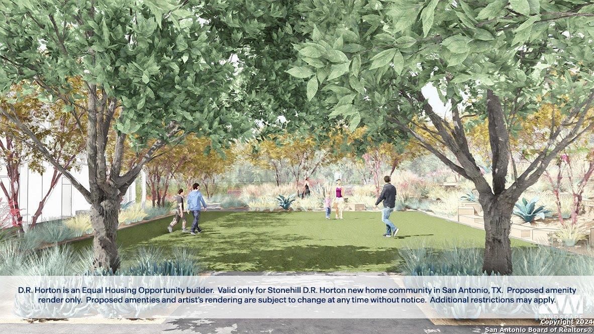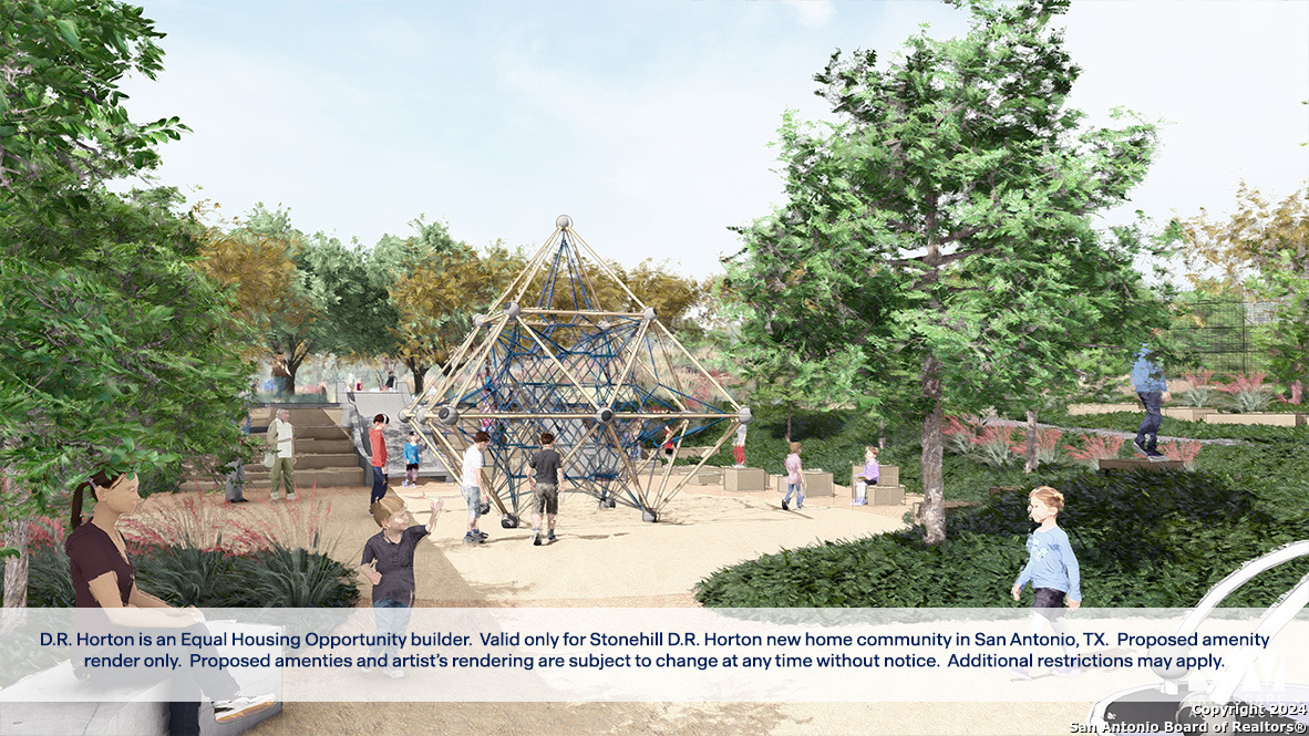 Step into The Grace floor plan at Stonehill in San Antonio, TX. This home showcases 2 classic front exteriors, full yard landscaping and irrigation and a 2-car garage. Inside this 4 bedroom, 2.5 bathroom home, you will find 1952 square feet of living space designed to meet your needs. The arched front patio opens to a grand foyer which then leads to a spacious living room. The living room blends seamlessly into the kitchen and dining area in an open concept floorplan. Your kitchen is built for the ultimate home chef and offers granite counter tops, stainless steel appliances, and a kitchen island overlooking the living room. Don't forget a deep, single basin kitchen sink for convenience and ease. The staircase leads to the upstairs main bedroom suite, all secondary bedrooms, and your utility room. The Grace floor plan is ideal if you want to keep your entertaining space and private space separate. The upstairs main bedroom has an attached bathroom that includes a tiled walk-in shower, separate water closet and plenty of storage space with built-in shelving and a grand walk-in closet. Additional features of this home include sheet vinyl flooring in the entry, living room, and all wet areas, granite countertops in all bathrooms and our HOME IS CONNECTED base package. Using one central hub that talks to all the devices in your home, you can control the lights, thermostat and locks, all from your cellular device.