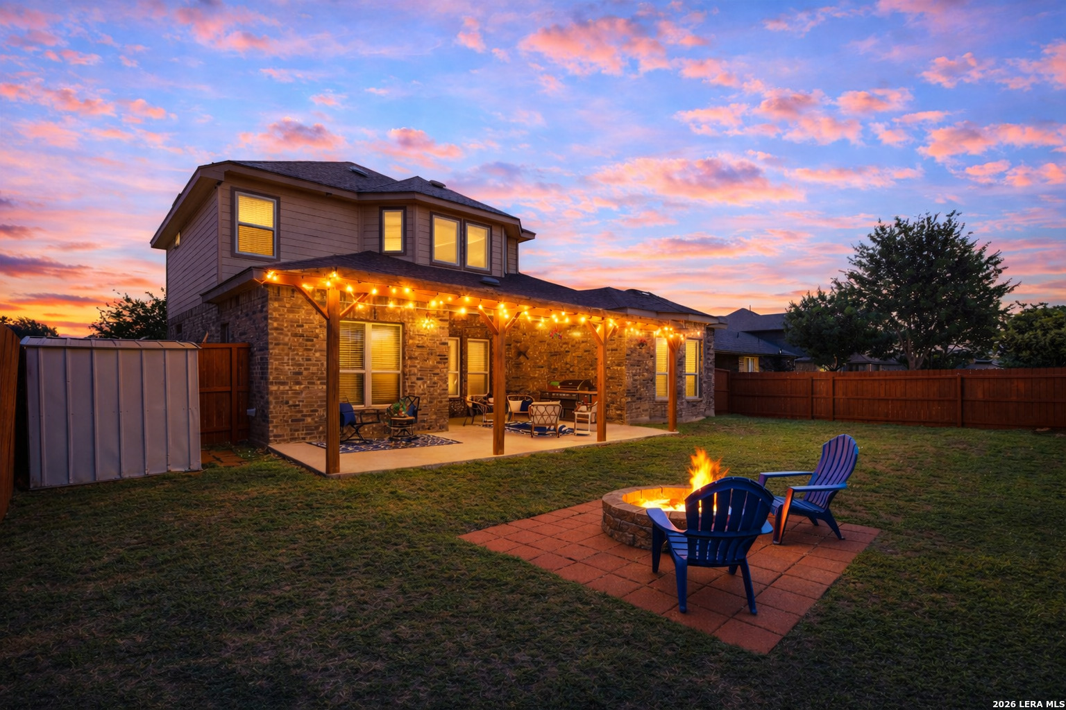 Welcome to this beautifully refreshed Tuscan-inspired home featuring soaring ceilings and grand open living spaces designed for comfortable living and effortless entertaining. The flexible floor plan includes a first-floor primary suite plus an additional first-floor bedroom with ensuite, perfect for guests, a home office, nursery, or multigenerational living. The spacious kitchen offers gas cooking, ample prep space, and opens to the main living area, creating the ideal setting for gatherings. Recent exterior refreshes include exterior paint, newly painted privacy fence, and expanded covered patio with pergola provides the perfect place to relax or entertain while watching the big game outdoors under the starry Texas sky. Enjoy neighborhood amenities including several community pools, scenic pond, and playgrounds, adding to the lifestyle this home offers. This home combines architectural charm, functional living spaces, and highly rated schools you have been searching for in the sought after 78254 area.