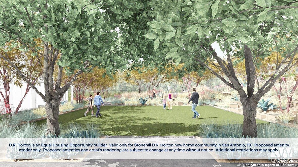 The Barton is a charming one-story home featured at Stonehill in San Antonio, TX. Featuring 2 classic front exteriors, this 3 bedroom, 2 bathroom home also offers 1281 square feet of living space and a 2-car garage. A front porch (per plan) welcomes you into the home and opens to the gourmet kitchen which includes quartz counter tops, quality cabinets, stainless steel appliances and an open concept floorplan with the kitchen flowing seamlessly into the dining room and living room. The main bedroom has an attractive ensuite bathroom that features a quartz vanity countertop and quality cabinetry. Enjoy additional storage with a spacious walk-in closet located off of the primary bathroom. Your secondary bedrooms all feature quality carpet flooring and a closet, and can be used as bedrooms, offices, work out spaces or other bonus rooms. The possibilities are endless with The Barton floor plan. Additional features include sheet vinyl flooring in entry, living room, and all wet areas, quartz counter tops in all bathrooms and HOME IS CONNECTED base package. Using one central hub that talks to all the devices in your home, you can control the lights, thermostat and locks, all from your cellular device.