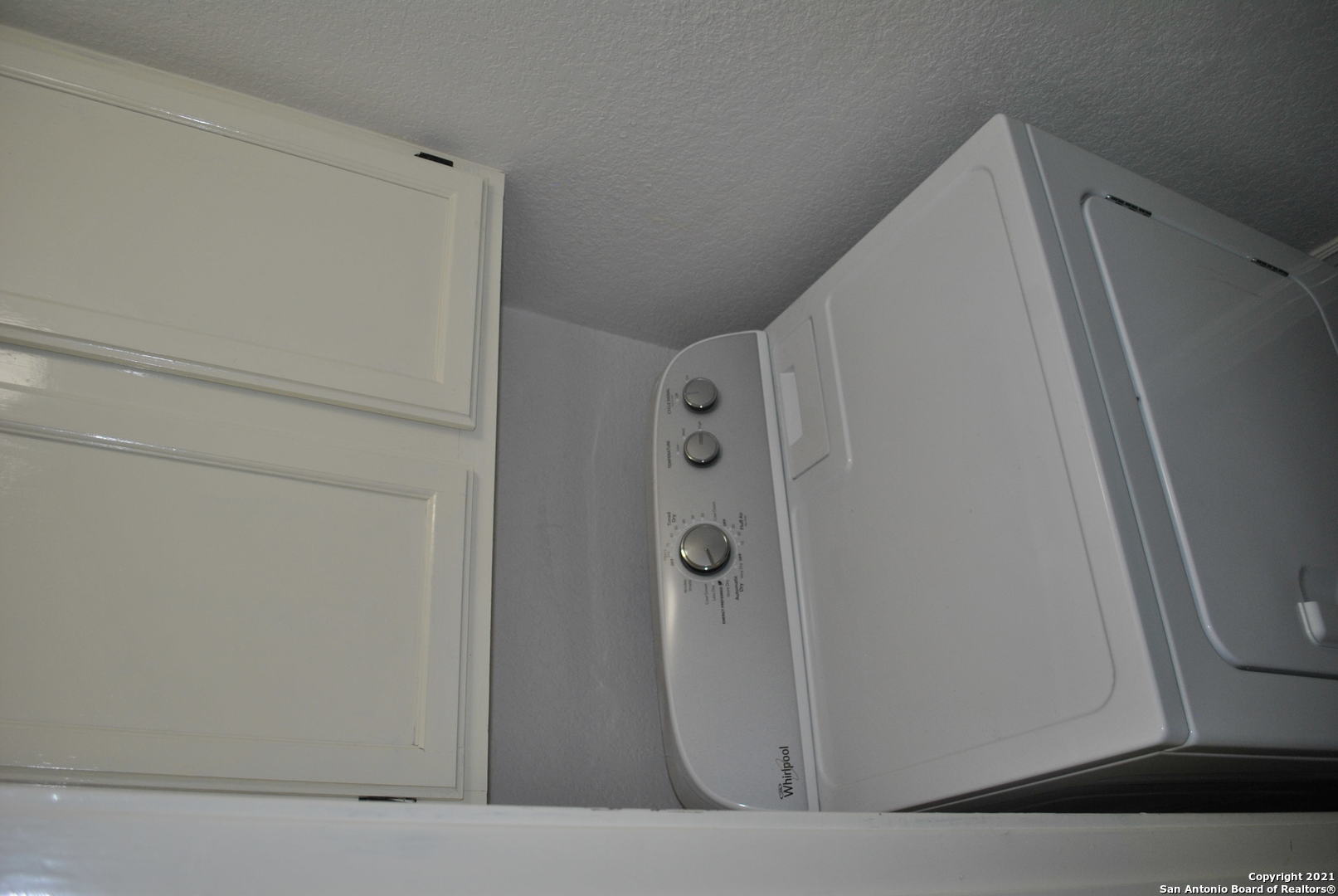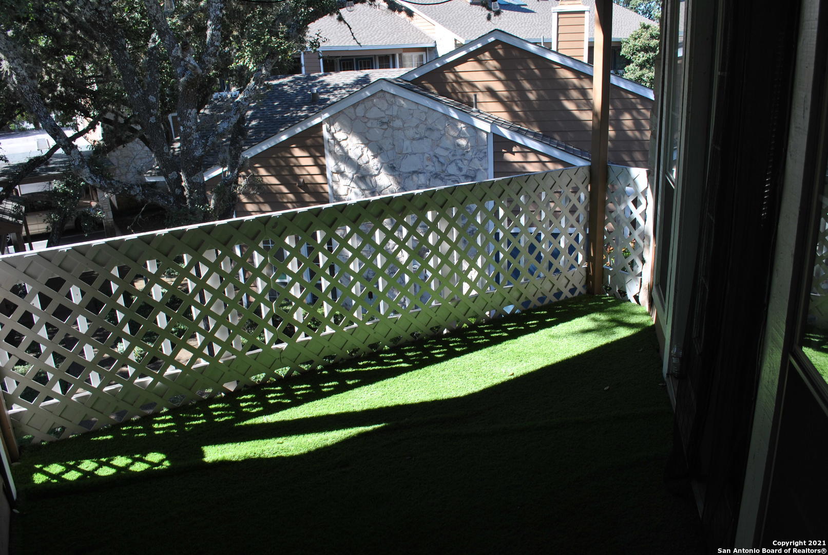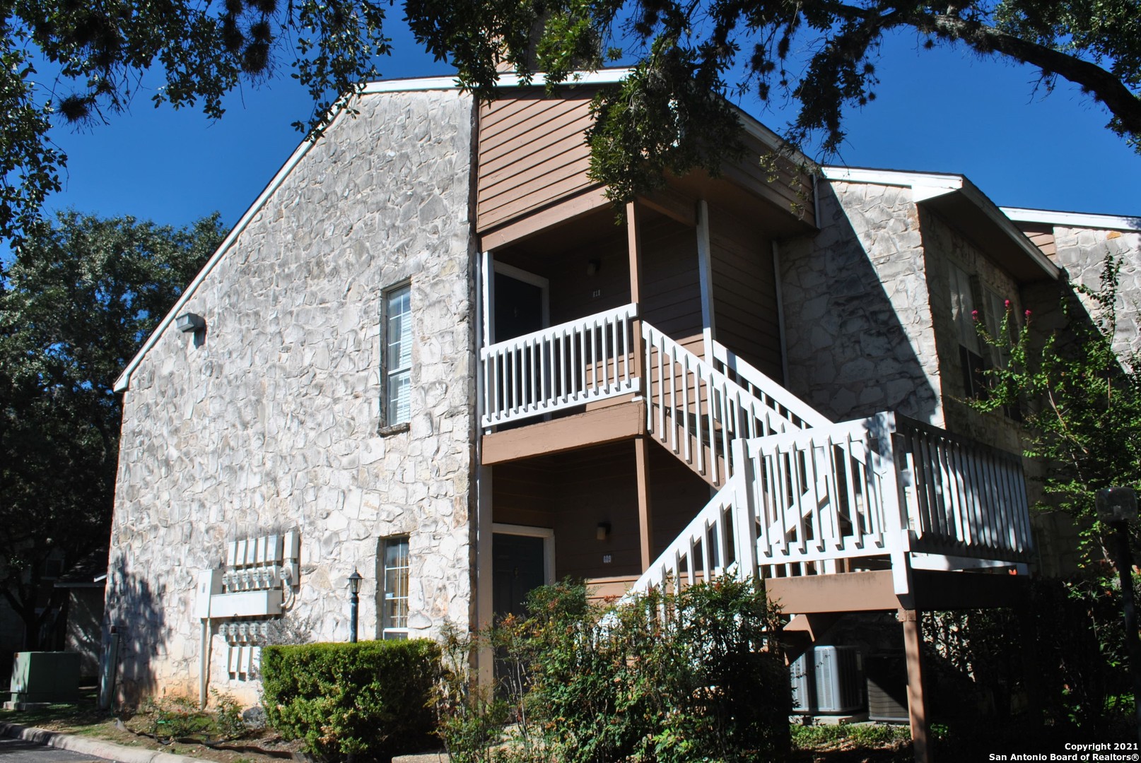 Comfortable 1 bedroom 1 bath end unit on the second floor. Wood burning fireplace in living room with skylights in the tall ceiling. Oversized balcony overlooks the pool area and has additional storage. Bedroom has 2 walk in closets. Pets on case by case basis under 25lbs. Rent includes condominium fees and use of common areas and pool. Close to UTSA, new HEB and LaCantera Mall.