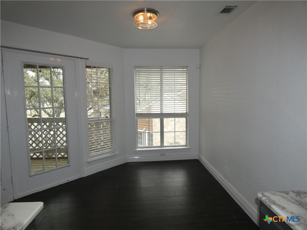 Quiet complex. Comfortable 1 bedroom end unit condominium with cozy wood burning fireplace in living room and sky lights for plenty of natural light. bedroom has 2 large walk-in closets. Oversized covered balcony with storage closet overlooking community clubhouse and pool area. Assigned carport. Conveniently located near the ne HEB on Babcock/1604, La Cantera Mall and UTSA.