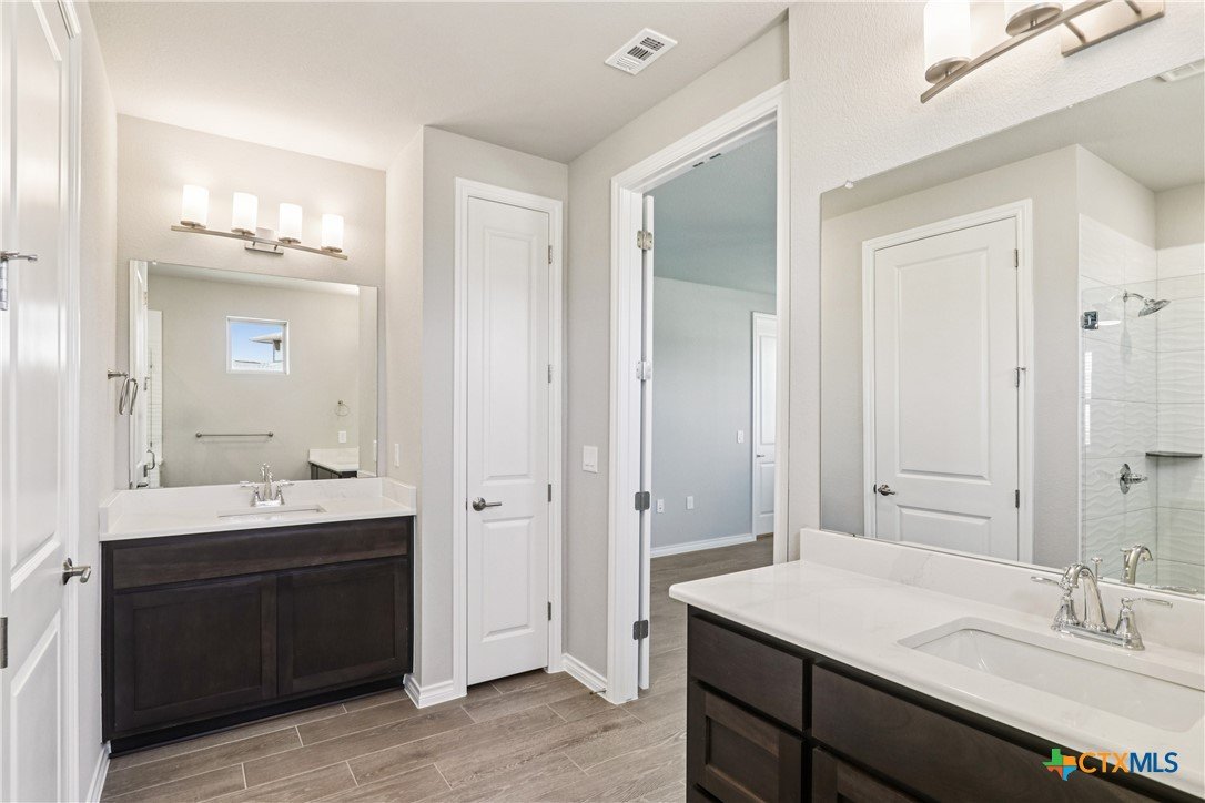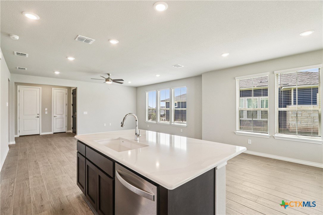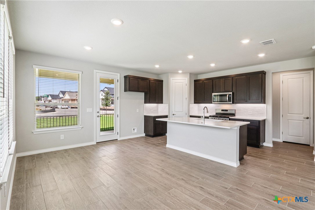 Whitworth plan with upgraded PEBBLE flooring, quartz countertops, 8' doors throughout, optional 2 car side entry garage, Express cordless blinds