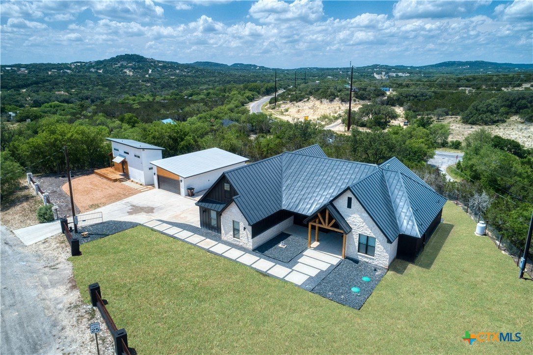 Water level low, market slow - the perfect time to buy the Lakehouse you have dreamed of! Appraised at $893,000 (appraisal available upon request) with peek a boo views of lake once water levels return. Farmhouse style haven, perfectly situated on .72 acres with HOA lakefront access to Medina Lake. Step inside to find stunning finish outs that showcase attention to detail throughout and features beautiful accents, high ceilings, Cafe' appliances, and large windows that flood the home with natural light. The 490 sq ft guest cottage adds additional accommodations for larger gatherings with wrapped deck and gorgeous views. Detached garage and workshop area is the perfect space for hobbies, storage or creative projects. Enjoy the slower pace of life in this lakefront community and own a piece of paradise just off Lake Medina!