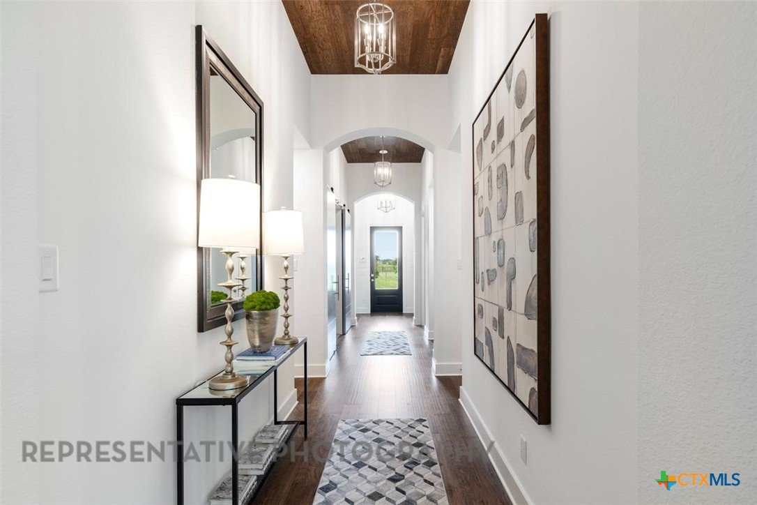 Welcome to 148 Pigeon River Road — a beautifully designed Highland Home located in the highly sought-after 6 Creeks at Waterridge community. This stunning one-story home offers the perfect blend of luxury, comfort, and functionality, all set within one of Kyle’s premier master-planned neighborhoods. Step inside to an open-concept layout filled with natural light, soaring ceilings, and thoughtfully selected designer finishes throughout. The spacious kitchen features an oversized island, stainless appliances, elegant cabinetry, and generous storage—ideal for everyday living and entertaining. The family room flows seamlessly to the dining area and outdoor living space, creating an inviting atmosphere for gatherings. The private primary suite is a true retreat, complete with a spa-inspired bathroom and a large walk-in closet. Additional bedrooms are well positioned for privacy, offering ample space for everyone. Enjoy the extended outdoor living area overlooking a beautifully maintained backyard—perfect for morning coffee, grilling, or simply relaxing. Located in 6 Creeks at Waterridge, residents enjoy scenic trails, green space, a future amenity center, and easy access to top-rated Hays schools, shopping, dining, and major commuter routes.