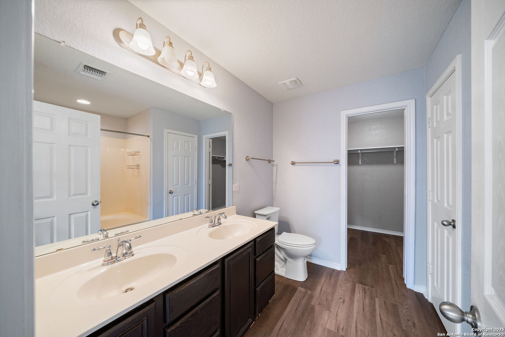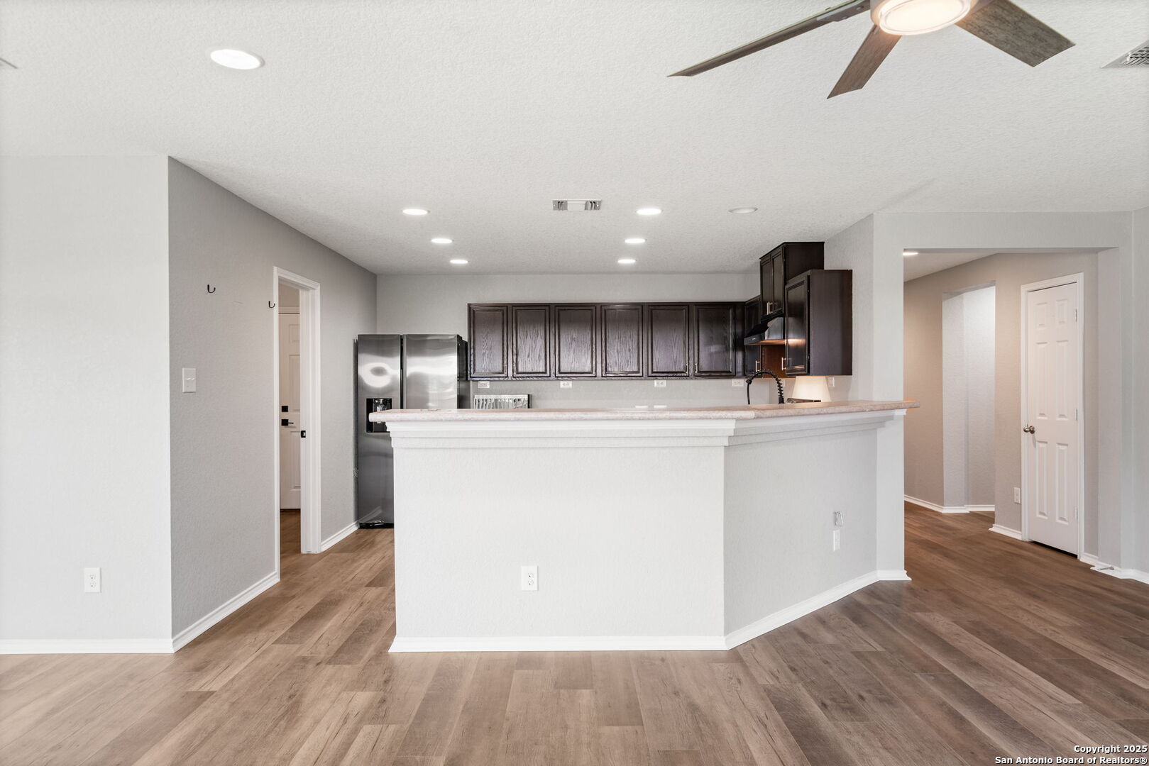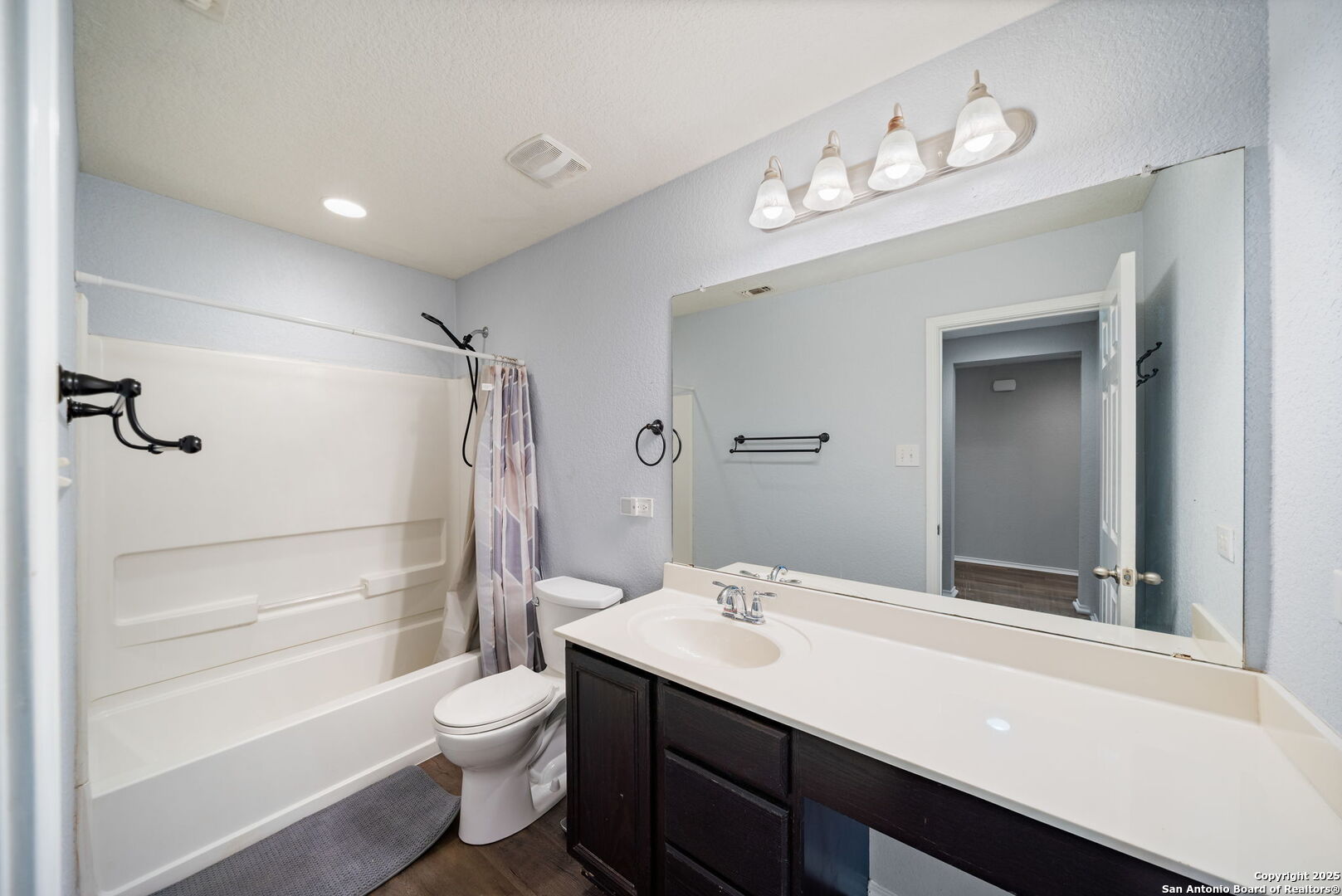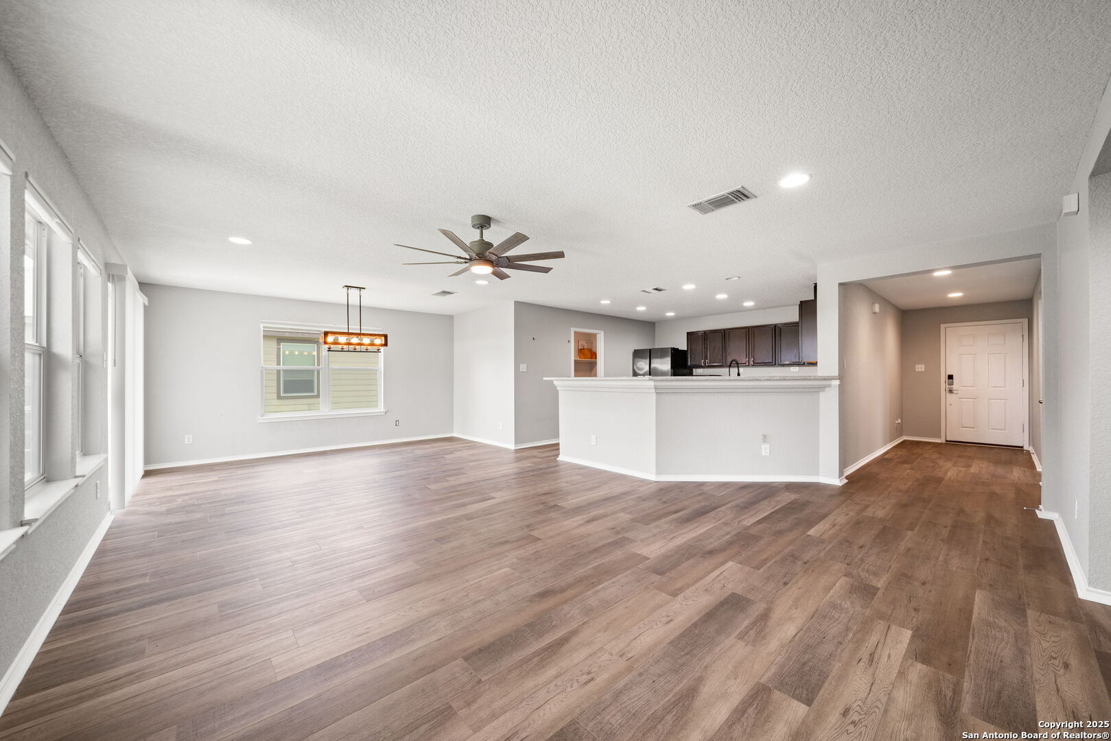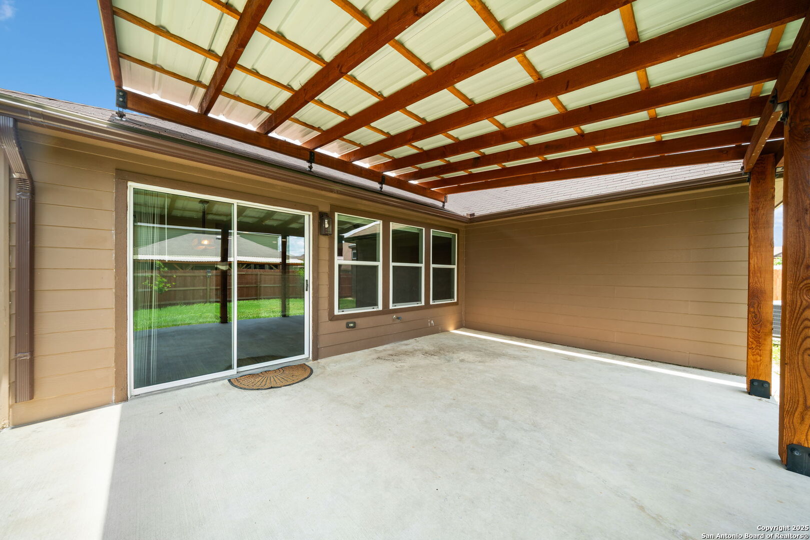 Well-maintained one-story home featuring 3 spacious bedrooms and 2 full bathrooms. The open floor plan offers a bright and inviting living area that flows into the dining space and kitchen. The kitchen is equipped with modern appliances, a breakfast bar, and a large walk-in pantry providing plenty of storage and functionality. The primary suite features a generous walk-in closet and an ensuite bathroom with dual vanities and a tub/shower combo. Secondary bedrooms are well-sized and share a full hallway bath. The large backyard is perfect for outdoor entertaining and includes a detached office space ideal for remote work or a creative studio. Home is also equipped with solar panels for energy efficiency. Conveniently located Hwy 46 Near New Braunfels. Minutes from Lake Dunlap
