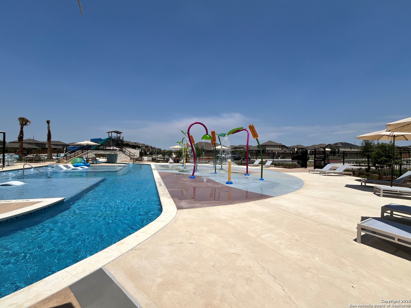 Introducing The Stallion, a two-story home featured at Riverstone at Westpointe in San Antonio, TX. This floor plan offers 3 classic front exteriors, a 2-car garage and a fully yard landscaping package, ensuring that your home looks its best every single day. Inside this 4 bedroom, 3.5 bath home, you'll find 3284 square feet of open-concept living. The first floor offers a welcoming entry way that opens to a secluded study room adjacent to a stunning formal dining room. A private hallway off the entry connects a powder bath and utility room, both with tile floors. A spacious eat-in kitchen and breakfast nook are located past the dining room and feature stainless steel appliances, beautiful quartz countertops, a natural gas cooking range and a kitchen island with a breakfast bar and roomy, single basin sink. Your kitchen flows seamlessly into your breakfast nook and a living room with large windows and natural light. The private, main bedroom suite is an oasis, featuring large windows, carpet flooring, a ceiling fan and an attached ensuite bathroom. Enjoy dual vanity sinks, a private room for the toilet, a tiled walk-in shower and a walk-in closet with plenty of space! The second floor opens to a game room with plenty of natural light and space to play. Your secondary bedrooms are located upstairs as well and all feature walk-in closets. Bedroom 2 even has its own ensuite bathroom and is perfect for out-of-town guests in need of added privacy. A standout feature of The Stallion is the media room, located off the game room and provides plenty of entertainment space for television or movie lovers. Additional features include tall 9-foot ceilings, 2-inch faux wood blinds throughout the home, pre-plumb for water softener loop, hard surface flooring at the entry, downstairs, halls, living room, kitchen, and dining/breakfast area, and more! You'll enjoy added security in your new DR Horton home with our Home is Connected features. Using one central hub that talks to all the devices in your home, you can control the lights, thermostat and locks, all from your cellular device.