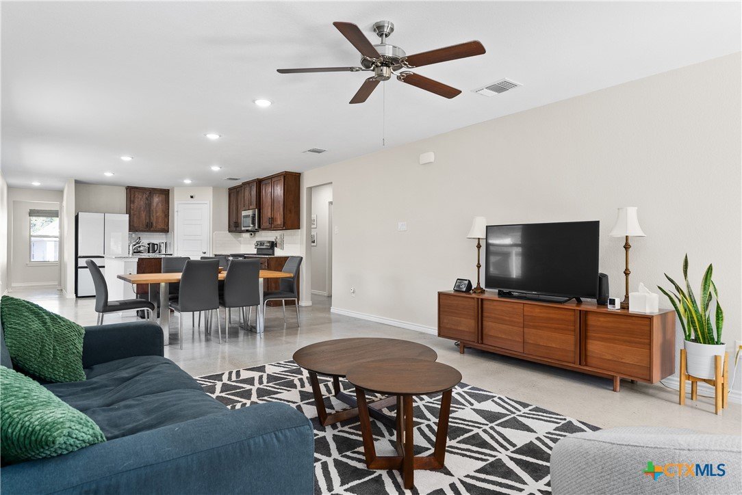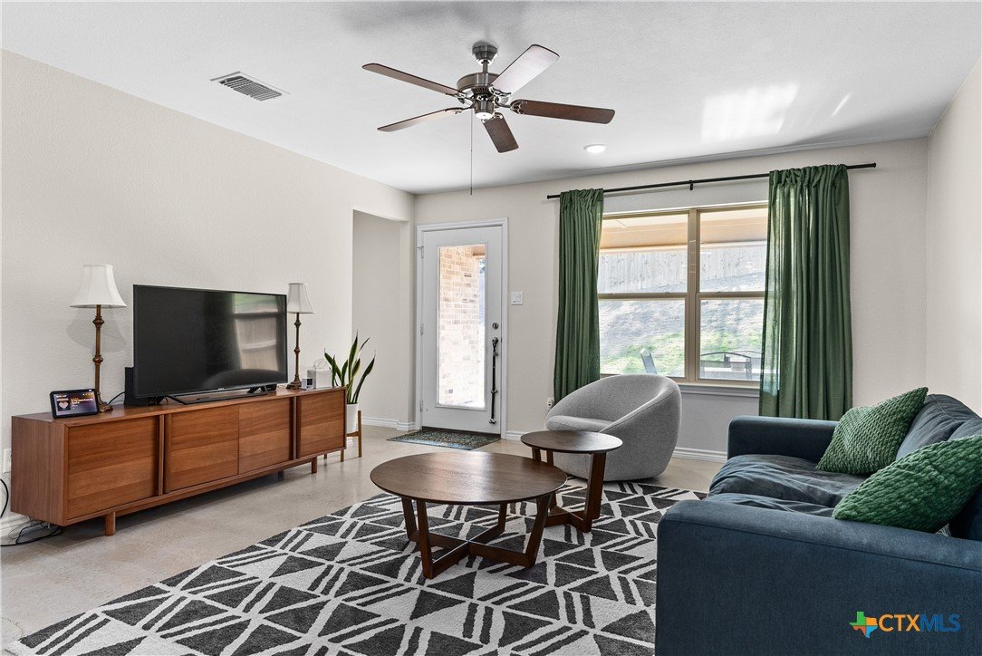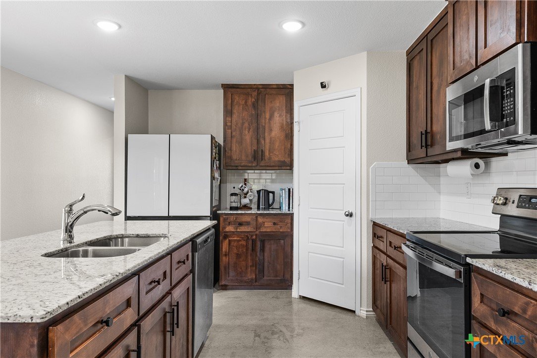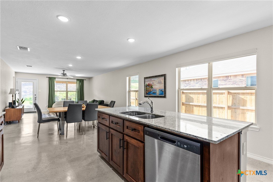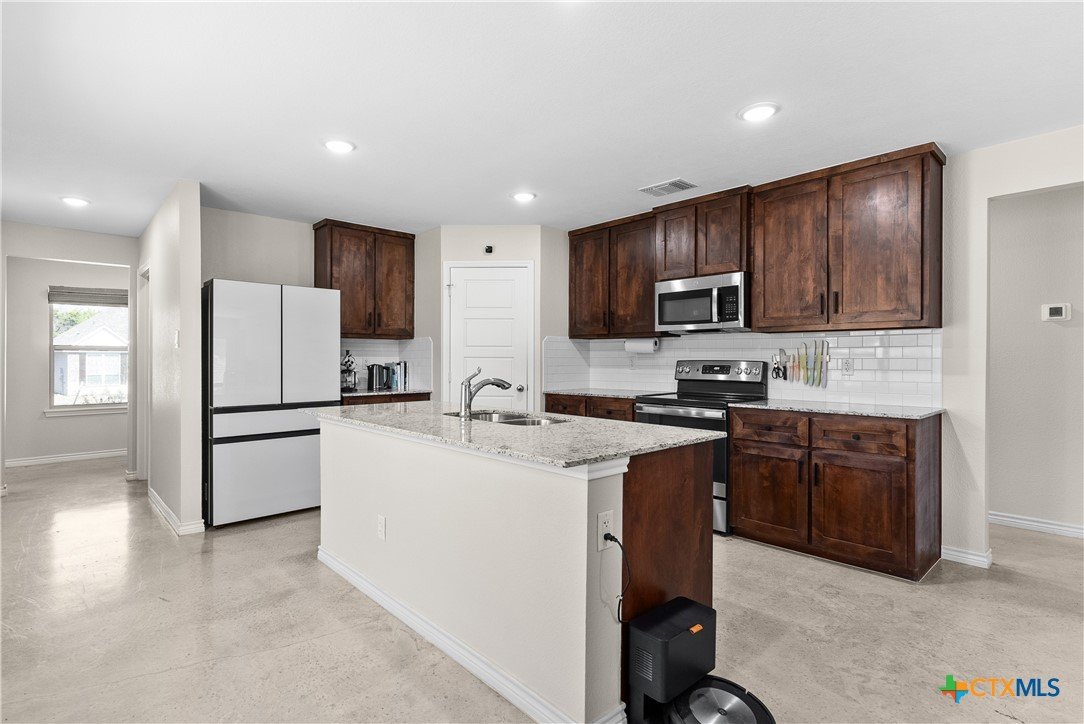 Welcome to this Stunning 4-Bedroom, 2.5 bath Home in Copperas Cove – Prime Location! Nestled in a family-friendly neighborhood, this home is just a short walk from top-rated schools and scenic parks. Step inside to discover sleek floors throughout, combining durability with modern style. The spacious open-concept layout is perfect for entertaining, featuring a beautifully designed kitchen with a huge center island, quartz countertops, stainless steel appliances, and a massive walk-in pantry. Rich wood cabinetry adds warmth and elegance to the space. The primary suite is a true retreat, boasting a generous walk-in closet, double vanity, and a luxurious walk-in shower. Outside, the large covered patio provides the perfect spot for gatherings, overlooking a private, oversized backyard, ideal for cozy evenings under the stars. Come see for yourself!