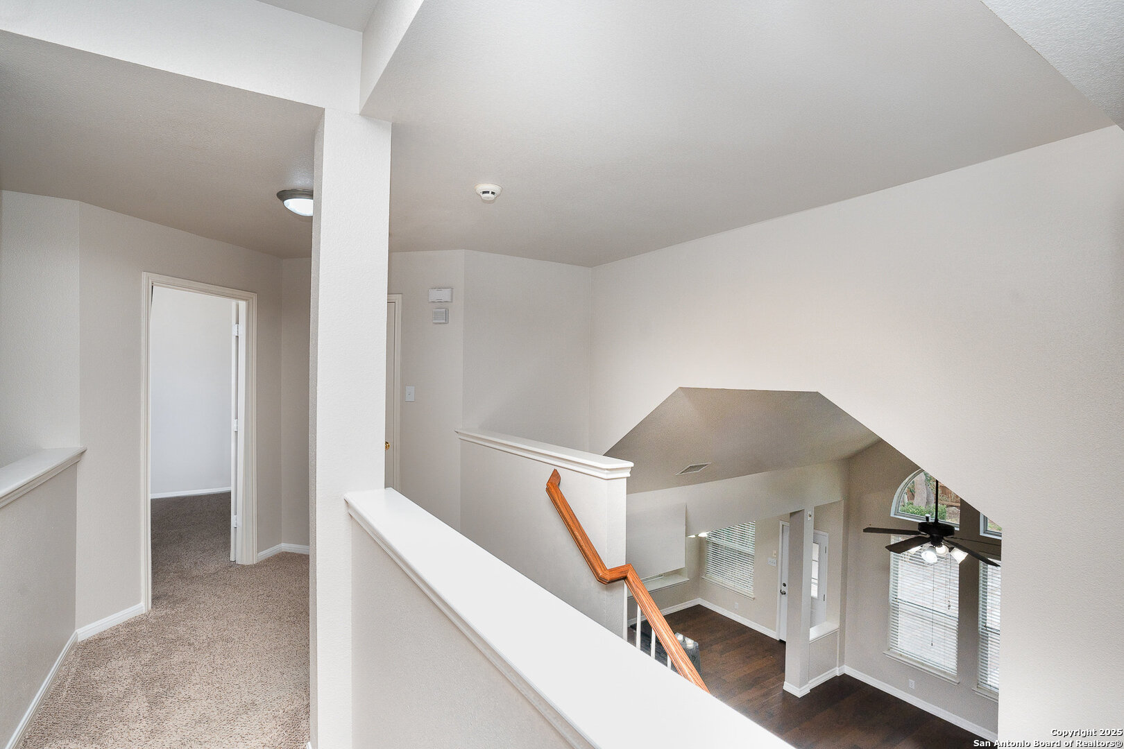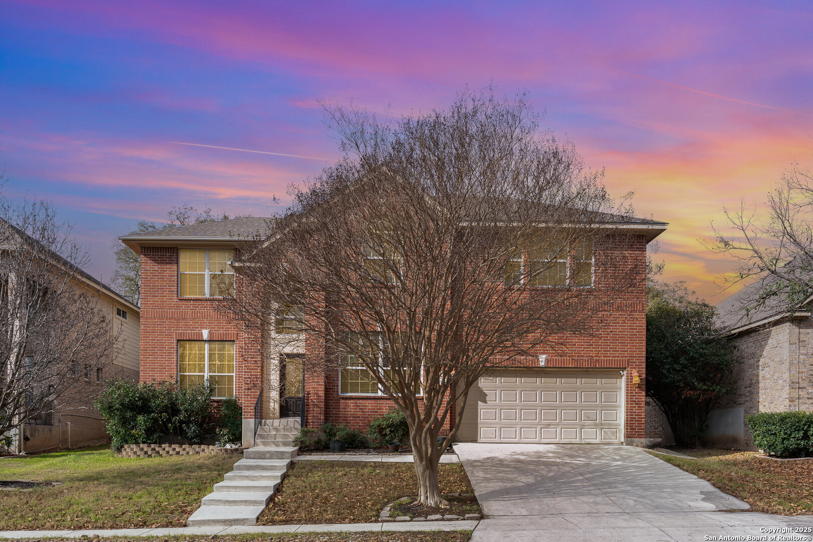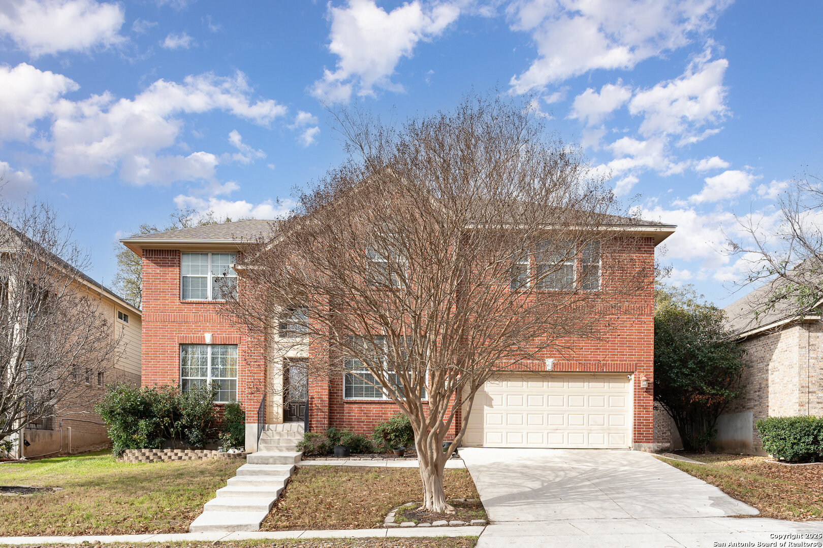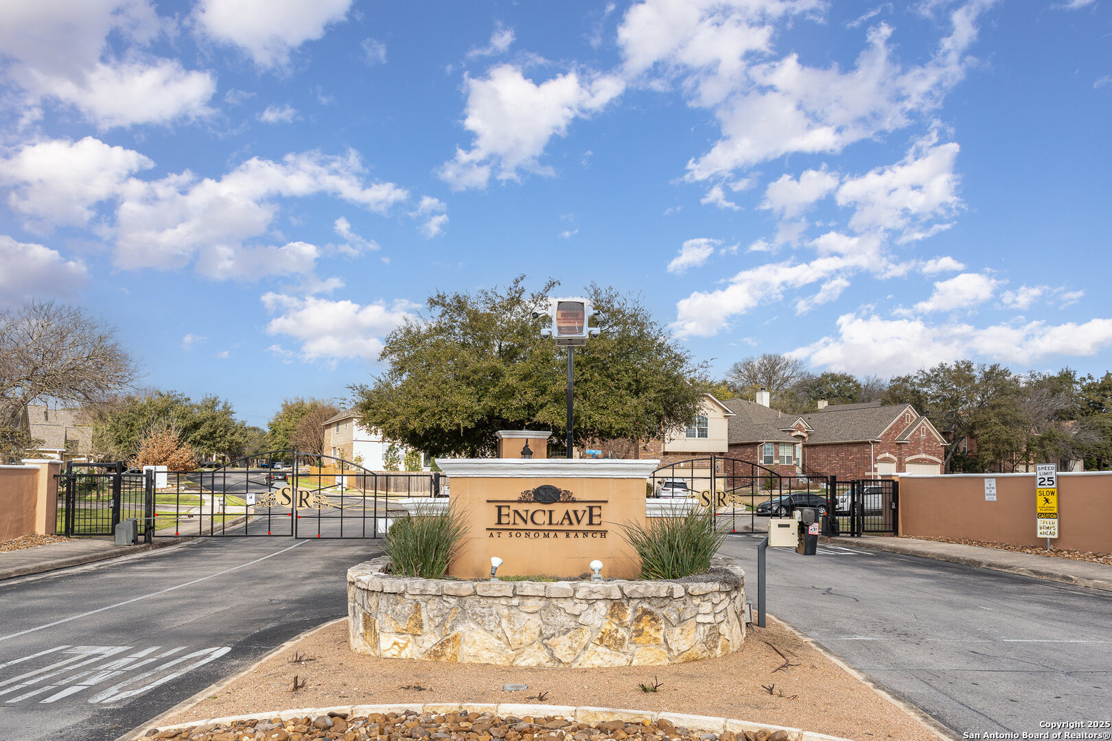 Welcome to this gorgeous immaculately maintained 4-bedroom, 2.5-bath home in the coveted gated community of Enclave at Sonoma Ranch. The brick exterior exudes classic elegance, complemented by mature trees. The open-concept design features two living areas, a formal dining room, a flex space perfect as an office and a stylish eat-in kitchen with an island and recently updated with a LG stainless steel appliance package . The soaring vaulted ceilings and fireplace in the main living area create an inviting space to unwind. The oversized first-floor master suite provides a private retreat, complete with separate tub and shower with a seating area and a large walk-in closet that would get any closet connoisseur excited! Upstairs, you'll find a spacious game room and three generously sized bedrooms and a double vanity bathroom. The backyard is a true oasis, featuring mature trees and ample space for outdoor gatherings. Beyond the grand feel of the home, the community offers a first class amenity center complete with multiple pools, clubhouse, basketball court, tennis court, volleyball court and Mini-Golf area. Perfect for families to connect and enjoy. Experience the charm, comfort, and luxury of this remarkable home and community. Located in the heart of Helotes, this home is close to top-rated public and private schools, shopping, and dining. If you're looking for your forever home, congratulations, you've found it!