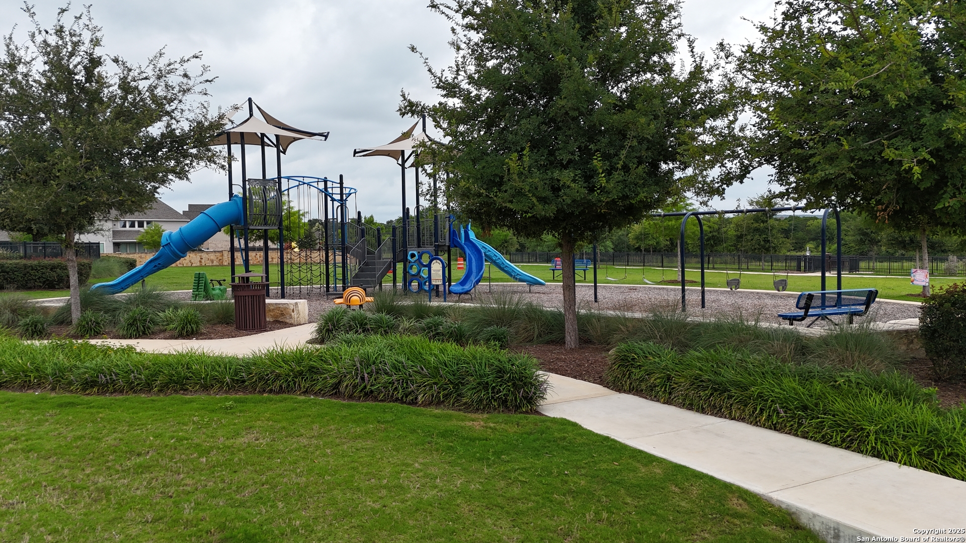 Welcome to the best-priced luxury Perry Home in the highly sought-after Kallison Ranch community! This beautifully maintained, move-in-ready property offers exceptional value and premium features, all just steps away from top-rated schools and major conveniences. This home is zoned for and walking distance to the football powerhouse, Harlan High School, and just a short walk to Henderson Elementary. Your daily routine just got easier and more enjoyable! Inside, you'll find tile flooring throughout, including in the spacious primary bedroom for a clean, modern look and easy maintenance. The freshly painted interior provides a crisp, updated feel, ready for your personal touch. Eco-conscious and energy-efficient, this home comes with fully paid-off solar panels at closing and a tankless water heater, helping you save on monthly utilities from day one. Location is key-this home offers quick access to Highway 211, while the ongoing Culebra Road expansion promises smoother commutes with minimal traffic soon. Plus, a brand-new H-E-B is under construction just 5 minutes away, adding even more convenience to your daily life. Don't miss this rare opportunity to own a luxury home in a top-tier neighborhood at an incredible value! Schedule your showing today