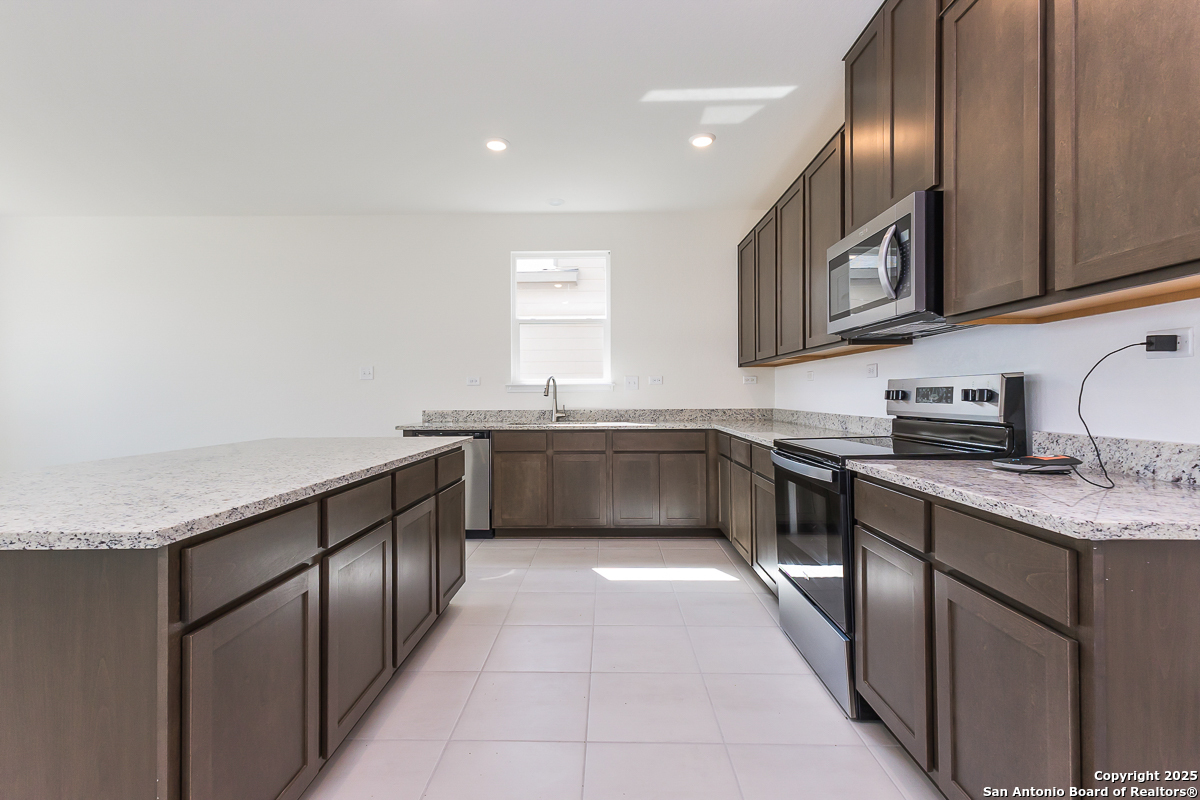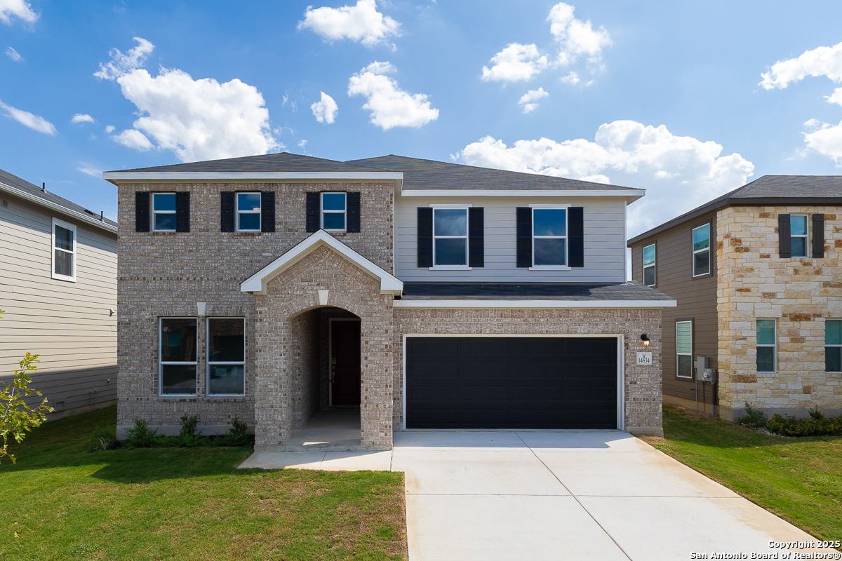 This stunning home features 9-ft. first-floor ceilings, creating a bright and airy ambiance. The modern kitchen is equipped with Whirlpool stainless steel appliances, Woodmont Dakota Shaker panel 42-in. upper cabinets, an extended breakfast bar, and a sleek Moen high arc faucet. The primary bath offers upgraded cabinets and a spacious 42-in. shower with a Daltile tile surround for a spa-like retreat. Elegant touches include a Carrara-style entry door, Kwikset Polo knob interior hardware, and stylish Stella Vista ceramic tile flooring in the great room and kitchen. A wireless security system provides added peace of mind, while an automatic sprinkler system keeps the outdoor space lush. Don't miss this exceptional home!