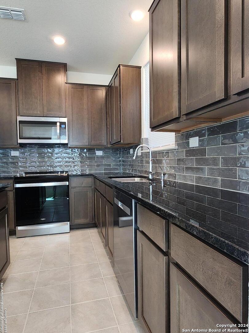 Move in Ready - New Home ! This 4 bedroom 2.5 bath located in the Villas @ Presidio subdivision features high ceilings with plenty of recessed lighting throughout. The kitchen offers stainless steel appliances to include a new stainless steel refrigerator, granite countertops, kitchen bar that overlooks the living room and a tile backsplash. With a half bath main floor and a large office that can be used as an additional bedroom. Walk up stairs to the oversized game room, perfect for those movie nights. The