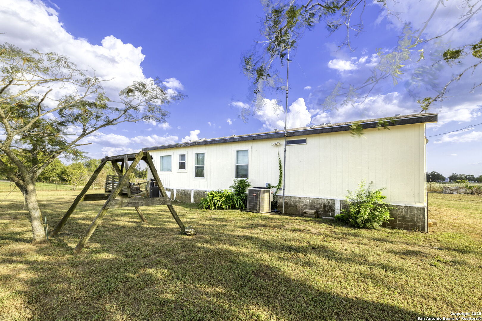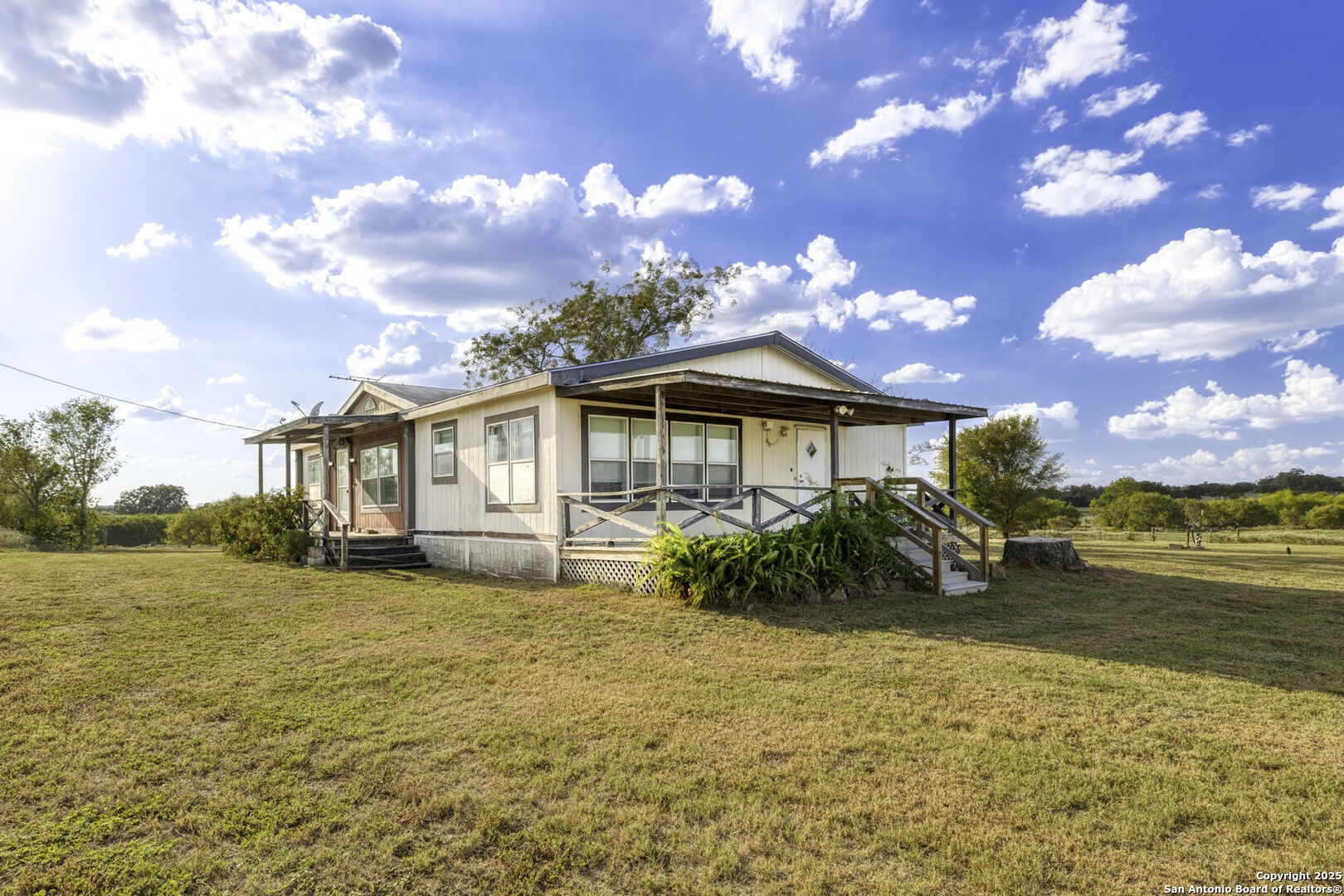 This exceptional 61.9-acre farm on FM 1322 offers endless possibilities and is perfectly suited for country living, farming, and recreational activities. The property has an agricultural exemption in place for low taxes and approximately 700 feet of road frontage with an Aqua Water line conveniently located at the road. Just 12 minutes from I-10 and 20 minutes from Lockhart, this property provides both accessibility and tranquility. The land is thoughtfully improved, with the front section cleared, level, and completely outside the flood plain. Current owners get several cuts a year depending on rainfall. Gorgeous 40+ foot live oaks and mesquite trees stud the back of the property, while a tank/pond offers an ideal setting for fishing or watering livestock. Abundant wildlife, including deer, turkey, and dove, makes this a hunter's paradise. Improvements include a 40x20 enclosed workshop on a slab with electricity, a carport, and additional storage sheds. The property is fully fenced and cross-fenced, ready for livestock or farming operations. A 3-bedroom, 2-bathroom manufactured double-wide is move in ready--allowing you to make it your own country retreat. It has an open floor plan and two decks to enjoy. Whether you're seeking a working farm, recreational retreat, or peaceful rural homestead, this property delivers unmatched potential in a quiet and picturesque setting.