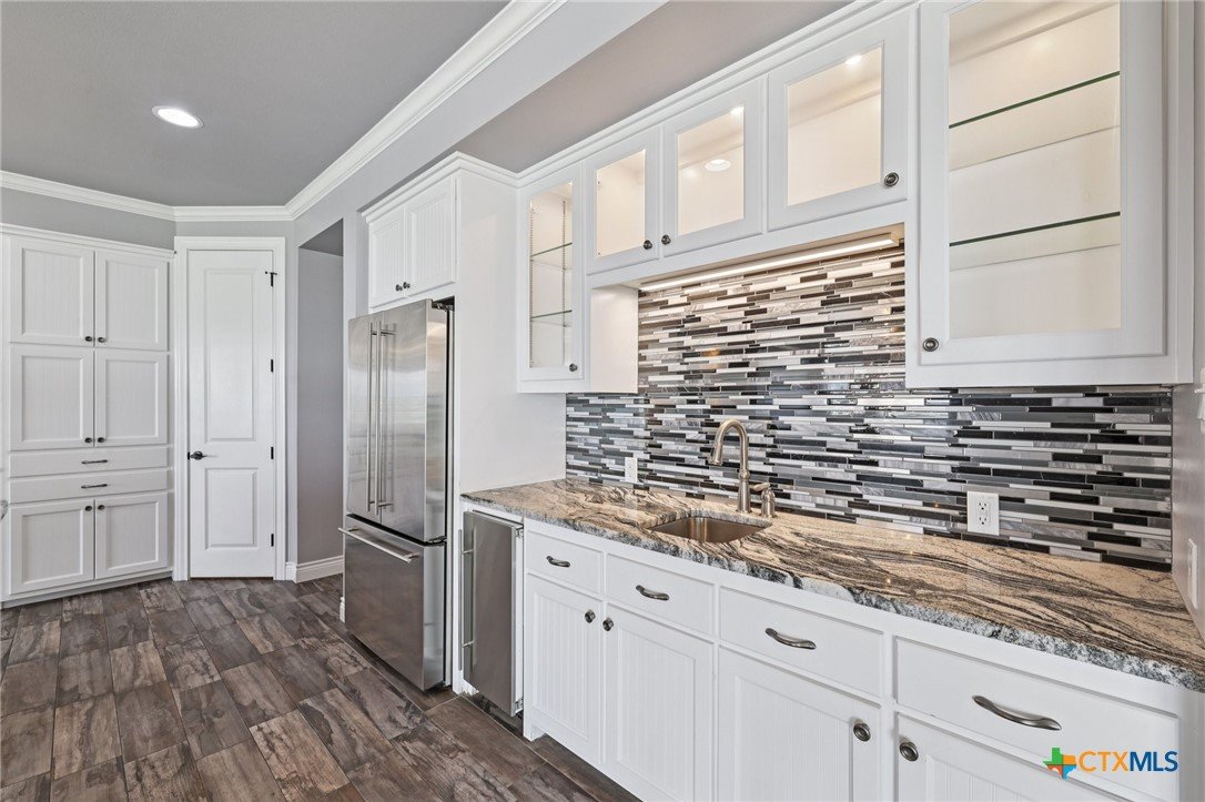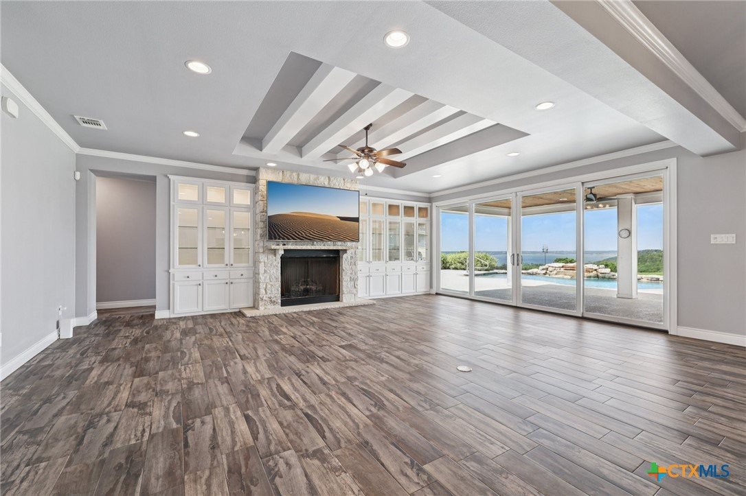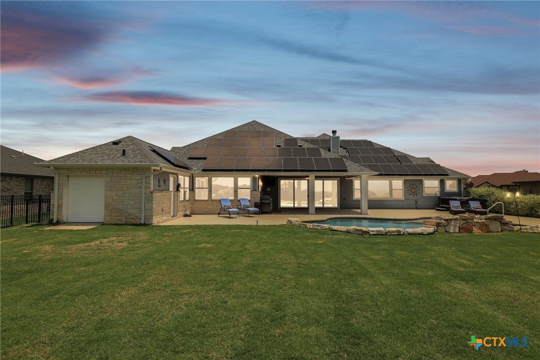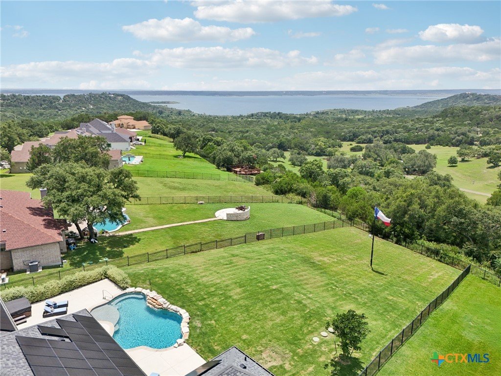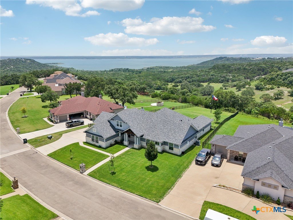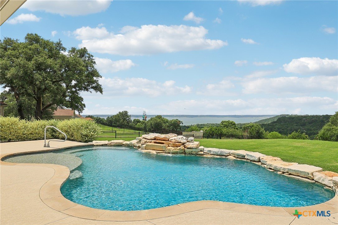 Welcome to your dream home, an exceptional luxury retreat offering stunning panoramic views of Stillhouse Hollow Lake from nearly every room. This elegantly designed home features a spacious living area with floor-to-ceiling windows, custom built-ins, and a beamed ceiling that creates a warm, yet sophisticated atmosphere. The chef’s kitchen is a culinary masterpiece, complete with a 6-burner gas stove, stainless steel appliances, prep sink, wet bar, and ample counter space for entertaining. Unwind in the serene primary suite, where you'll wake up to breathtaking lake views each morning. Step outside into your own private backyard oasis, featuring a sparkling pool with a waterfall, an outdoor kitchen, and a convenient poolside half bath, an entertainer’s dream. Additional highlights include a dedicated pool storage room, solar panels, a safe room, and an automatic attic elevator for effortless storage access to the 1500 square foot, decked and foam insulated attic. New carpet, and paint throughout the home, as well as new pool decking all in 2025. Neighborhood amenities include hike and bike trails, park, and sport court. Perfectly located just 3 miles from the boat launch and lake picnic area, and only 7 miles from the vibrant charm of downtown Belton, where you’ll find famous BBQ spots, live music venues, boutique shops, and more. This exceptional home combines luxury, comfort, and thoughtful design with unbeatable views and amenities. Don’t miss your chance to own this one-of-a kind lakeview sanctuary.