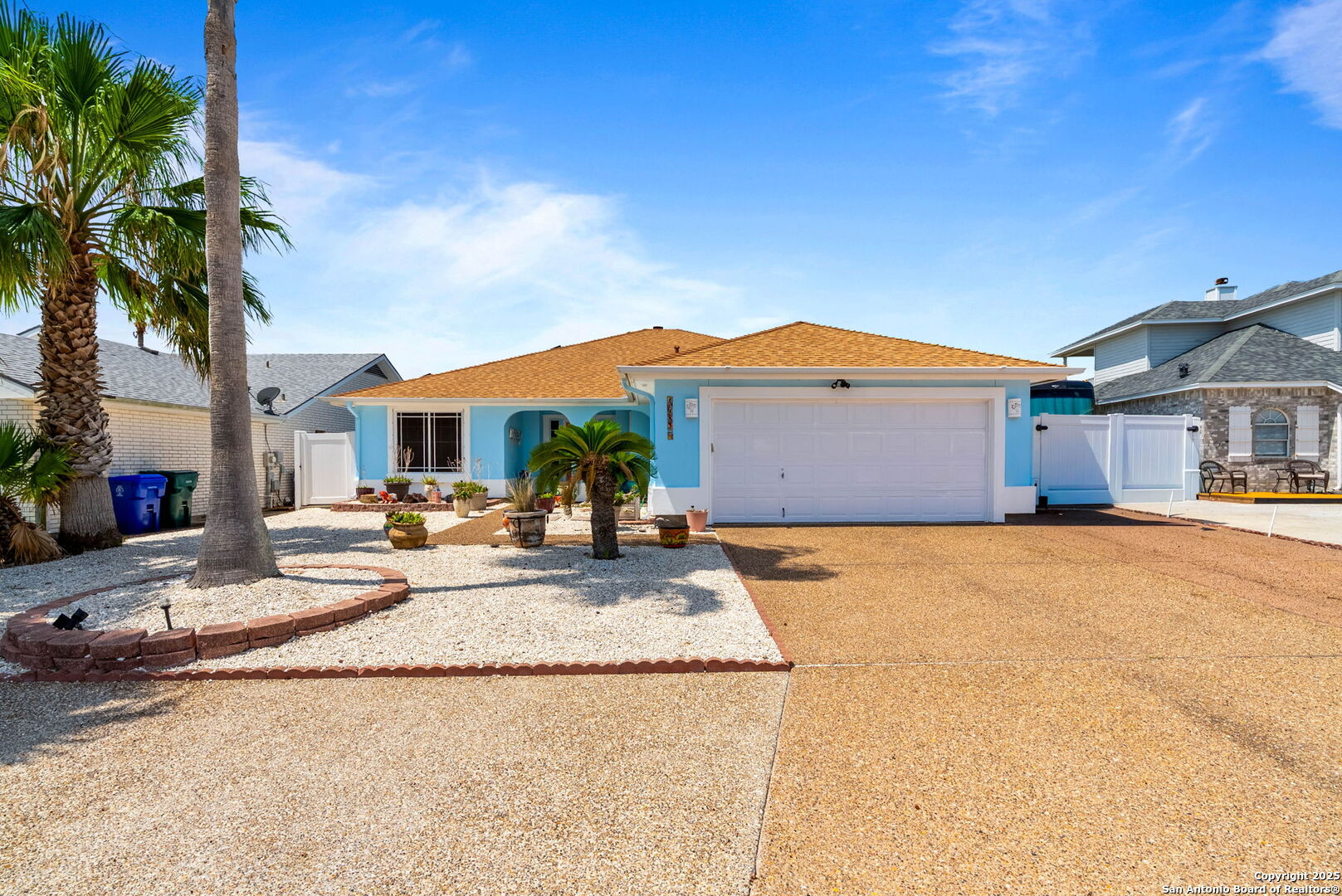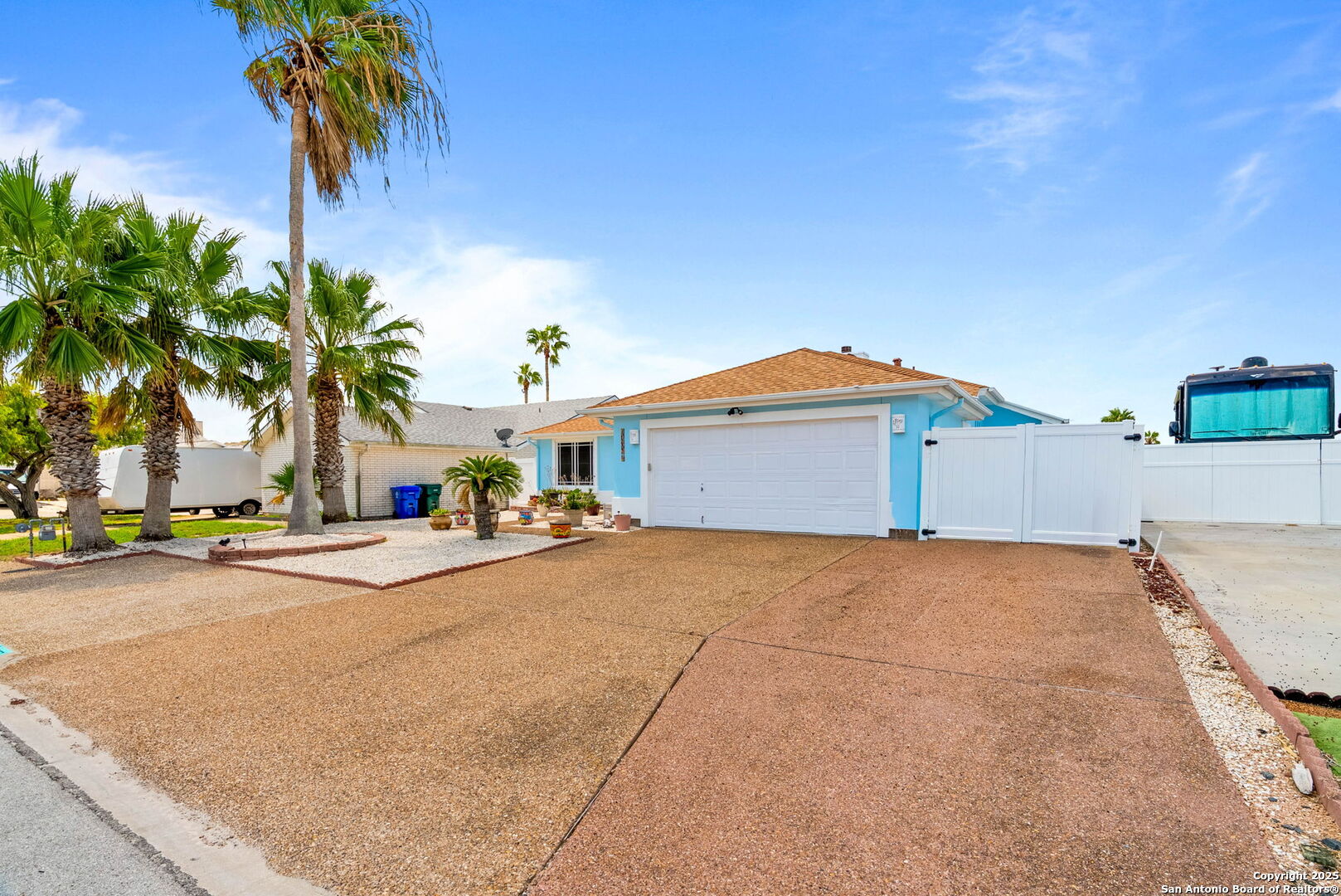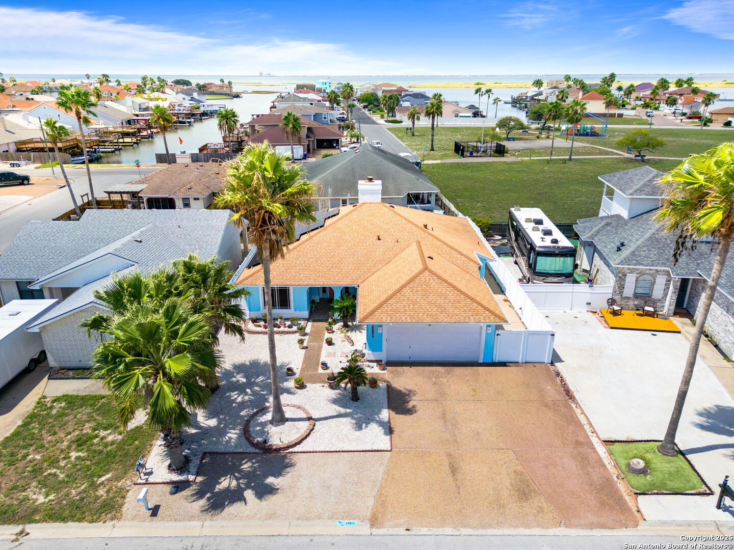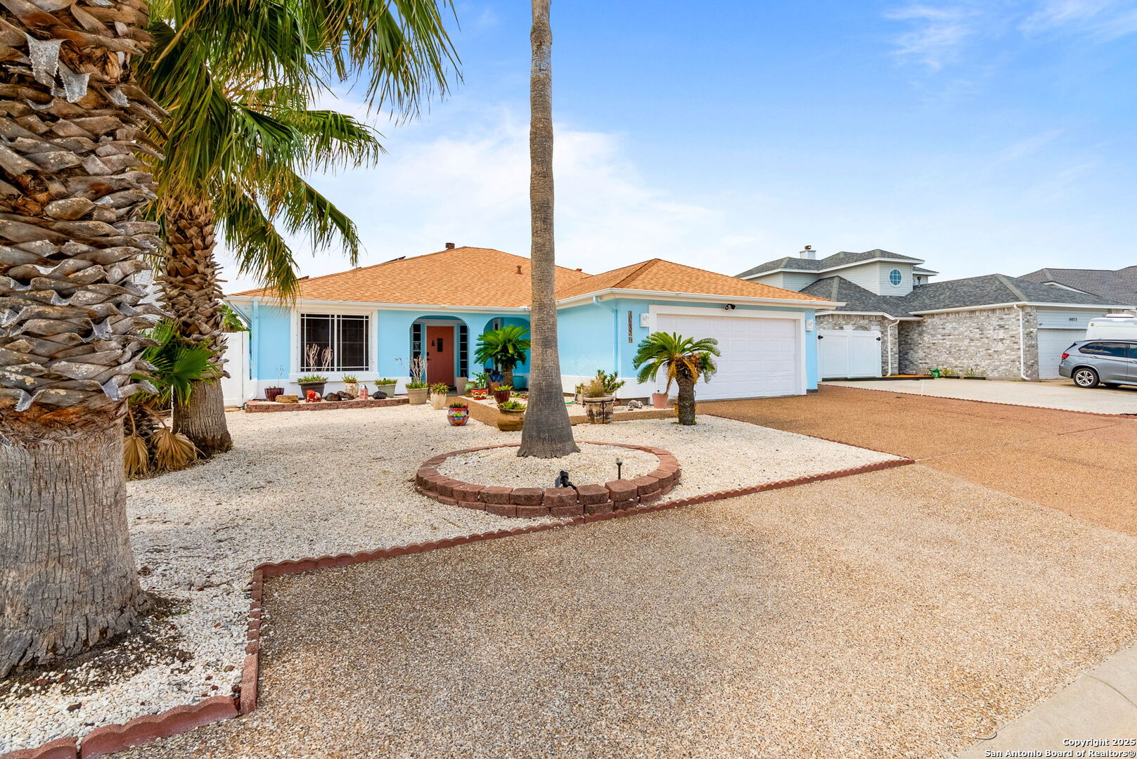 Major Price Reduction! Off Season is a great time to buy your Coastal Vacation home. Updated Home close to the Water on North Padre Island! Great Curb appeal outside and Beauty inside with a very Comfortable Open Concept Living to Kitchen and Dining area. Primary Bedroom and Secondary beds on opposite sides of home. Wood Burning Fireplace, No Carpet, Covered Back Patio and Outdoor entertaining space. Spacious Primary En-suite with separate shower, garden tub, large closet. Low Maintenance Stucco Exterior, Landscaping and Vinyl Privacy fencing, completely enclosed back yard. Oversized Driveway. Recent updates, 2 yrs HVAC system including new ducts, water heater, stove, microwave, solar screens, new Vinyl Plank floors throughout, fresh paint inside and out! Want to Save $500 or More Monthly? Major investment (paid off) Solar Panels and Backup Generator which provide $0 Elec Bills. Boat Ramp and Dock at end of street, Short drive to the Beach, Restaurants, other Island Attractions and Corpus Christi just across the Bridge. Shown by Appointment!