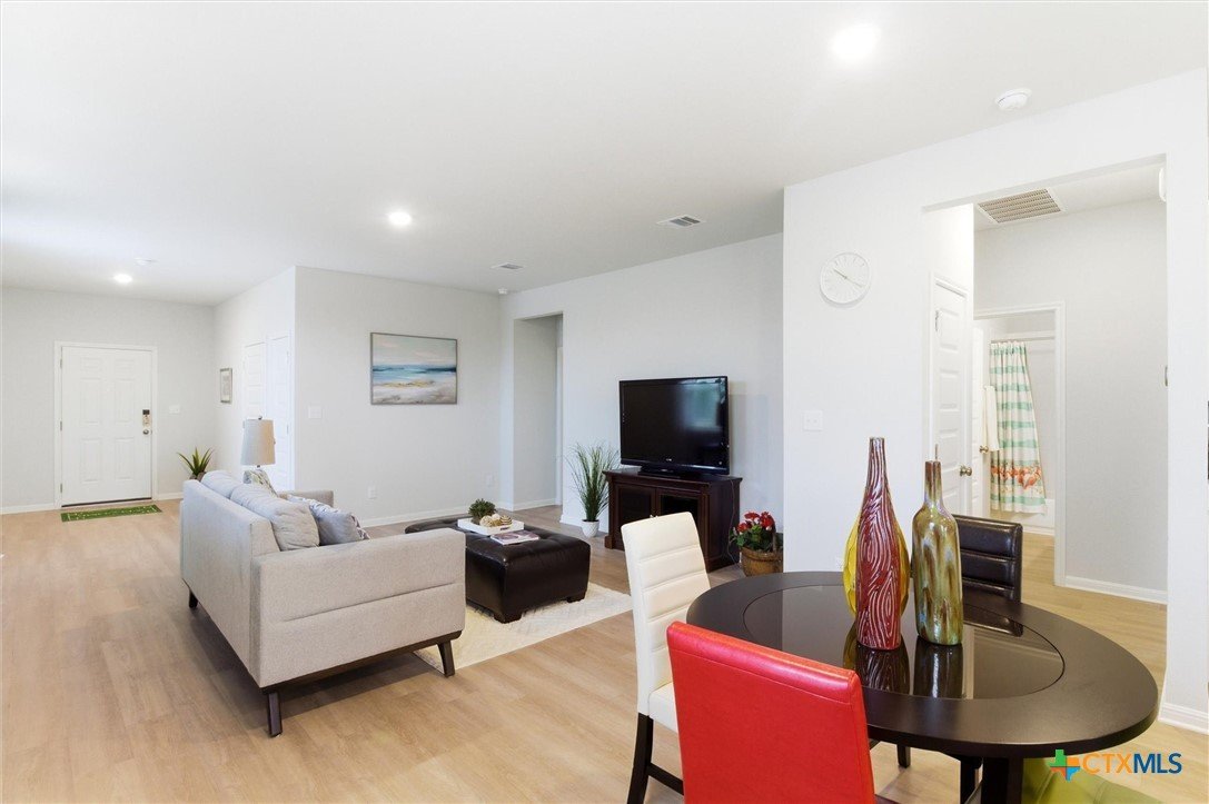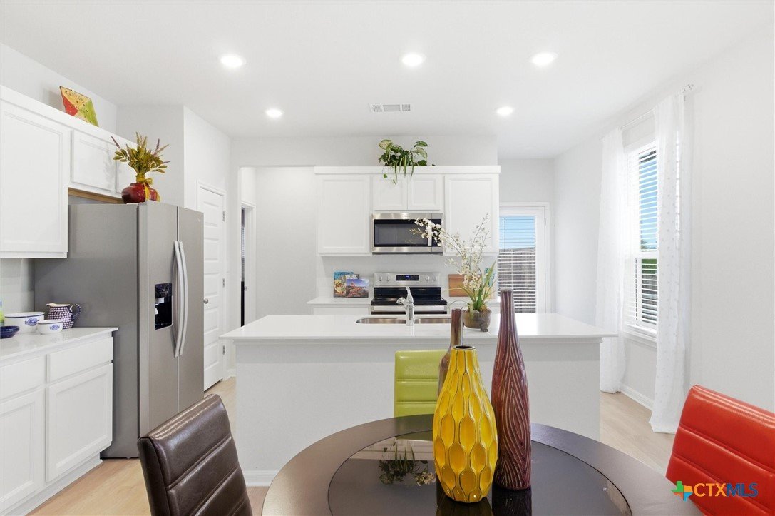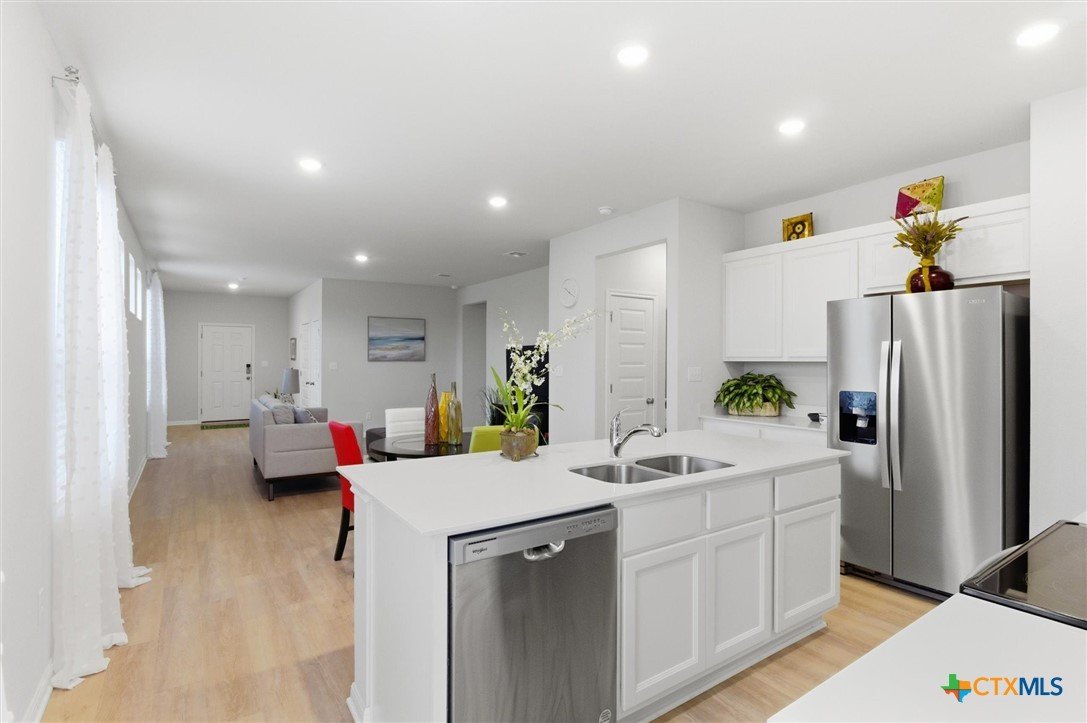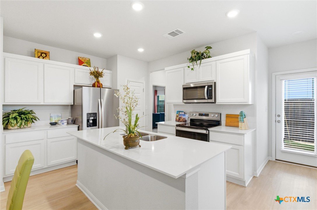 Welcome to this charming one-story home in Cottonwood Creek, offering four spacious bedrooms, an open layout, and an unbeatable location! Step inside to a bright and inviting living room filled with natural light, designed for both relaxing and entertaining. The wide-open floor plan creates a seamless flow among the living, dining, and kitchen areas, making gatherings easy and everyday living comfortable. The kitchen is a true highlight, featuring gorgeous countertops, abundant cabinet space, and plenty of room for meal prep and storage. Whether cooking for family or hosting friends, you’ll appreciate the functionality and layout. All four bedrooms are generously sized, providing flexibility for guests, a home office, or a growing household. Step outside to enjoy the backyard with open space to relax, play, or garden. The subdivision is enhanced by a scenic creek, adding natural beauty and a peaceful touch to the community. Conveniently located near schools, this home offers everyday convenience in a welcoming, safe neighborhood. This home offers convenient access to I-35, Texas State University, shopping, dining, and the San Marcos River. Enjoy being just minutes from the San Marcos Premium Outlets, local parks, and vibrant downtown while still tucked into a quiet residential neighborhood.