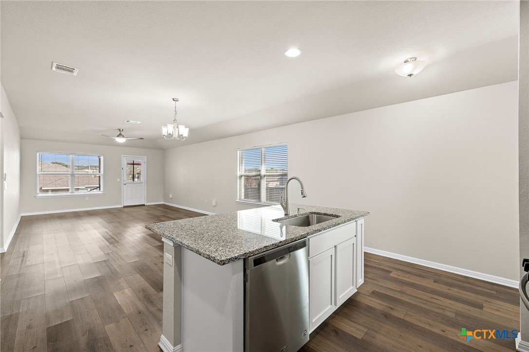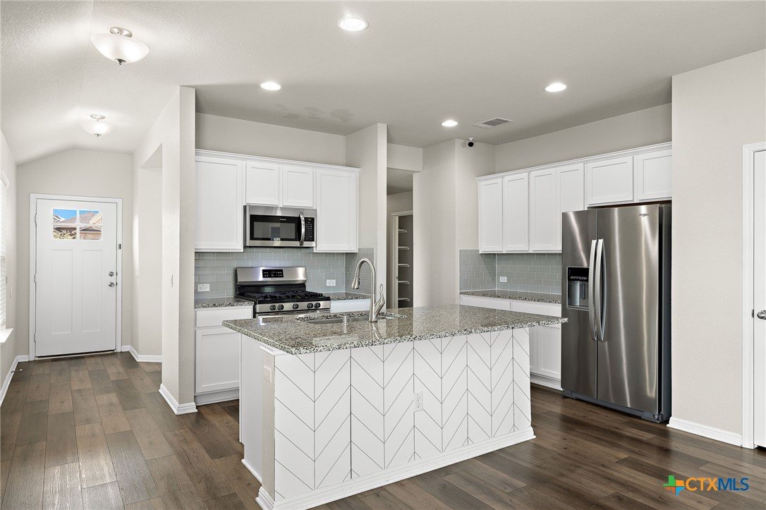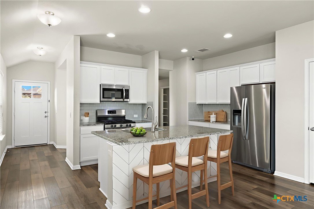 Welcome to 149 Feather Grass Ave, located in the desirable master planned Larkspur community of Leander. This lovely single-story home offers a perfect blend of modern style and comfortable living. Situated on a spacious corner lot, this home boasts four bedrooms and two bathrooms, providing ample space for all with a recently replaced roof and gutters. As you step inside beyond the entryway, you'll be greeted by an open and inviting floor plan, accentuated by an abundance of natural light that fills the room and luxury vinyl plan flooring. The well-designed layout seamlessly connects the kitchen, dining area and living room, making it an ideal setting for both daily living and entertaining guests. The stylish kitchen features sleek granite countertops, a large center island with a breakfast bar and single basin sink, stainless steel appliances, recess lighting and ample cabinet storage. Whether you're preparing a quick meal for yourself or hosting a gathering with friends, this kitchen offers the perfect space to showcase your culinary skills. The primary bedroom is a true retreat, offering a peaceful sanctuary to relax and unwind. It features a spacious layout, a walk-in closet and ensuite bathroom complete with walk-in shower. The three additional bedrooms are well appointed, providing comfort and privacy. Outside, the corner lot provides a generous backyard space with covered patio, beautiful landscaping and offering endless possibilities for outdoor activities and entertaining with views overlooking the community. The Larkspur community itself offers a host of amenities, including two sparkling pools, walking trails, fitness center, playscapes, and clubhouse with acres of parkland and open space that backs to the San Gabriel River providing residents with opportunities for recreation and relaxation. The convenient location of this property allows for easy access to shopping, dining, entertainment, and major commuter routes like HWY 183 & 183A Toll.