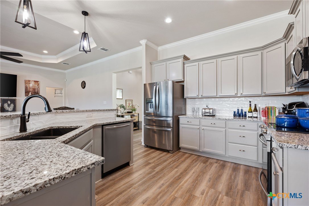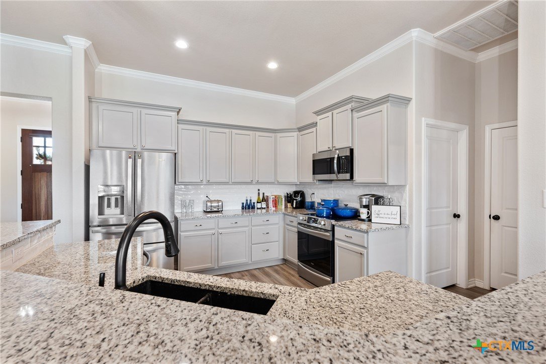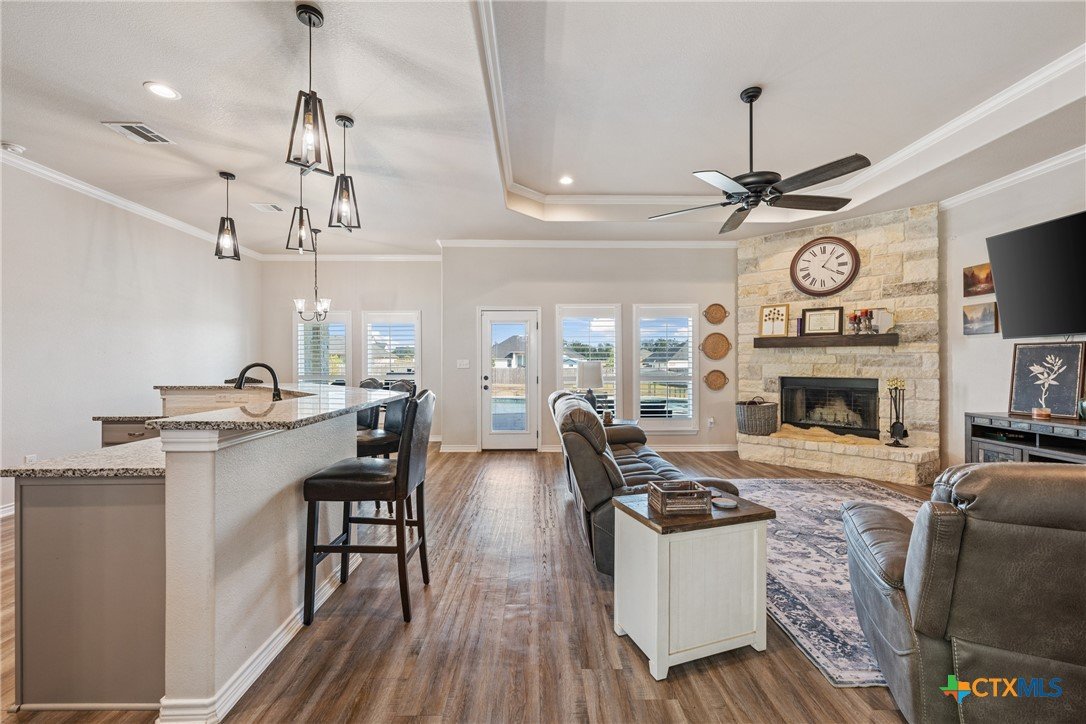 The immaculate home feels warm and homey as you walk into this beautiful home. Just a short drive to Belton Lake. The North Lake Austin Estates neighborhood is a very sought out neighborhood with large lots. This home features a side garage entry as you arrive and stucco rock combination that is just stunning! Incredibly large back yard with sprinkler system. The open floor plan and high ceilings welcome you home. You'll enjoy the open kitchen/living room concept, walk in pantry, granite counter tops & plenty of storage. Search no further for that home with a primary bedroom suite that includes an oversized walk-in shower and soaker tub. Master bedroom is separate from the other spacious bedrooms. There is a fireplace in the living room, custom wide window blinds on the windows bringing in lots of natural light to a stunning view of the back yard.