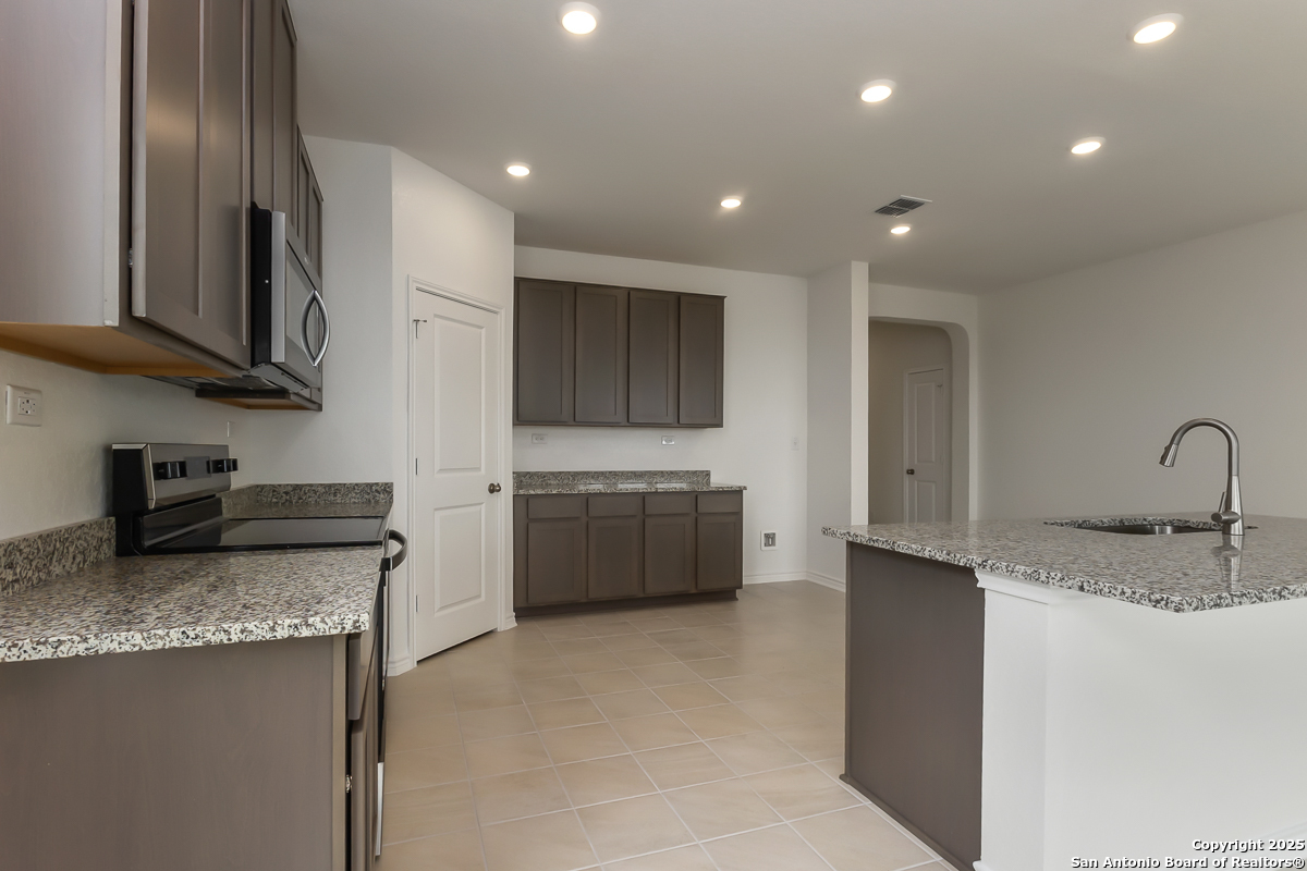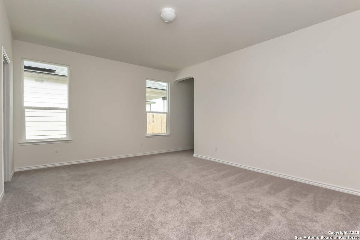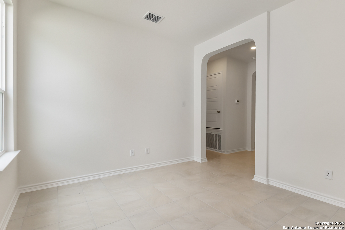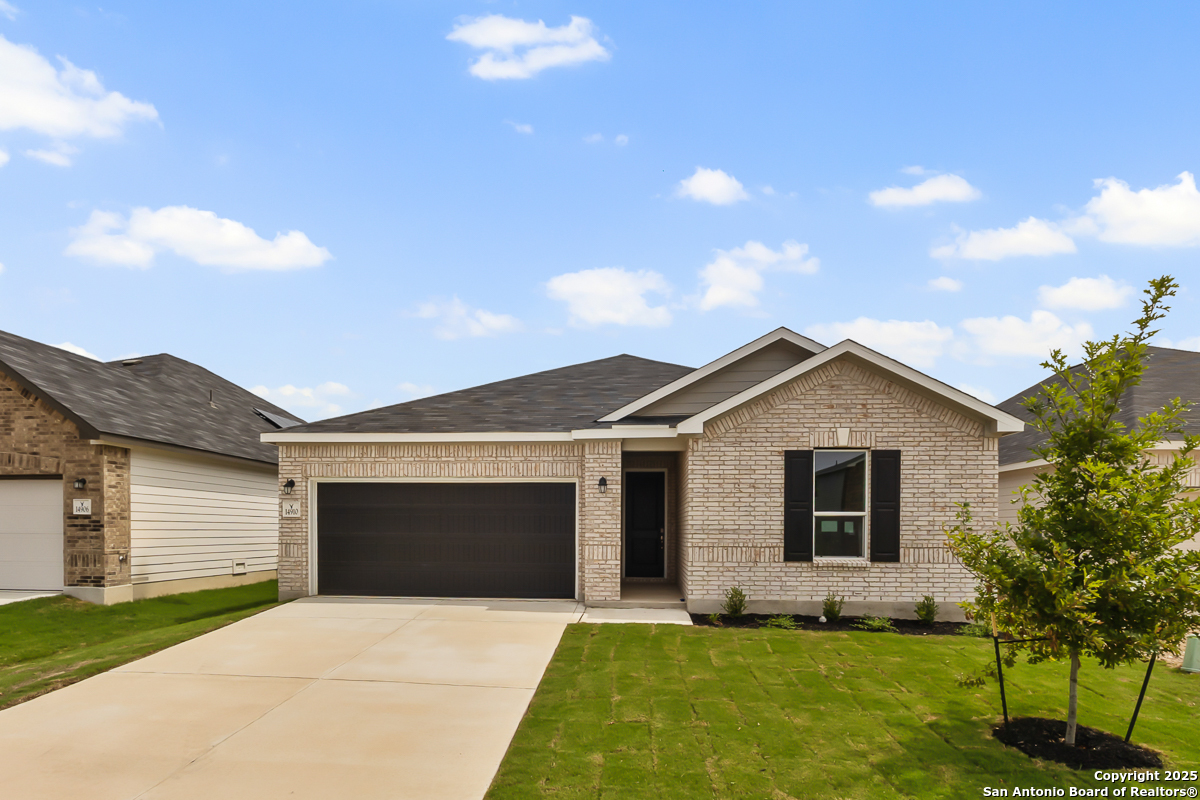 This beautifully designed home features 9-ft. first-floor ceilings, creating a spacious and inviting feel. The stylish kitchen boasts Whirlpool stainless steel appliances, Woodmont Dakota Shaker panel 42-in. upper cabinets, elegant Arctic Pearl granite countertops, and an extended breakfast bar. The primary bath offers upgraded cabinets and a luxurious 42-in. garden tub/shower with a Daltile tile surround. Thoughtful details include a Carrara-style entry door, Kwikset Polo knob interior hardware, and Daltile ceramic tile flooring in the bathrooms, den, and great room. A wireless security system provides added peace of mind, while an automatic sprinkler system keeps the outdoor space lush. Don't miss this exceptional home!
