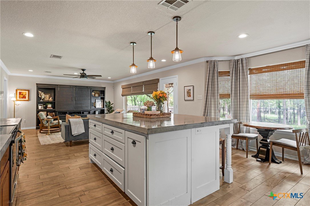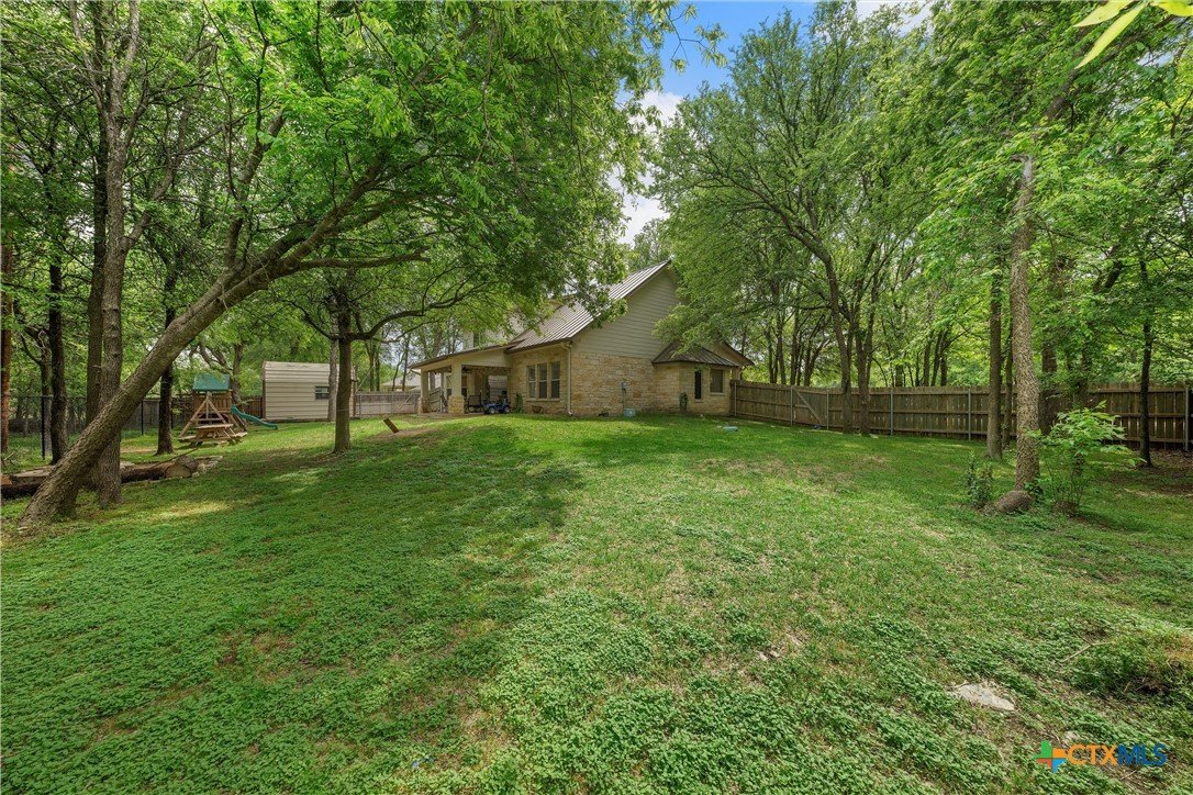 Missed It the First Time? Here’s Your Chance! Just 15 minutes from Temple and 40 minutes to Waco! Tucked beneath a canopy of mature trees on a spacious double lot (0.36 acres), this charming 4-bedroom, 2.5-bath home is your private retreat just minutes from the sparkling shores of Lake Belton. The heart of the home is a bright, open-concept living room and kitchen, where a massive picture window invites the outdoors in. This space feels cozy and connected, whether curled up with a good book or hosting a game night. The updated kitchen blends style and function. It features an eat-in bar, a breakfast nook, a pantry, newer concrete countertops, and a seamless flow into the formal dining room, perfect for casual meals and special occasions. A bonus playroom or flex room just off one of the upstairs bedrooms offers the ideal spot for a kids' hideout, craft space, home gym, or office. Each bedroom is generously sized, and the primary suite on the main floor offers a peaceful retreat with a private bath featuring a footed soaking tub and a separate shower, the ultimate spot to unwind. With 2.5 bathrooms, there's plenty of room for family and guests alike. Outside, the expansive double lot offers a peaceful and private setting, perfect for relaxing or entertaining. A dedicated firepit area provides a cozy space for gathering, while the generous yard allows for gardening and outdoor recreation. A well-sized storage shed off the driveway adds convenient space for tools, equipment, or seasonal items. Located in Morgans Point Resort, a charming lakeside community known for its friendly vibe, scenic parks, and unbeatable access to Lake Belton. Enjoy the laid-back lake life while being just a short drive from Belton, Temple, and local schools, making daily life more convenient. Create the life you've imagined in one of Central Texas' most beloved lakeside communities. See why life feels a little sweeter at 15 Shetland Drive. We think you're going to fall in love.