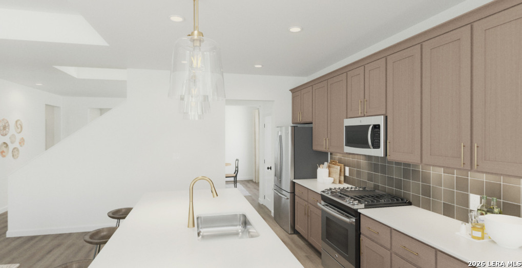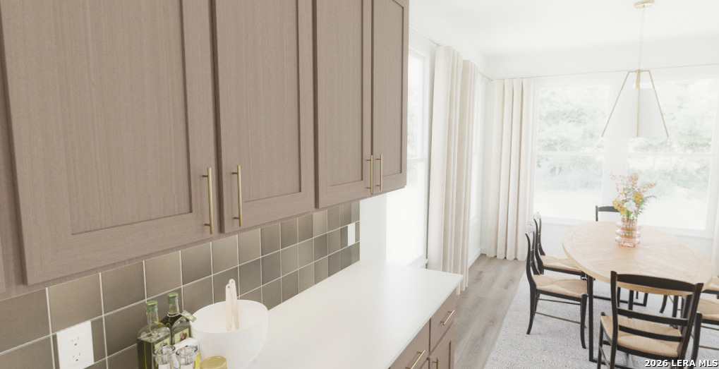 A thoughtfully designed two-story home where comfort, style, and everyday functionality come together seamlessly. A gourmet kitchen with a large center island, walk-in pantry, and designer finishes flows effortlessly into the breakfast area and spacious family room. The private primary suite includes an oversized shower, double vanity, and walk in closet. A loft and three secondary bedrooms with two baths offer plenty of room to unwind. Covered patio on the back of the home. This home is part of our Laguna Collection - inspired by wide horizons and slow, easy days. Sun-bleached neutrals blend with earthy textures to create a space that feels open, airy, and beautifully relaxed. Modern simplicity finds harmony in nature-inspired elements, giving you a home where time stretches out, and everyday life feels just a little more serene. This home is in Nopal Valley, a West San Antonio community with spacious lots, future pool and playground, open layouts, and easy access to shopping, schools, and Lackland AFB.