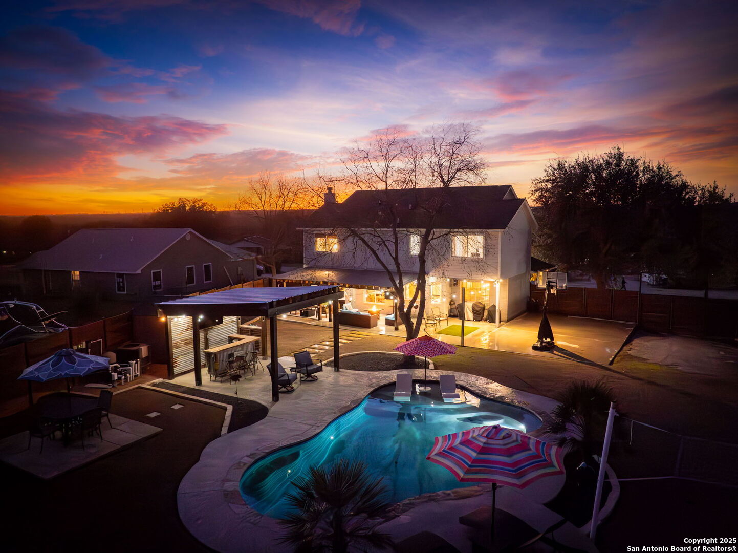 Short term rental potential, zoned to Hoffman Lane Elementary and 5 minutes into Gruene, this GORGEOUS property has no HOA. The home features four bedrooms, two and a half bathrooms, two living spaces, and two dining spaces. The pool is perfect for year-round swimming as it is heated and chilled! The options for outdoor living are endless. Volleyball, basketball, swimming, hanging out by the bar, or sitting around by the firepit, it's all included in this backyard oasis! Come and take a look!