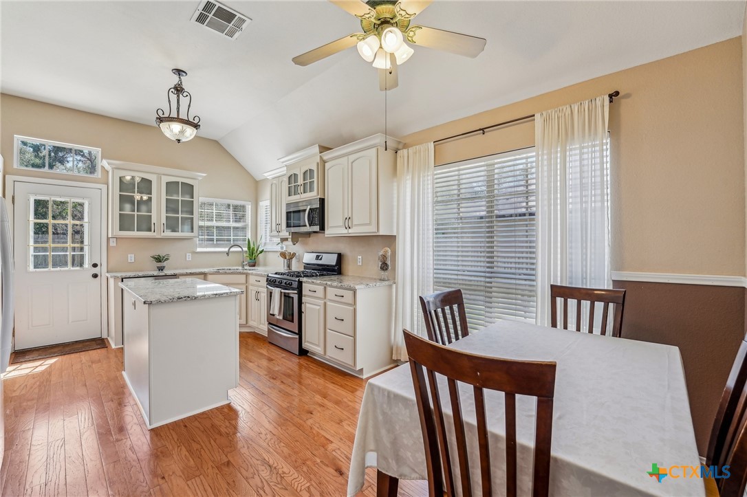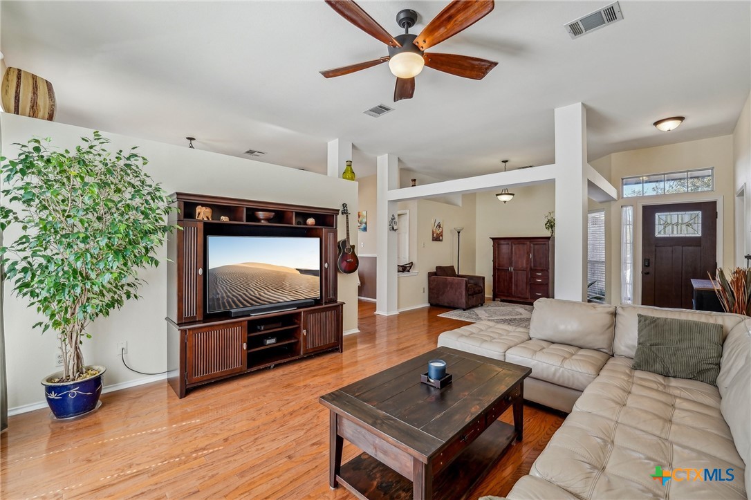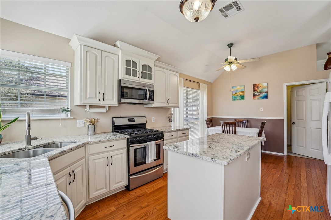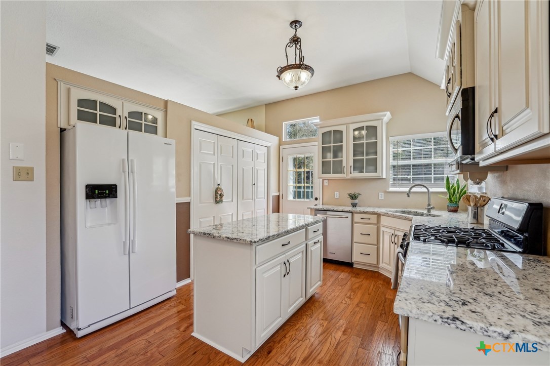 ****MULTIPLE OFFERS RECEIVED. PLEASE SUBMIT YOUR CLIENTS BEST AND FINAL OFFER BY 5PM ON 3/17/2025**** Don't miss your chance to see IN PERSON this beautifully updated, light-filled single-story home in a prime location! This move-in-ready home feels extra spacious with high ceilings and an abundance of natural light streaming through the many transom and crescent windows. Updated throughout, this home features a fully remodeled kitchen with custom real wood cabinets and soft-close doors, white granite countertops, and stainless-steel appliances. Both bathrooms have been stylishly refreshed with refinished/painted cabinets, updated lighting, modern hardware, and new fixtures. Additional recent upgrades include stunning hardwood flooring everywhere but the bedrooms and bathrooms, fresh paint in most rooms, a new front door, and built-in garage shelving with a new door opener. Step outside to enjoy the oversized patio, perfect for entertaining or unwinding while overlooking the tree-filled lot. Located in the highly rated Leander ISD, this home offers unbeatable convenience - just minutes from major roads, Randalls, HEB Plus, restaurants, shopping, a MetroRail Park & Ride station, Austin Community College, and the future Leander downtown district!