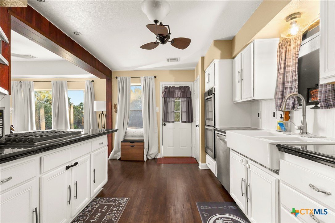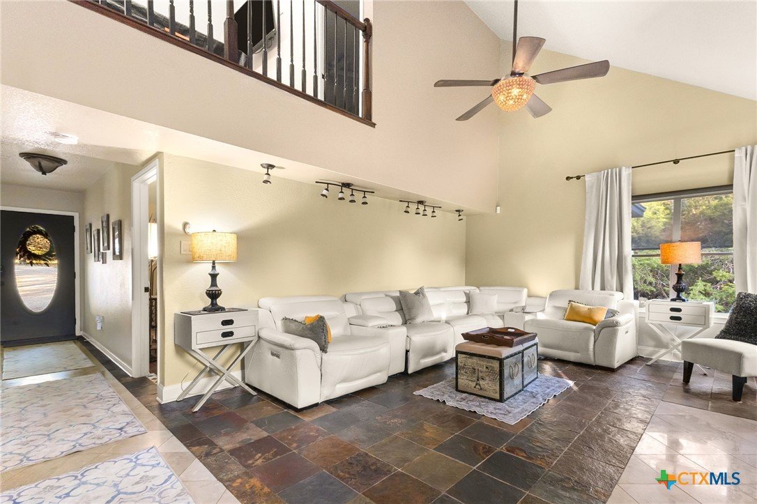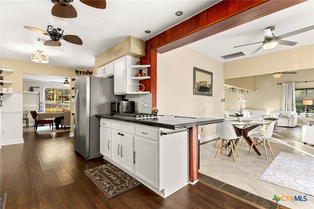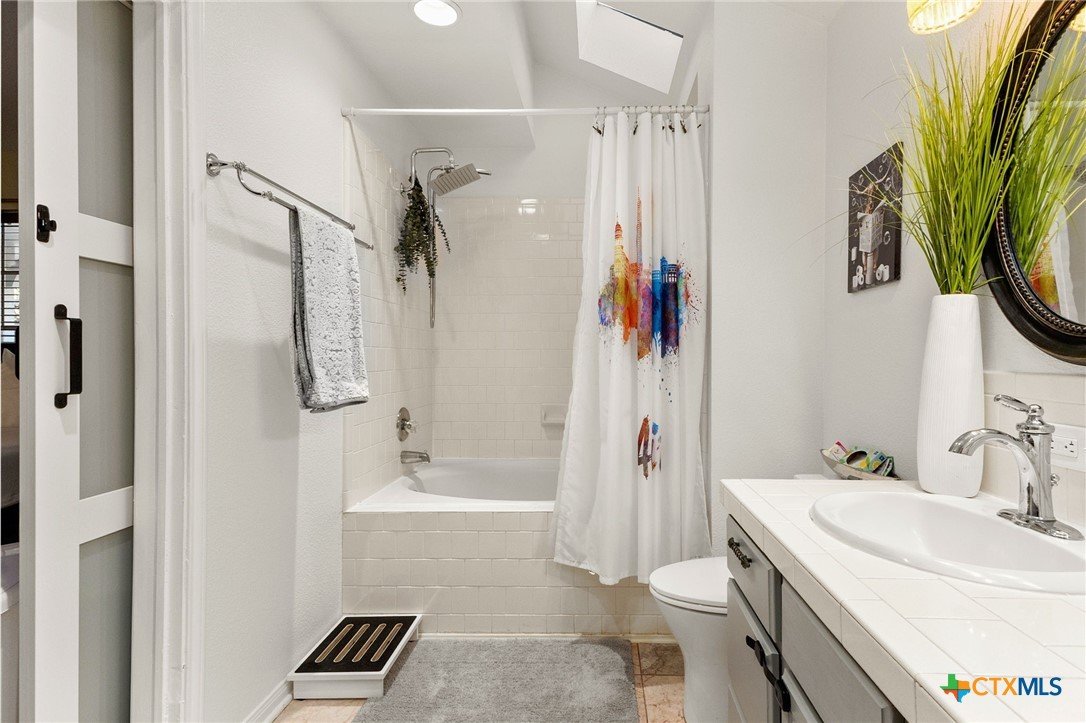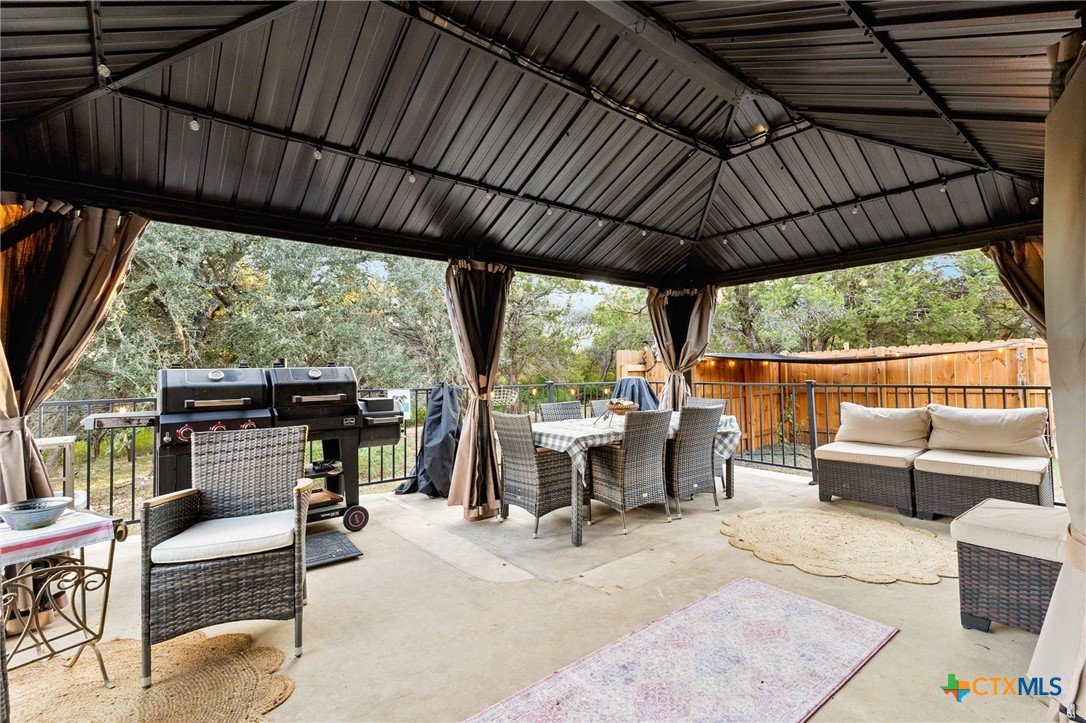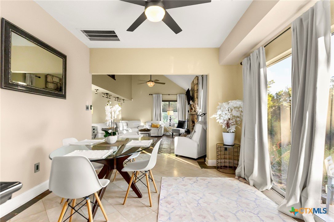 Charming Hill Country retreat on 3.58 private acres in New Braunfels — featuring a main home and attached guest suite, main house currently used as active short-term rental. The main home offers 3 bedrooms, 2.5 bathrooms, a downstairs primary suite, formal dining room, and an upstairs flex space perfect for a game room, home office, or gym. The attached guest house includes 1 bedroom, 1 bath, full kitchen, private yard and separate entrance — ideal for multigenerational living or investment income. Surrounded by trees and open space, this property offers sunset views, plenty of room to expand, and multiple outdoor living areas.