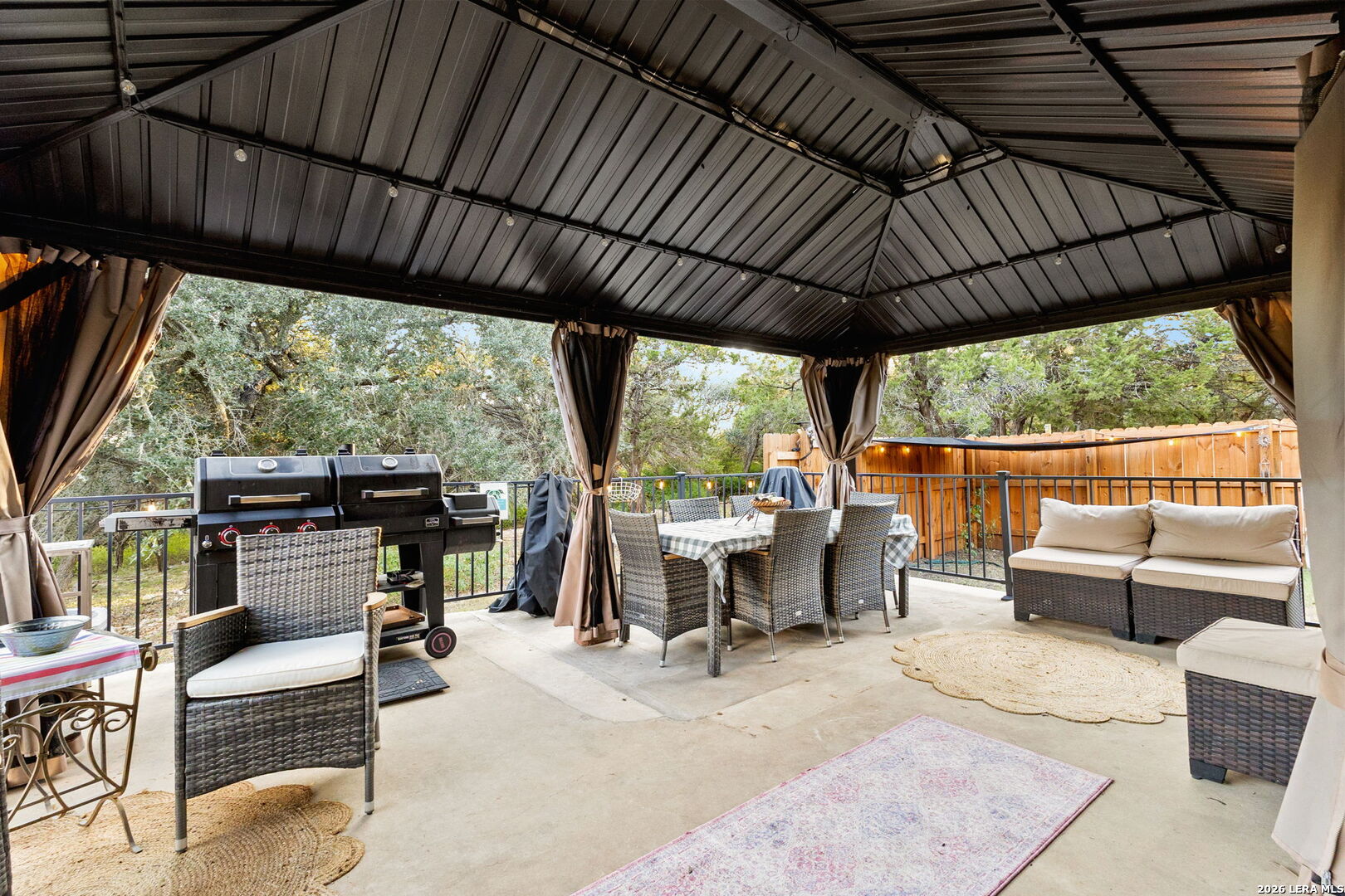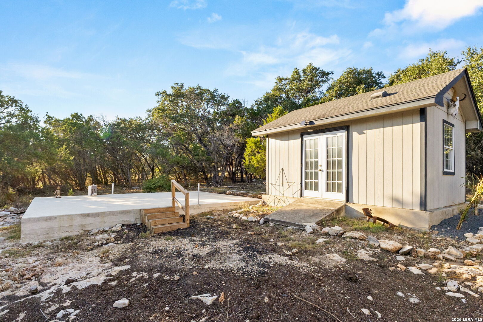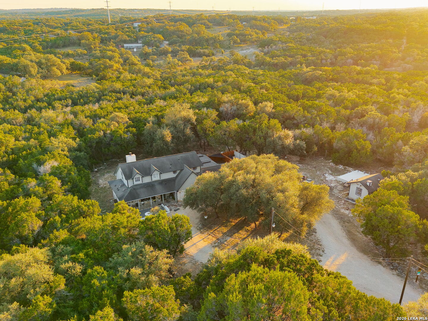 Charming Hill Country retreat on 3.58 private acres in New Braunfels - featuring a main home and attached guest suite, main house currently used as active short-term rental. The main home offers 3 bedrooms, 2.5 bathrooms, a downstairs primary suite, formal dining room, and an upstairs flex space perfect for a game room, home office, or gym. The attached guest house includes 1 bedroom, 1 bath, full kitchen, private yard and separate entrance - ideal for multigenerational living or investment income. Surrounded by trees and open space, this property offers sunset views, plenty of room to expand, and multiple outdoor living areas.