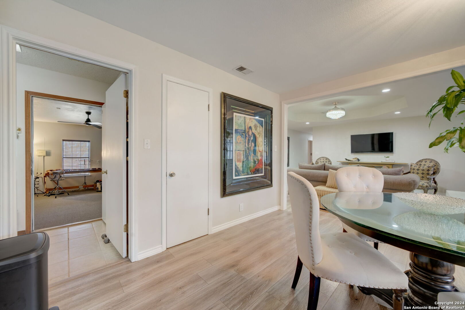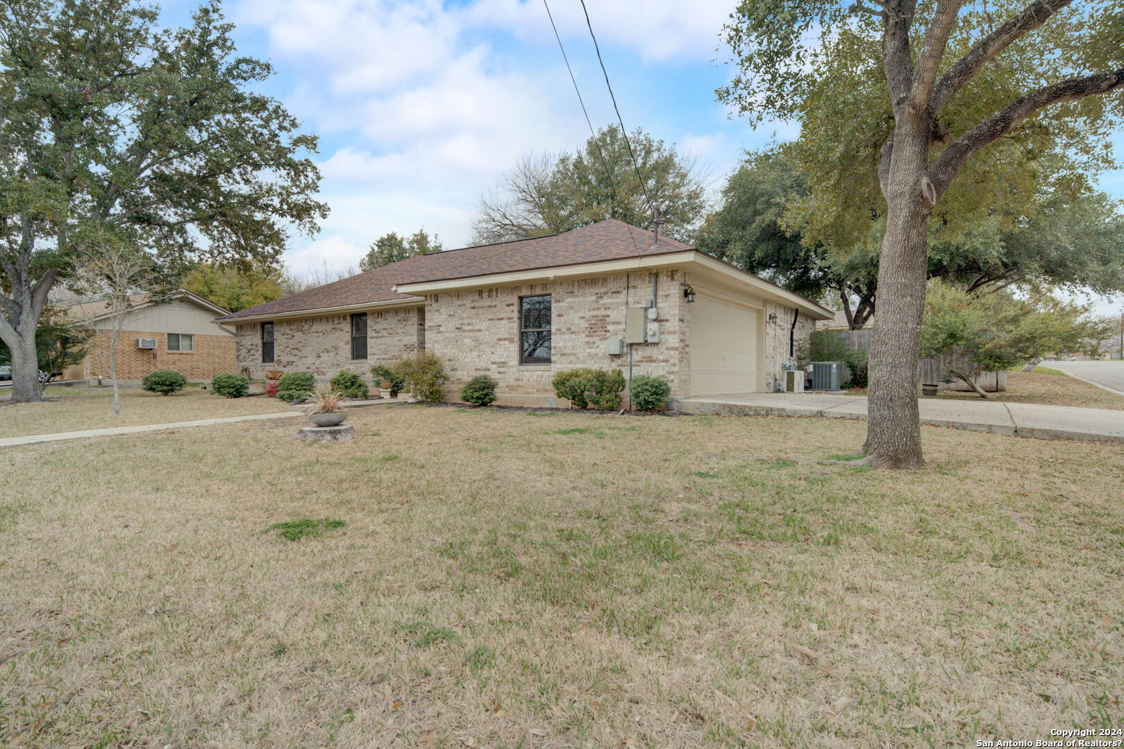 EVERY SQUARE INCH OF THIS HOME HAS BEEN UPDATED NEW AC and roof is only 2 years old and on top of all of that the incredible back yard has very mature trees! The Garage has been converted in to a flex space with a mini split and a celling fan and updated carpet, The Large corner lot with updated privacy fencing, covered patio, tastefully landscaped with sprinkler system. Extensive cabinetry, kitchen pantry, large laundry room, & tile & laminate flooring throughout.