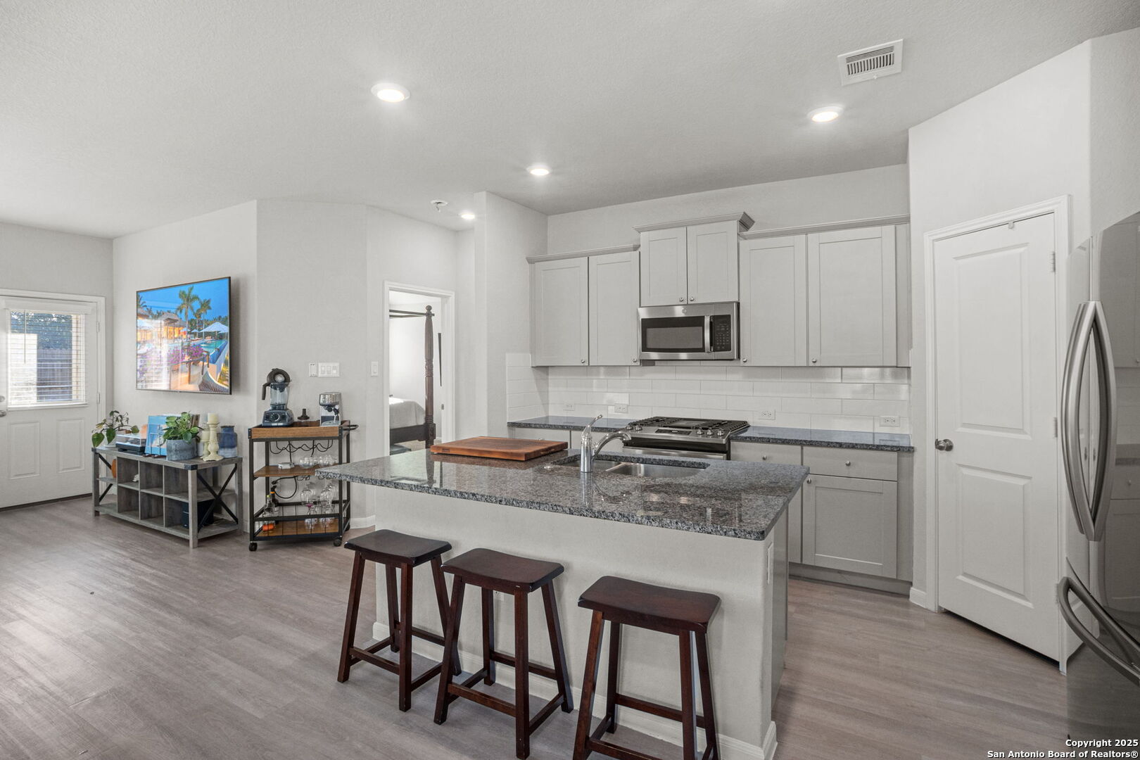 In the gated community of Potranco Run, this beautifully maintained single-story home offers 3 bedrooms, 2 bathrooms, and nearly 2,000 sq. ft. of thoughtfully designed living space. The open floor plan seamlessly connects the kitchen, dining, and living areas, creating an inviting layout ideal for entertaining or everyday comfort. Natural light fills each room, highlighting the warm and welcoming atmosphere throughout. The spacious kitchen offers plenty of cabinetry and prep space, while the bedrooms provide comfort and privacy for all. Outside your door, enjoy resort-style amenities including a sparkling pool, park, volleyball court, and clubhouse, ensuring there's always something to enjoy close to home. Built just five years ago and move-in ready, this property combines modern convenience with community living, making it a perfect place to come home to.