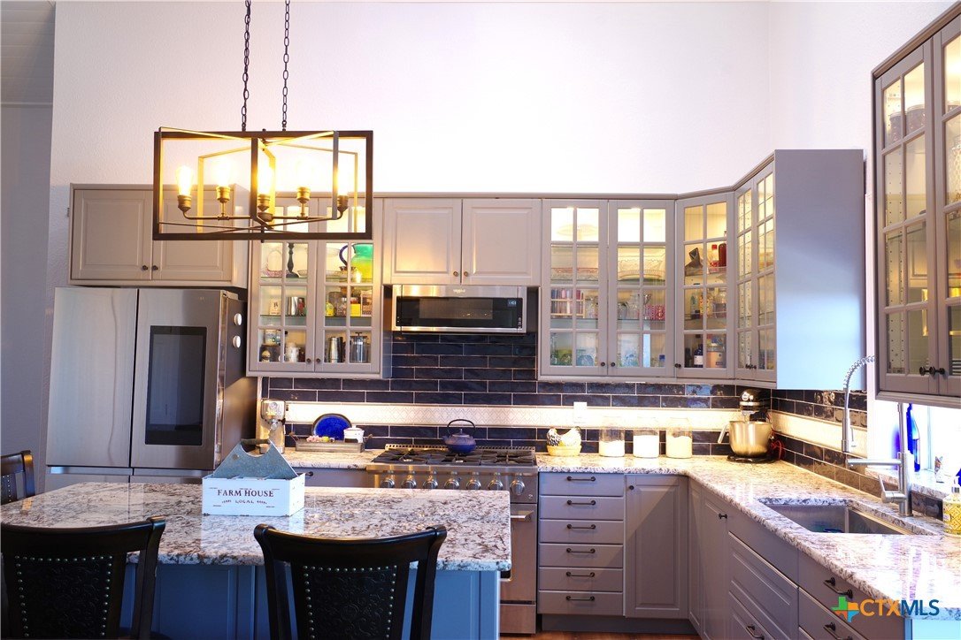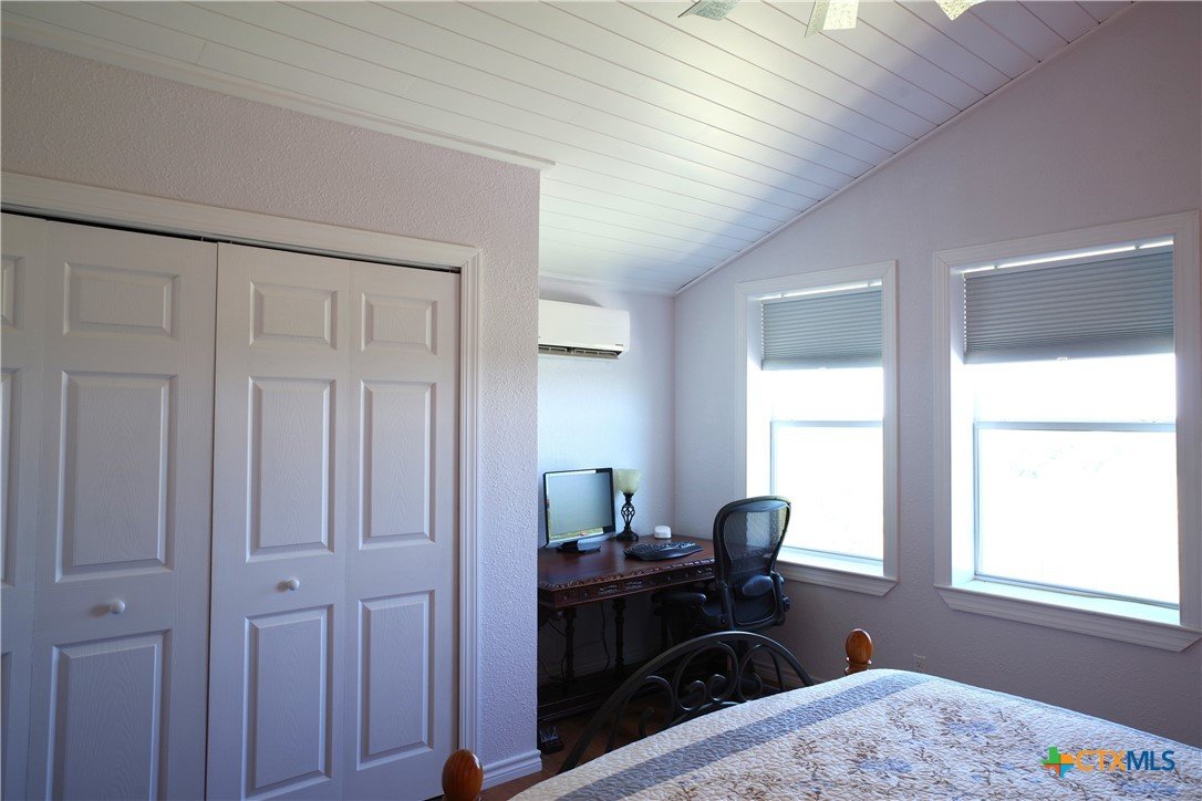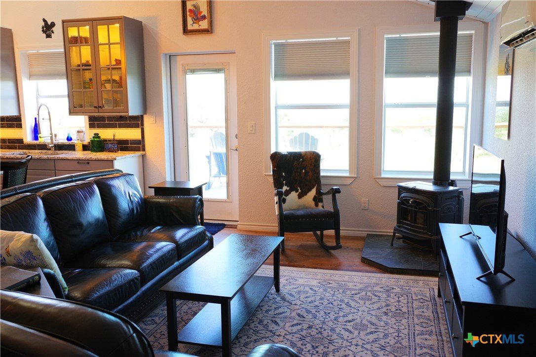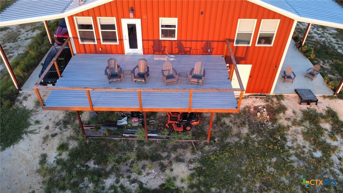 A 41 acre ranch with spectacular hill country views within an hour+ of Austin in a secluded, gated large lot community. Don’t miss a chance to live the ranch life away from the noise and traffic of the city. A total of 2400 sq ft of space including 1600 sq ft metal roof barndominium with an upstairs 800 sq ft fully built out living area furnished to satisfy those who enjoy cooking, including a Kucht 36” range, granite countertops, and beautiful cabinets designed for maximum utility and storage. The 14’ vaulted ceiling makes the space cool and airy. Delicious RO treated water is delivered directly to the refrigerators.. The whole space is insulated with closed cell foam insulation and is cooled and heated with efficient mini-splits plus also includes a fully working wood stove. A durable Trex deck with incredible long distance views lets you take in gorgeous sunsets and beautiful panoramas of Texas beauty. The downstairs is equipped with a full bath and a commercial 3 basin sink to handle larger entertainment settings. A commercial blodgett french door oven is negotiable. As if this was not enough, the property also includes a small gentleman’s vineyard of about 100 3 year old tempranillo vines in about ½ acre with automatic watering. A full water/electric/septic RV hookup is all ready for your vacationing friends. There are two wells on the land, one an old time wind driven well plus the currently hooked up well that is electric powered. The land is full of mature oaks and elms with plenty of hunting opportunities. A food plot of about an acre has been cleared and planted for several years, attracting both whitetail deer and axis. A wet weather pond of about ½ acre collects and retains water for the wildlife. A simple road association maintains the road running through the whole community. Large tracts like this are uncommon, and even less common are large higher elevation parcels with exceptional hill country views.
