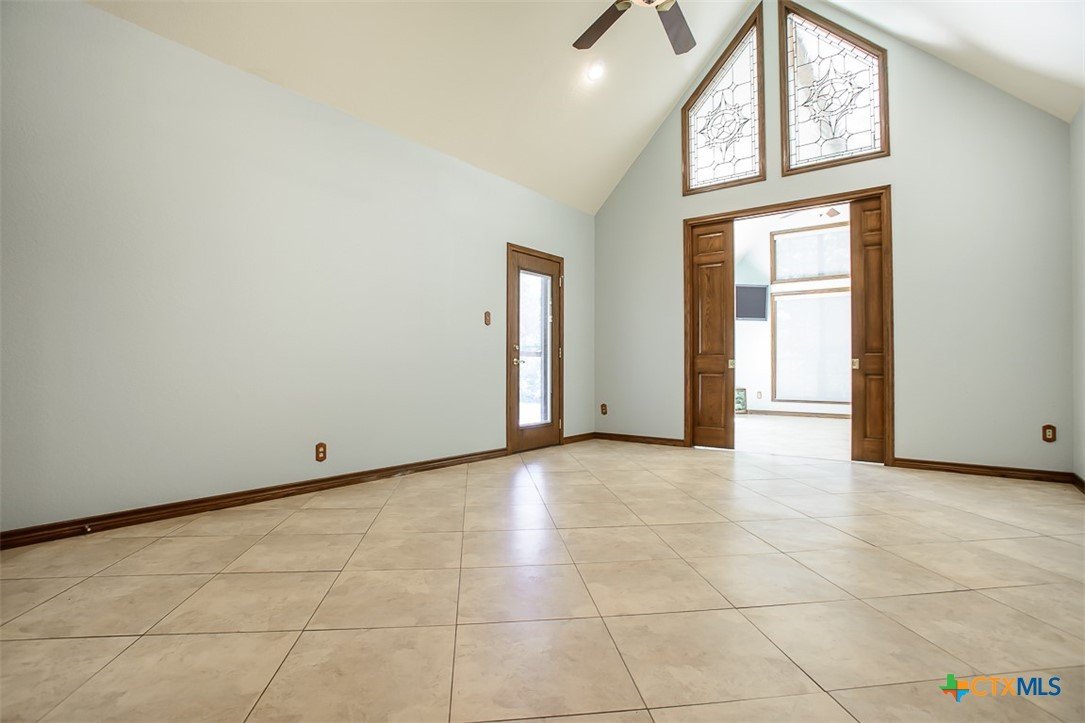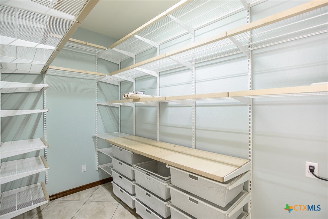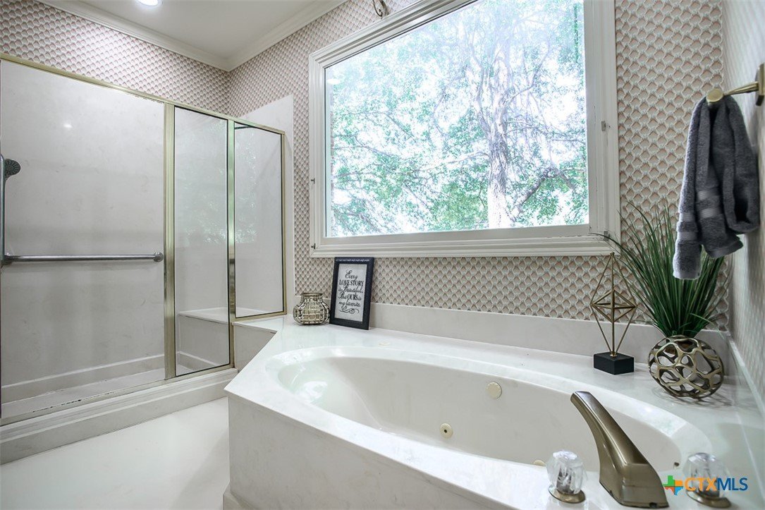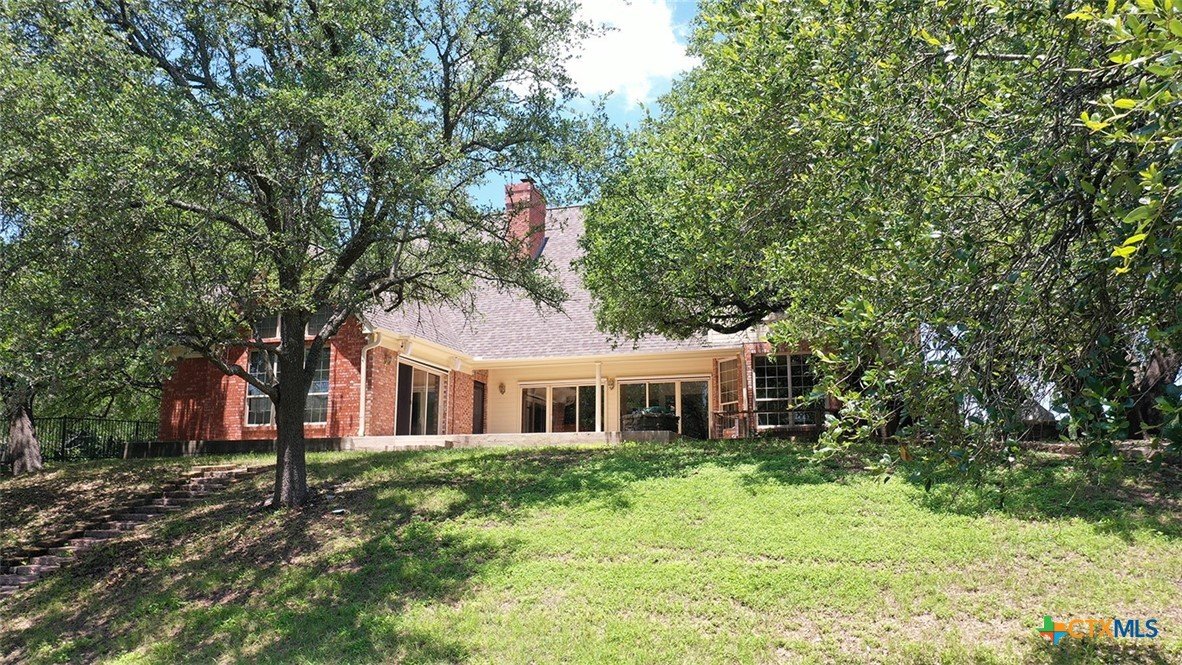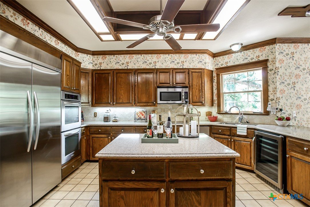 Ideally located within a secluded cul-de-sac, this exceptional residence unveils a lifestyle of unparalleled tranquility and luxury. Poised atop a gentle hill, this double-lot sanctuary offers a panoramic view, with the lush green expanse of a golf course below. Step inside to discover an interior that seamlessly marries elegance with versatility. A grand entrance beckons you into a sprawling floorplan, where every detail has been meticulously crafted to elevate your living experience. Towering ceilings greet you in the expansive family room, where a dramatic two-story expanse opens up, drawing in natural light through a wall of sliding glass doors. Here, a majestic fireplace, ensconced within custom built-ins, stands as the focal point of cozy gatherings, while stunning floors, adorned with a unique blend of tile and criss-crossing wood, imbue the space with warmth and character. Entertain in style in the formal dining room, where rich wood wainscotting lends an air of sophistication to every meal. The sprawling island kitchen beckons culinary adventures, with an attached breakfast area providing the perfect setting to savor morning moments. Retreat to the owner's suite, where an attached flex room offers boundless possibilities, including a discreet storage room secured behind a safe vault door. Upstairs, a versatile flex room awaits, lined with built-ins to accommodate your every need. Two secondary bedrooms, connected by a Jack & Jill bathroom, offer comfort and convenience, complete with an additional washer and dryer for added ease. Outside, an open patio invites al fresco gatherings, overlooking an expansive backyard dotted with mature trees and a storage building. Other notable features include a whole house generator for peace of mind, attic stairs leading to the top of the living room for effortless maintenance, a new AC system installed in 2022, and a convenient sink in the garage for added functionality.