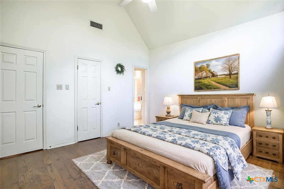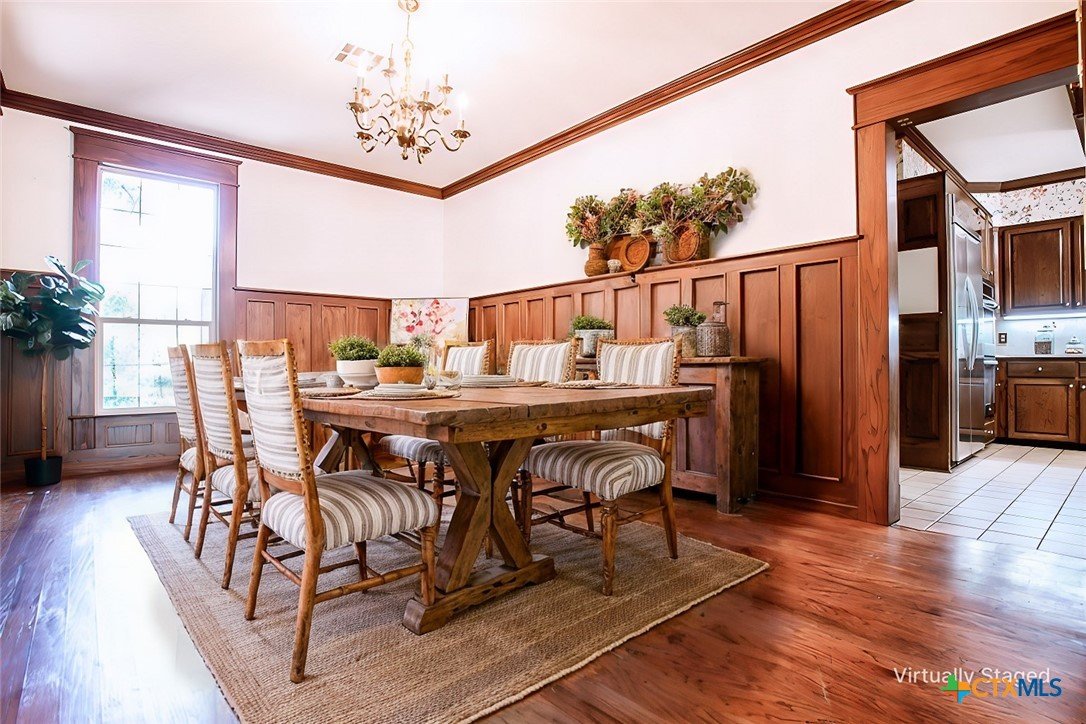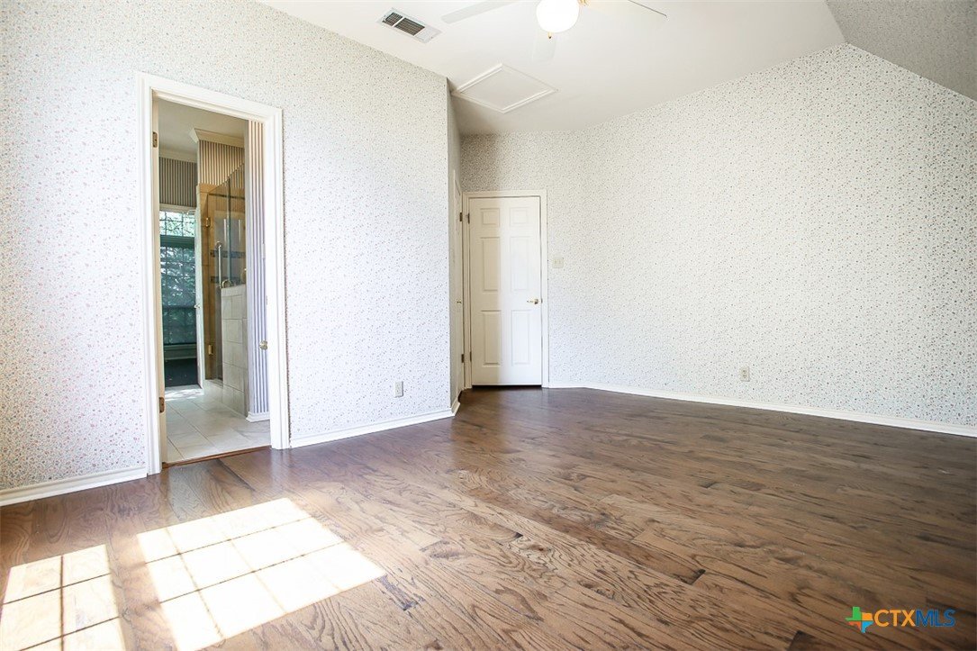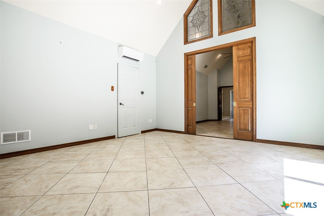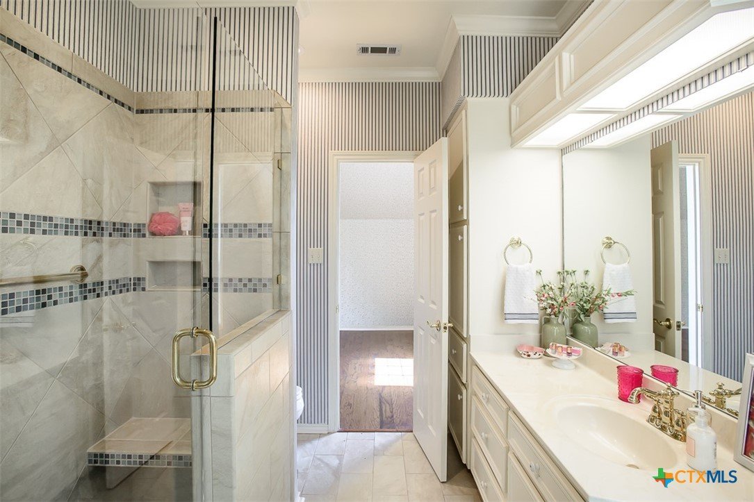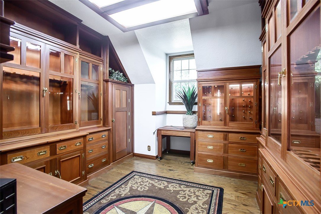 Ideally located within a secluded cul-de-sac, this exceptional residence unveils a lifestyle of unparalleled tranquility and luxury. Poised atop a gentle hill, this double-lot sanctuary offers a panoramic view, with the lush green expanse of a golf course below. Step inside to discover an interior that seamlessly marries elegance with versatility. A grand entrance beckons you into a sprawling floorplan, where every detail has been meticulously crafted to elevate your living experience. Towering ceilings greet you in the expansive family room, where a dramatic two-story expanse opens up, drawing in natural light through a wall of sliding glass doors. Here, a majestic fireplace, ensconced within custom built-ins, stands as the focal point of cozy gatherings, while stunning floors, adorned with a unique blend of tile and criss-crossing wood, imbue the space with warmth and character. Entertain in style in the formal dining room, where rich wood wainscotting lends an air of sophistication to every meal. The sprawling island kitchen beckons culinary adventures, with an attached breakfast area providing the perfect setting to savor morning moments. Retreat to the owner's suite, where an attached flex room offers boundless possibilities, including a discreet storage room secured behind a safe vault door. Upstairs, a versatile flex room awaits, lined with built-ins to accommodate your every need. Two secondary bedrooms, connected by a Jack & Jill bathroom, offer comfort and convenience, complete with an additional washer and dryer for added ease. Outside, an open patio invites al fresco gatherings, overlooking an expansive backyard dotted with mature trees and a storage building. Other notable features include a whole house generator for peace of mind, attic stairs leading to the top of the living room for effortless maintenance, a new AC system installed in 2022, and a convenient sink in the garage for added functionality.